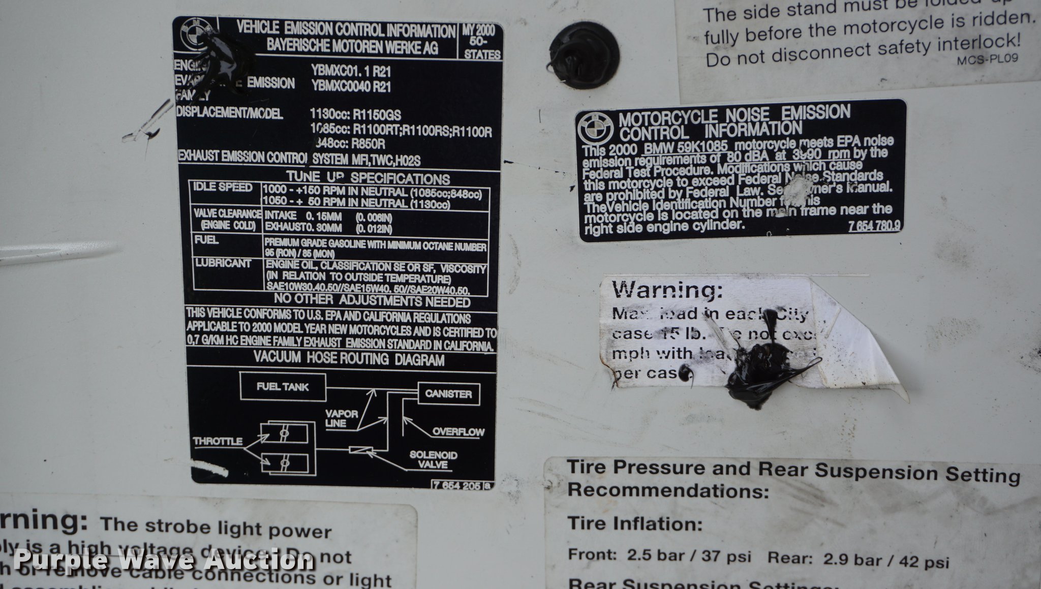 2000 BMW R1100RT 59K1085 motorcycle | SOLD! July 10 Government Auction
