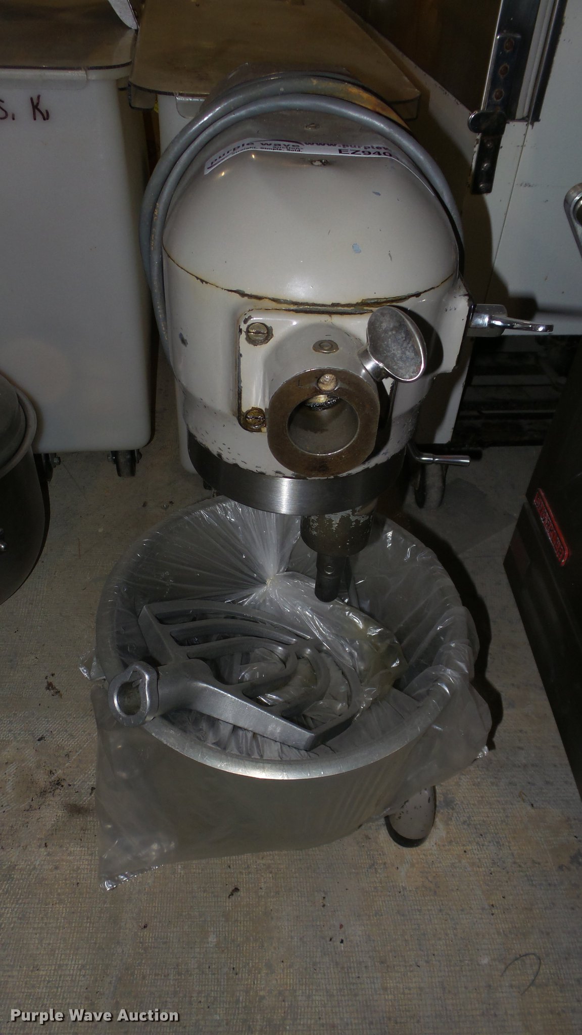 Purple Wave is selling a used Restaurant Equip. in Kansas. This item is a Hobart A-200 mixer with the following: 115V, Bowls, Accessories, Serial 1656652