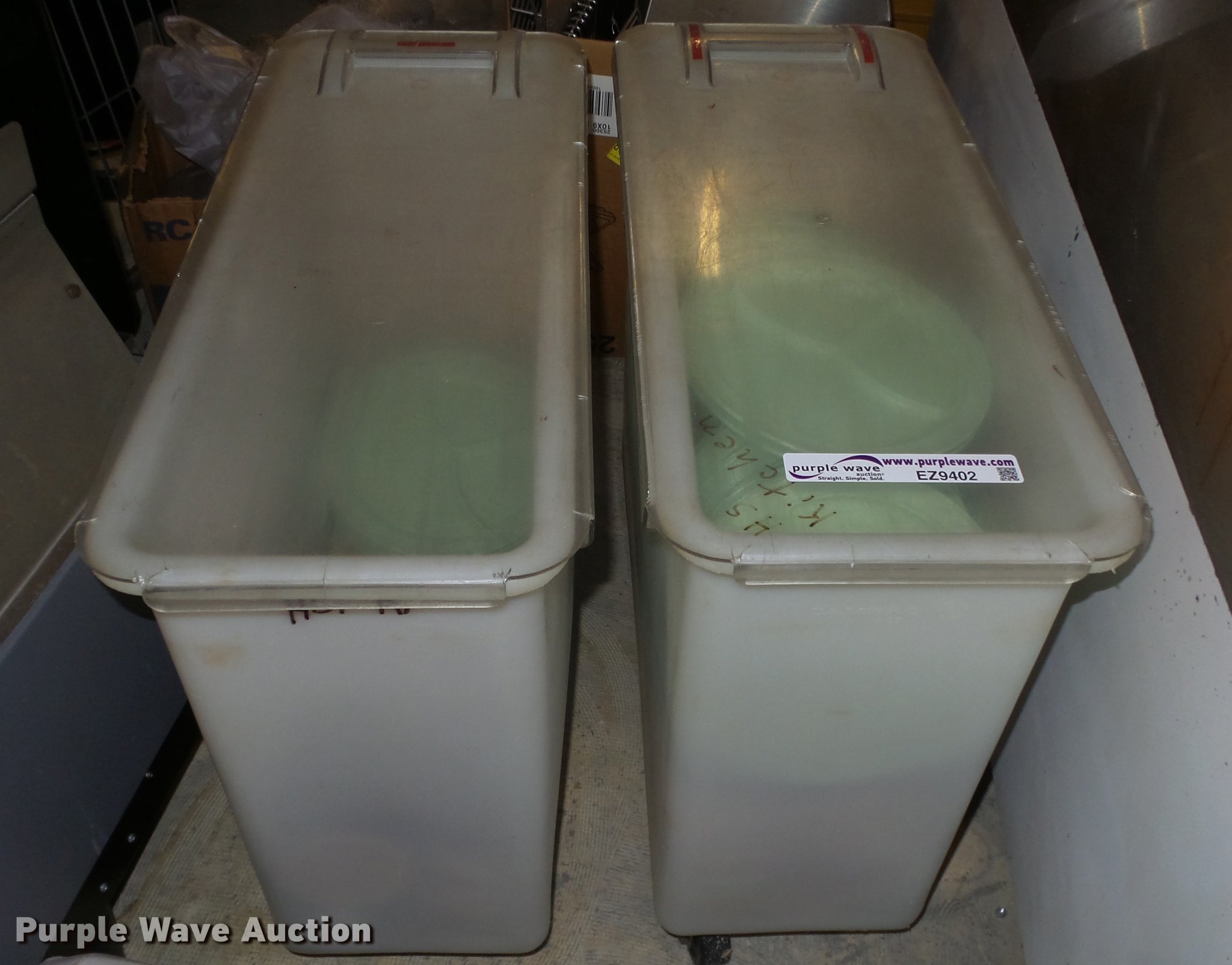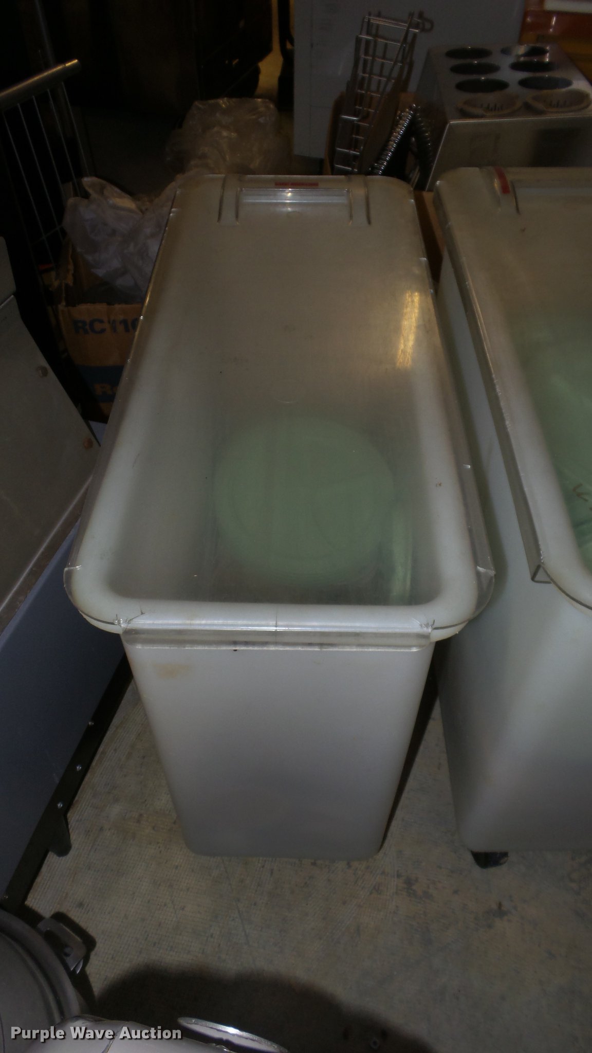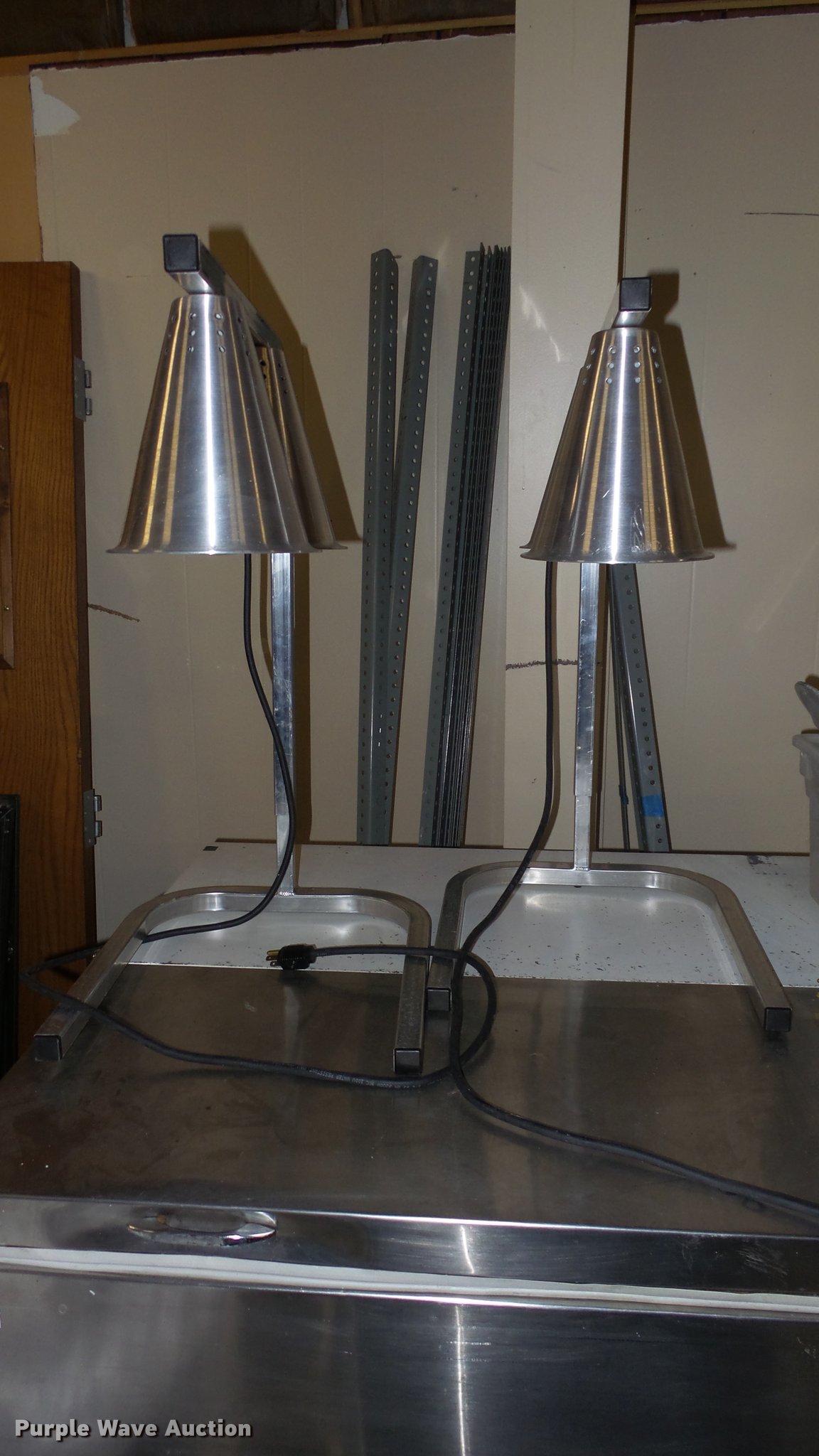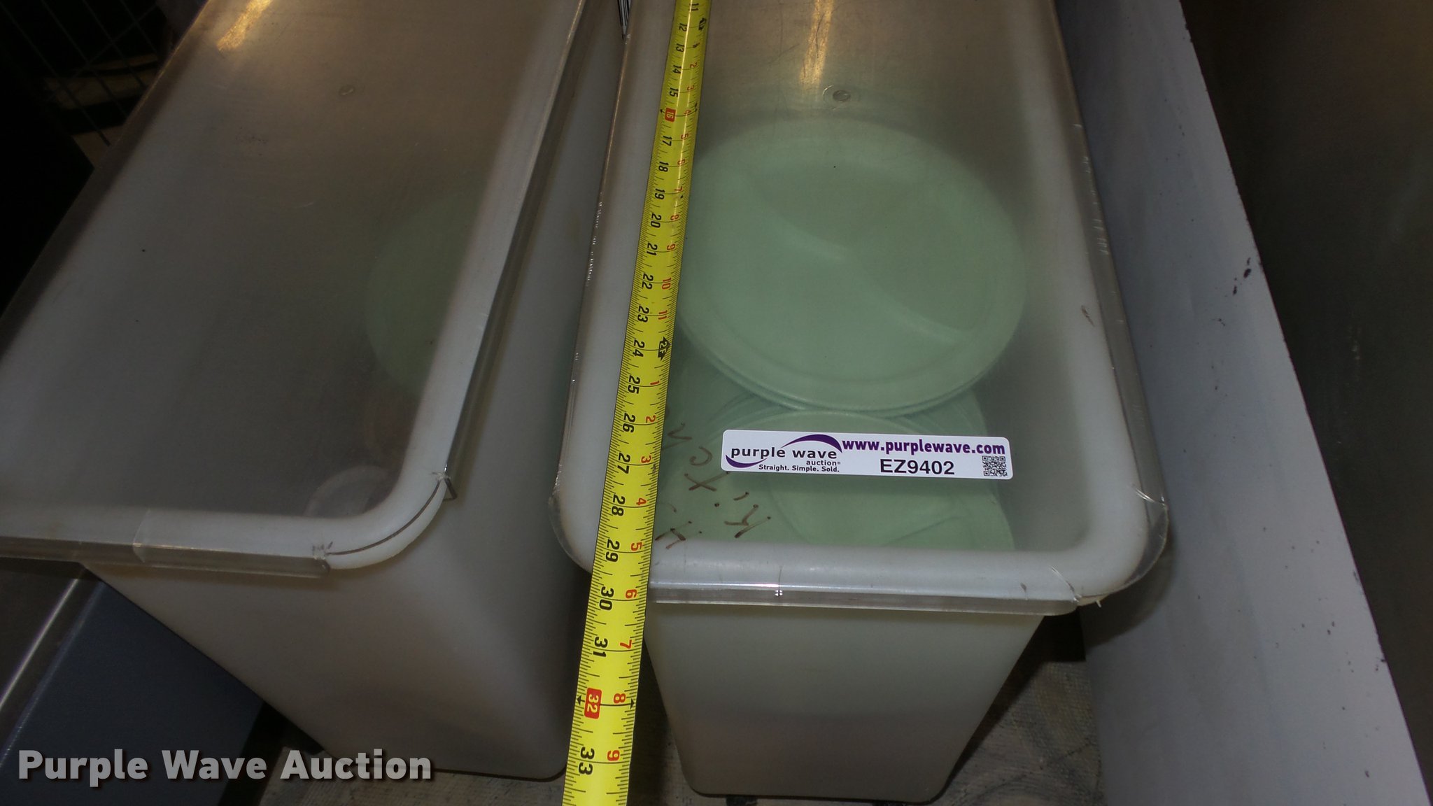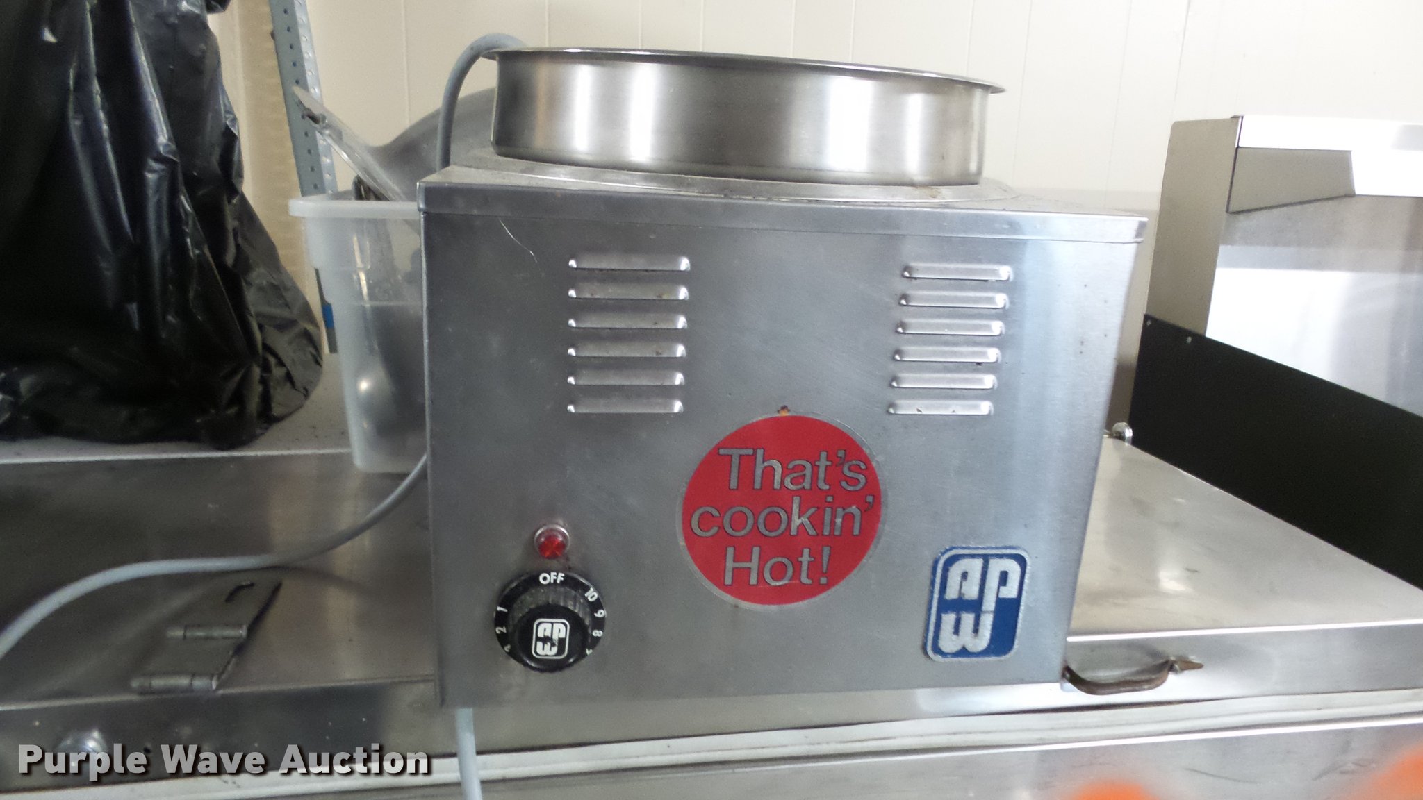 Purple Wave is selling a used Restaurant Equip. in Kansas. This item is a Kitchen equipment with the following: (2) plastic tubs, Plastic dinnerware, Utensil caddies, Metal pans, Metal utensils, APW CW1B cooker, (2) heat lamps, Display racks