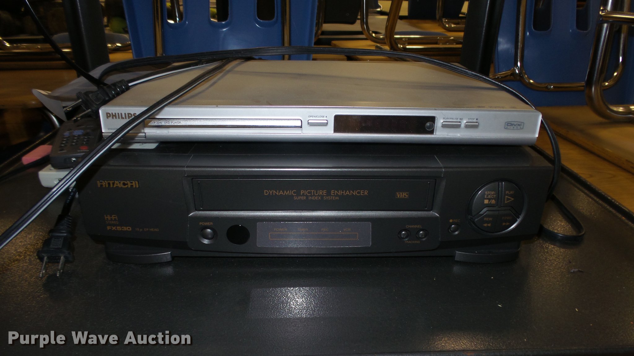 Purple Wave is selling a used Electronics in Kansas. This item is a Electronics with the following: Simplex 5100 processing unit, Sharp television, Philips DVD, Hitachi VCR, Mitsubishi VCR, Samsung DVD, RCA television, (2) media carts