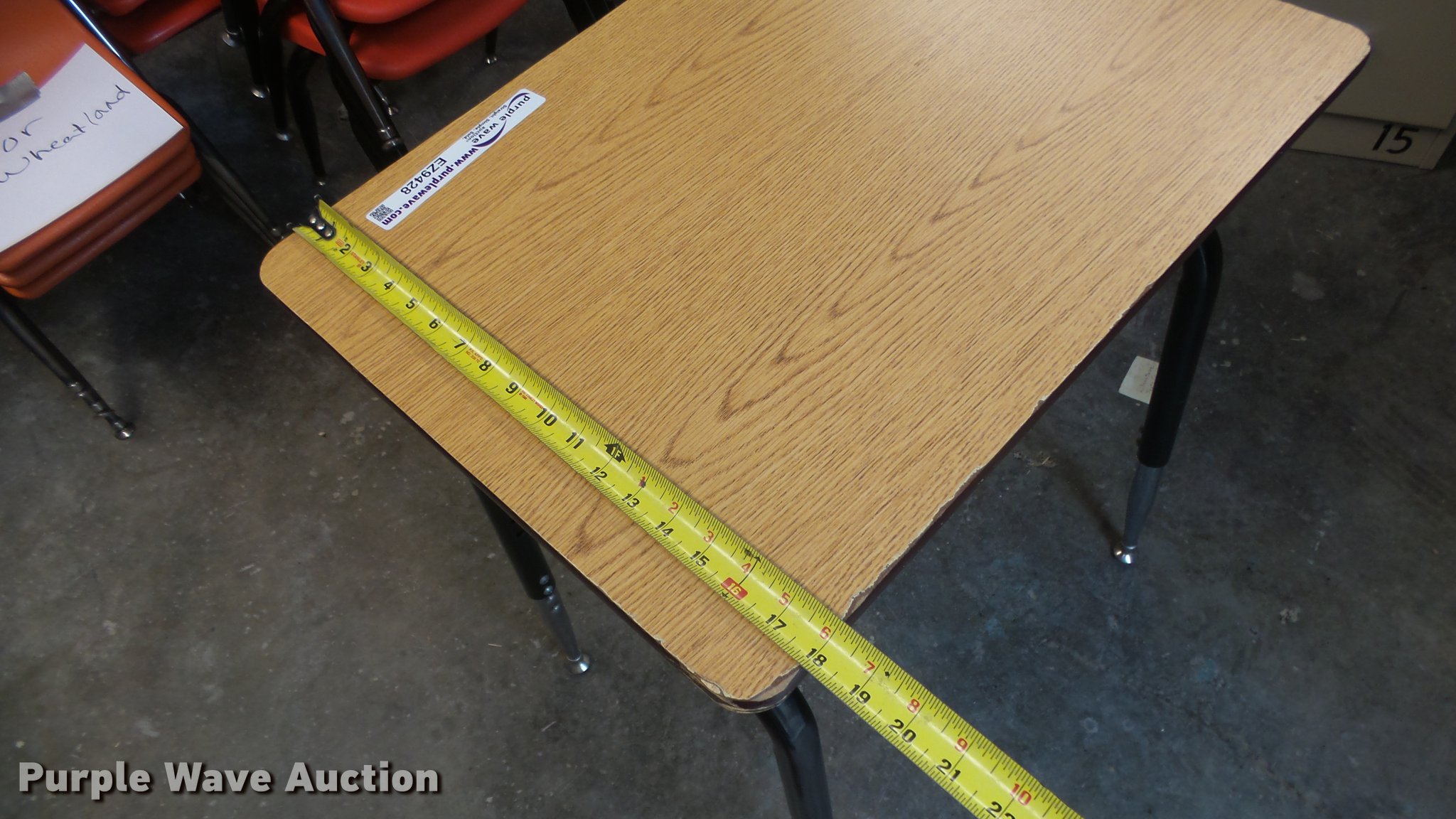 Purple Wave is selling a used Furniture in Kansas. This item is a Approximately 25 student desks with the following: 24" x 18" x 29"H