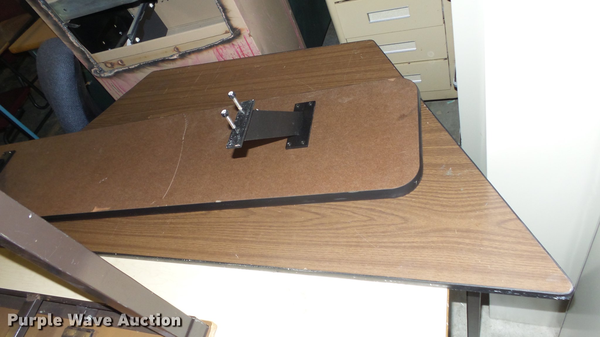 Purple Wave is selling a used Furniture in Kansas. This item is a (5) desks with the following: (2) metal, (3) wood