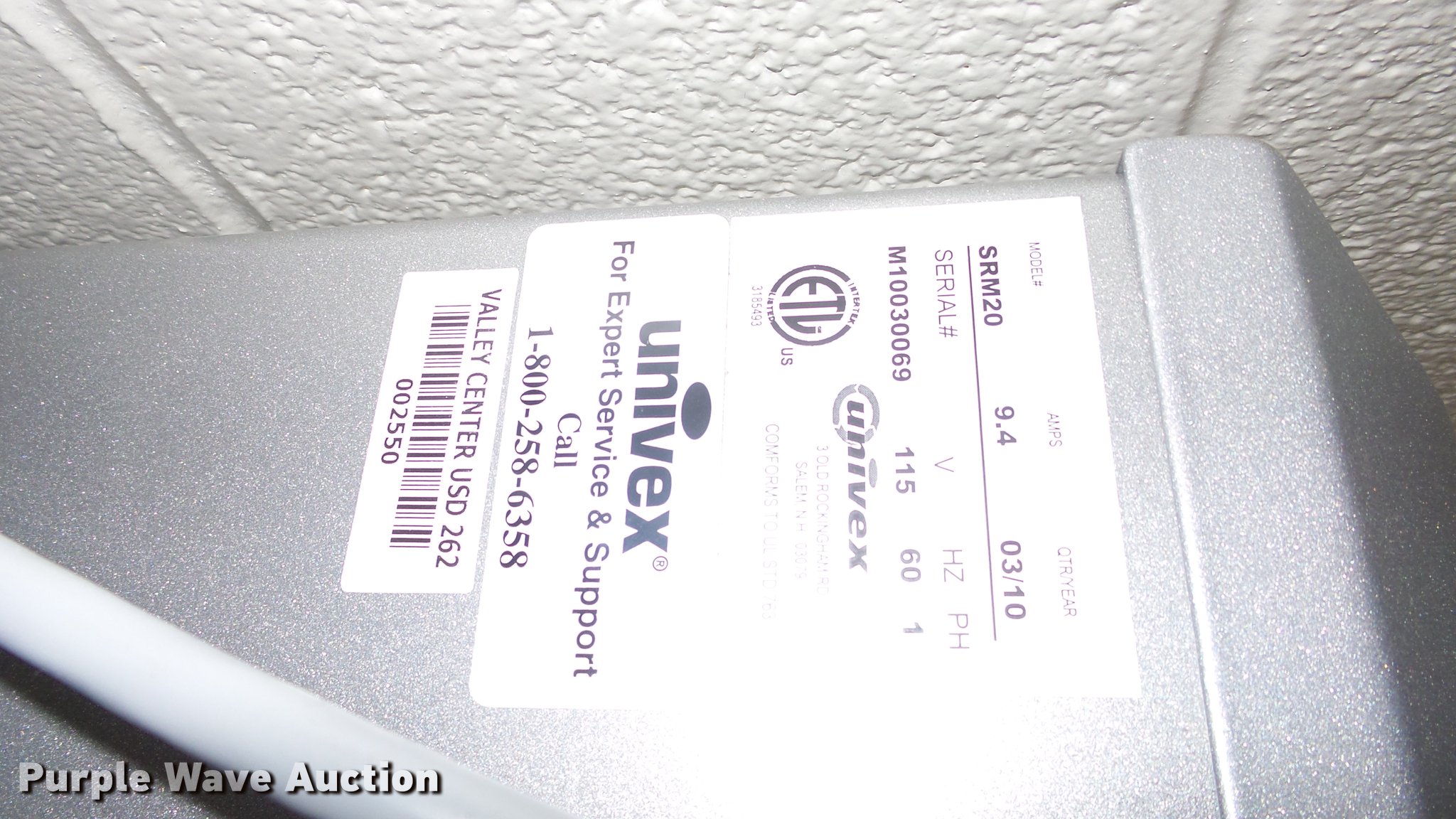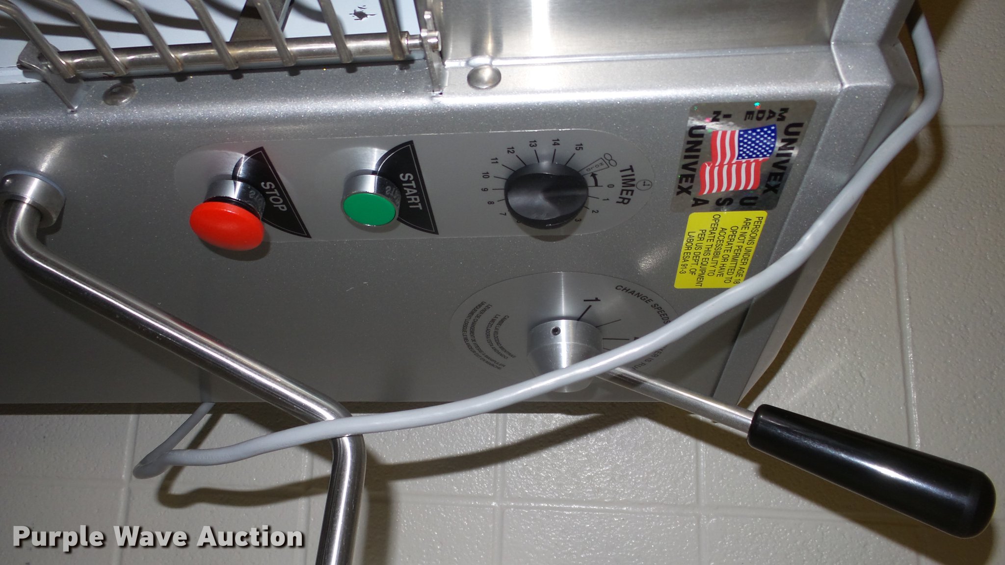 Purple Wave is selling a used Restaurant Equip. in Kansas. This item is a Univex SRM20 mixer with the following: 115V, Bowl, Accessories, Timer, Serial M10030069