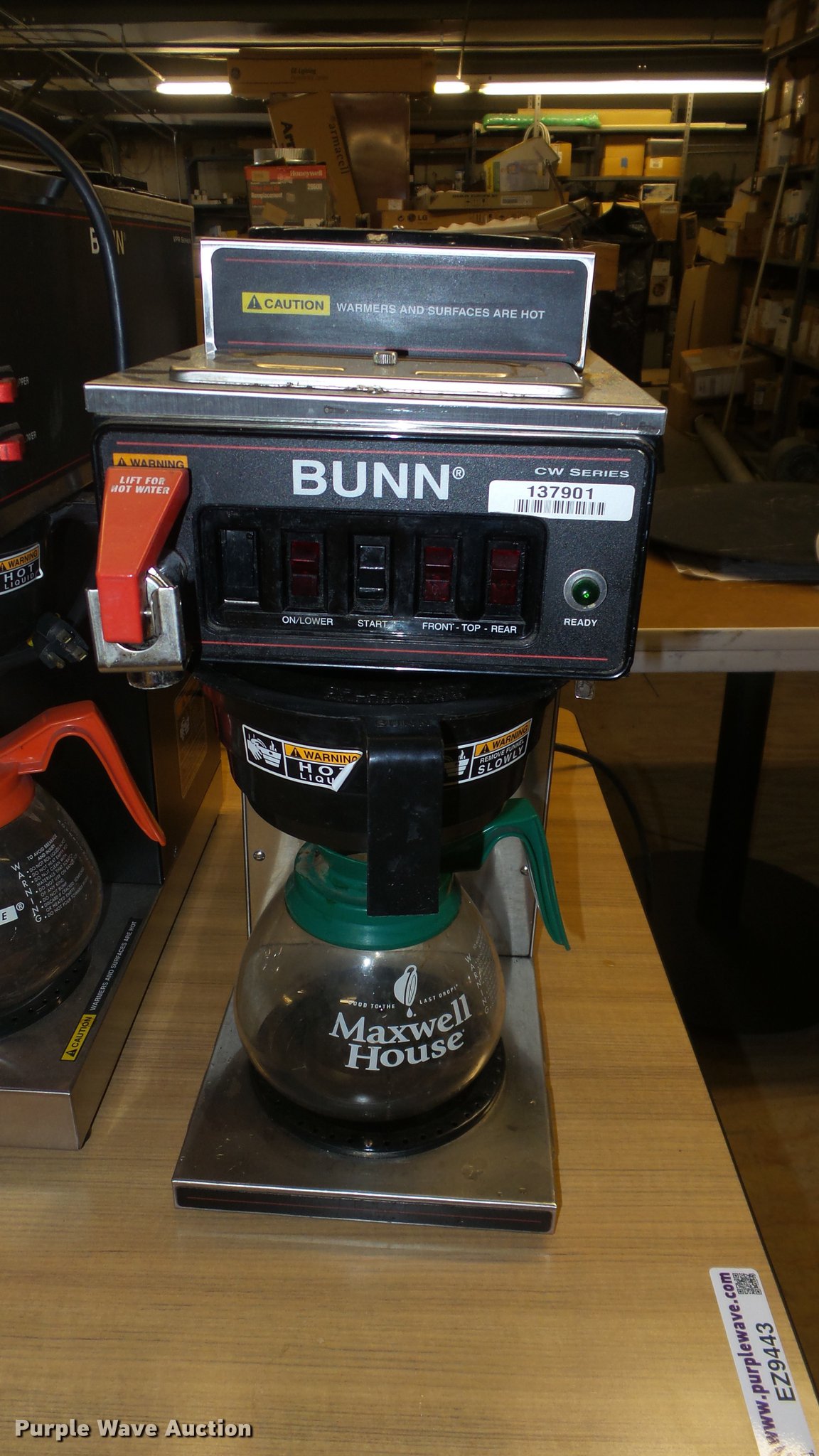 Purple Wave is selling a used Restaurant Equip. in Kansas. This item is a Kitchen equipment with the following: (2) Bunn coffee makers, Hamilton Beach toaster