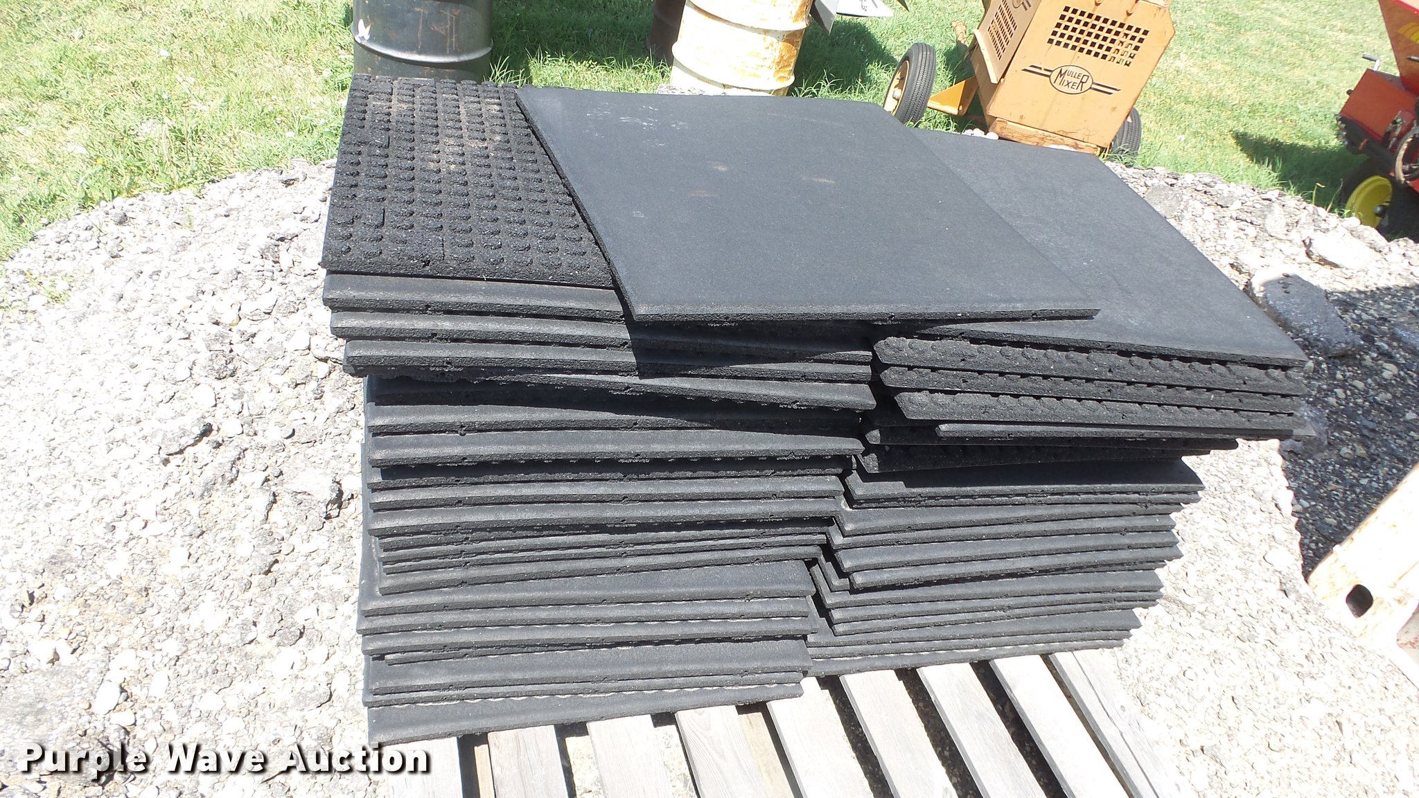 Purple Wave is selling a used Sporting Goods in Kansas. This item is a Approximately 120 weight room rubber flooring pieces with the following: 24" x 24"