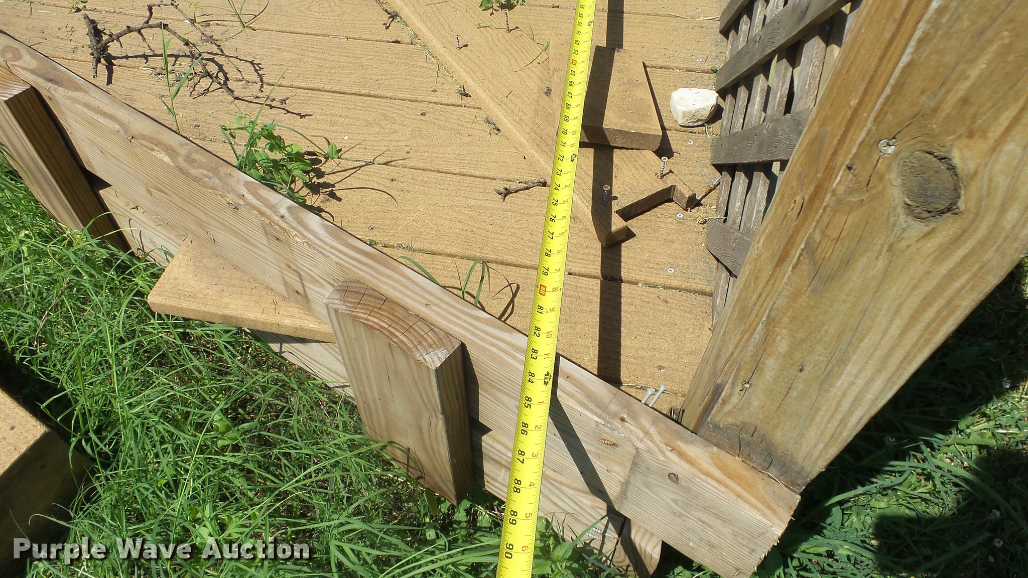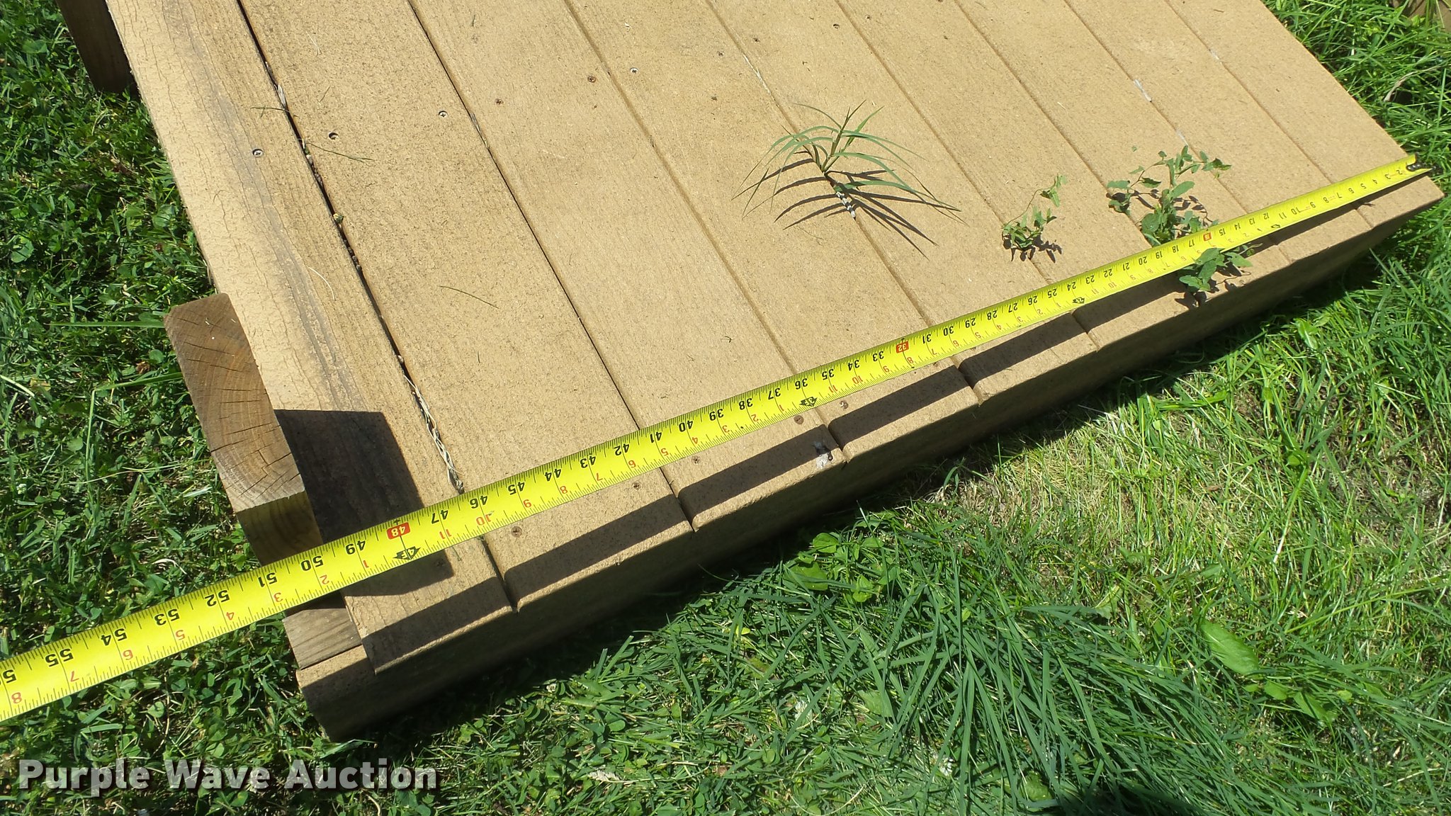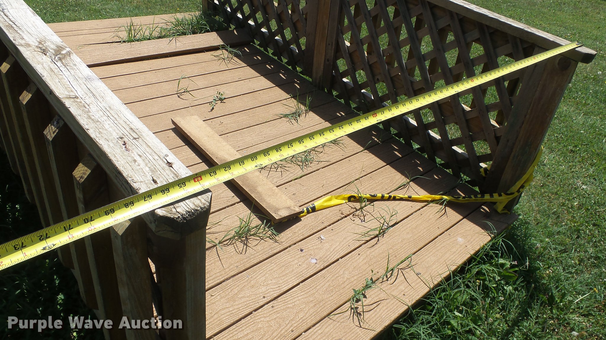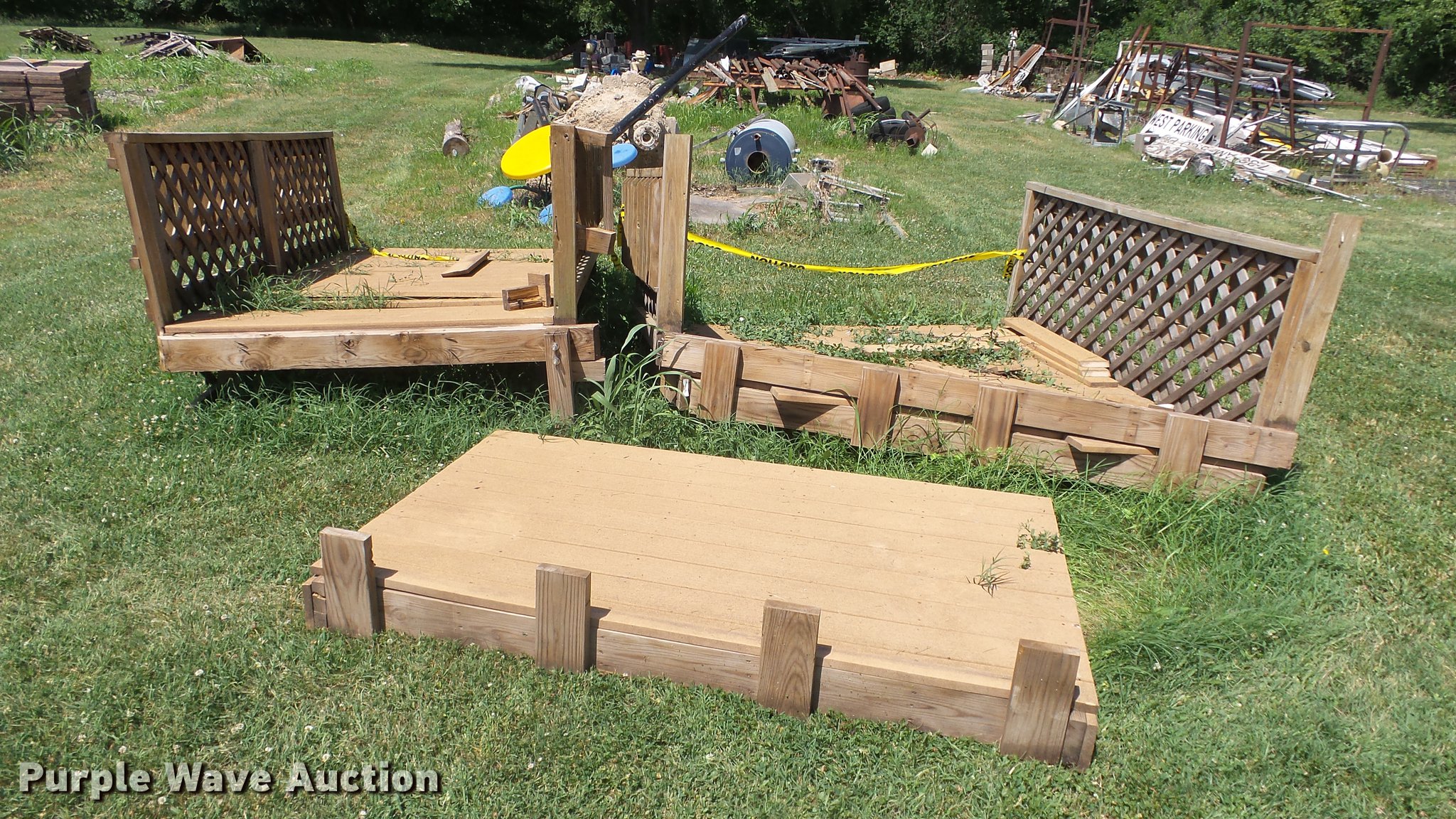 Purple Wave is selling a used Building Materials in Kansas. This item is a (3) pieces of composite decking with the following: 83" x 50", 84" x 96", 106" x 67", Wood lattice/rails