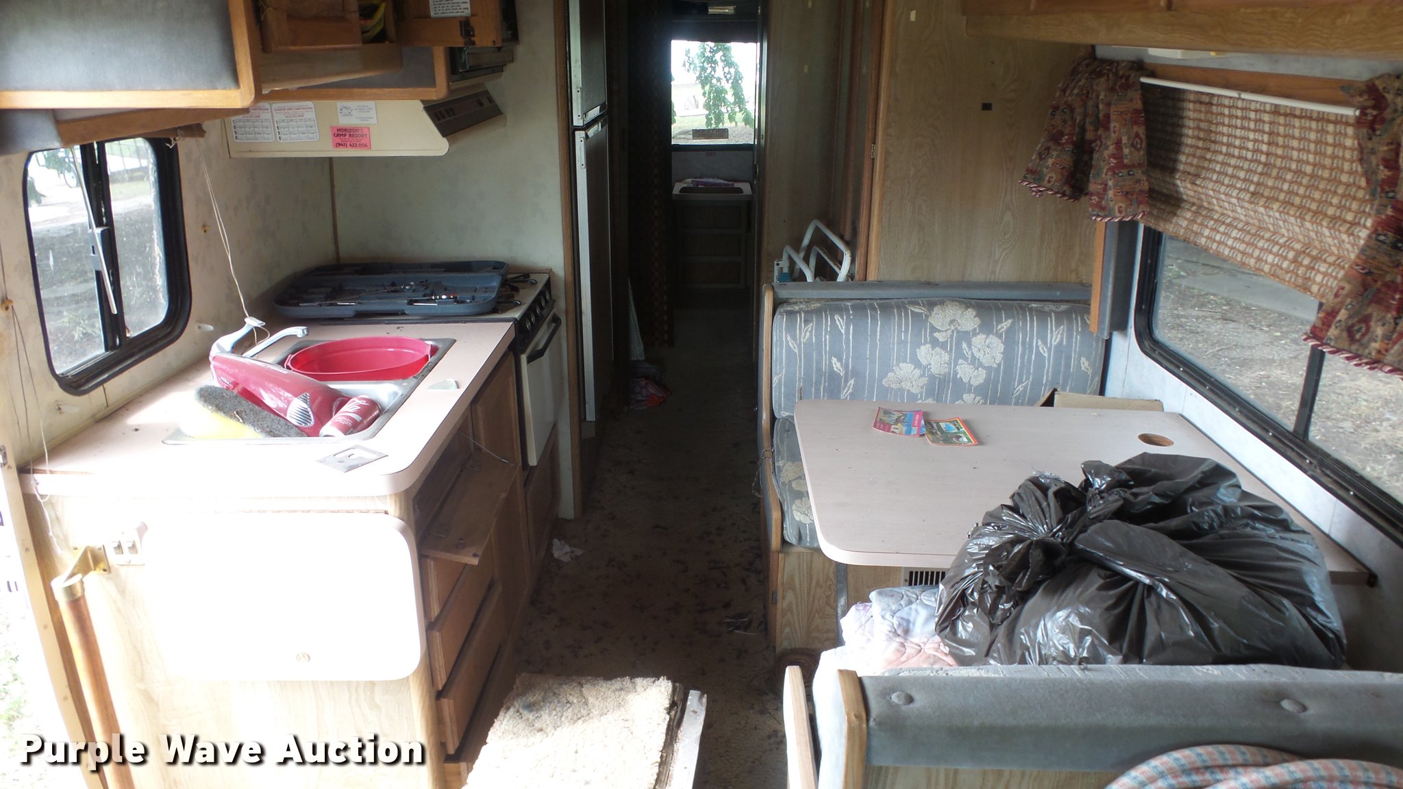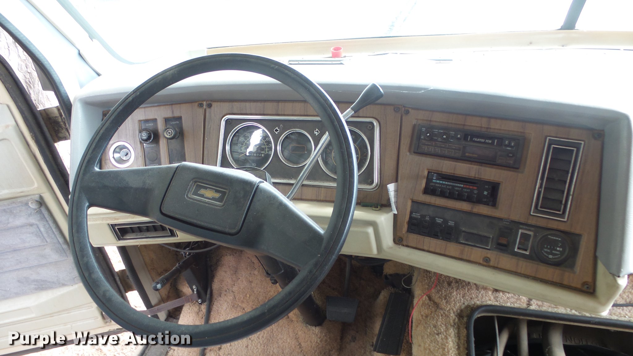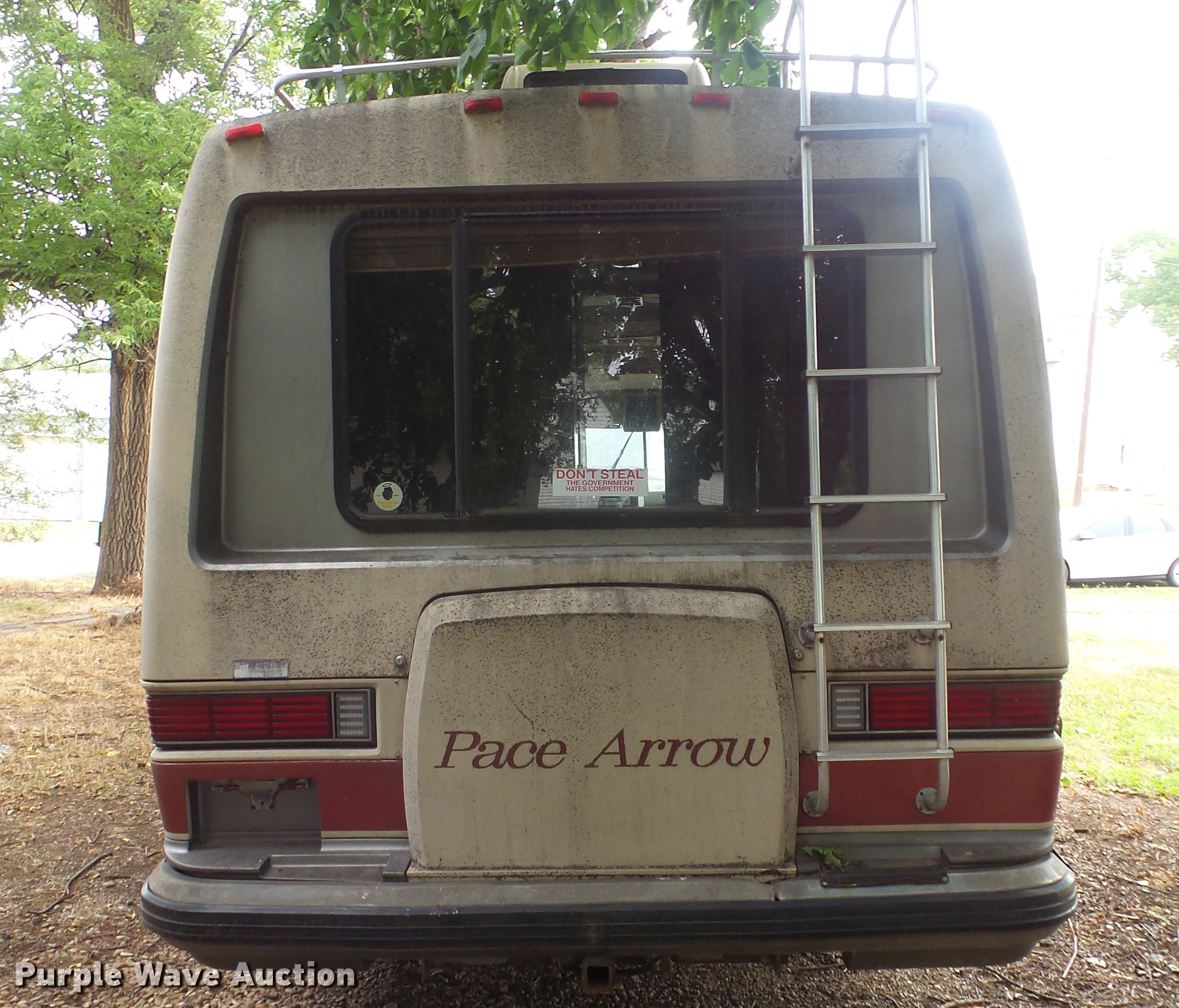 Purple Wave is selling a used RV in Kansas. This item is a 1988 Chevrolet Pace Arrow RV with the following: 62,872 miles on odometer, 7.4L V8 OHV 16V gas engine, Automatic transmission, AC and heat, AM/FM, Kitchen, Sink, Stove, Microwave, Refrigerator/freezer, Lavatory, Awning, Receiver hitch, 8R19.5 tires, Unknown operating condition