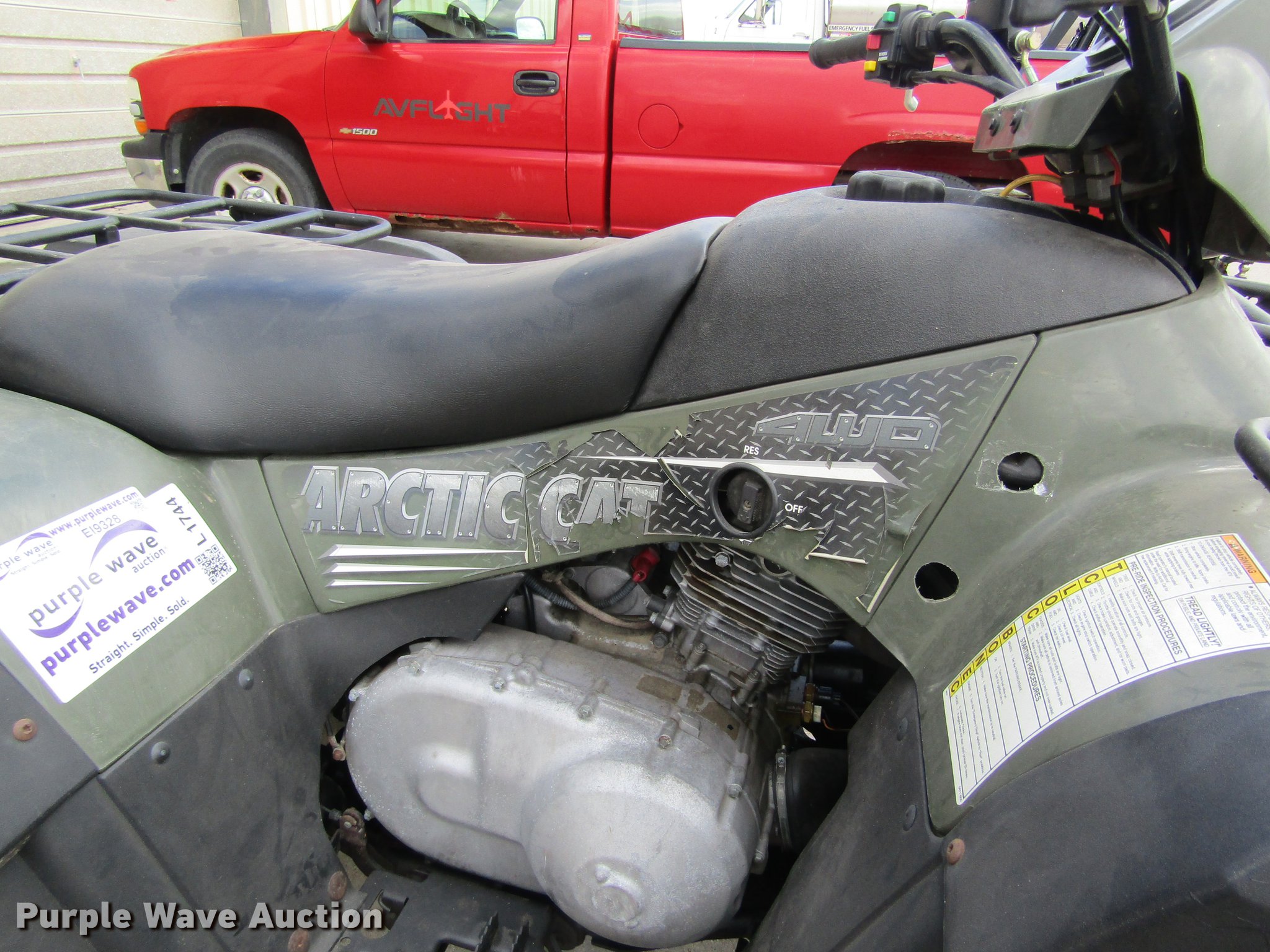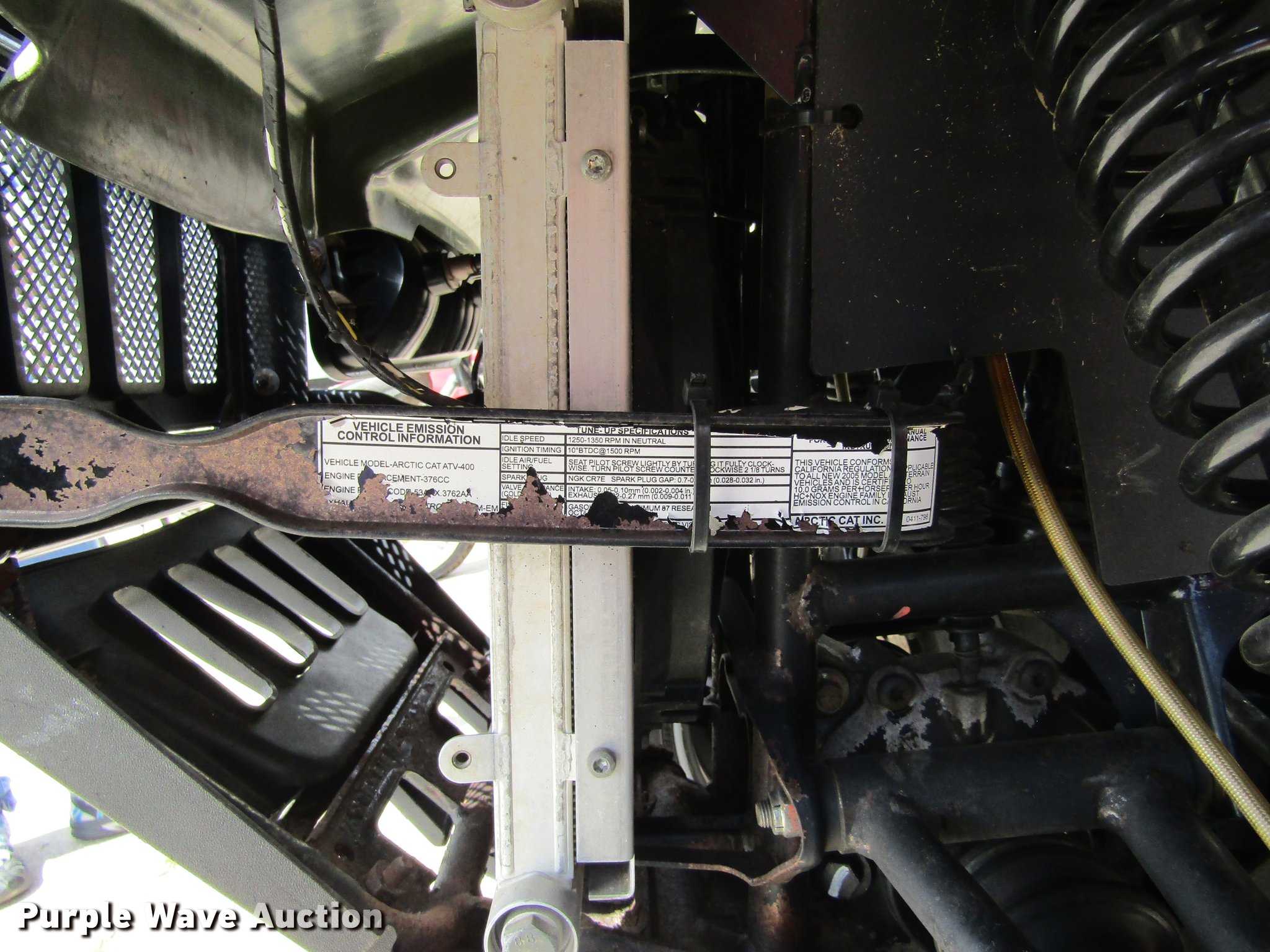 Purple Wave is selling a used ATV in Kansas. This item is a 2004 Arctic Cat 400 ATV with the following: 2,835 miles on odometer, 400cc gas engine, Automatic transmission, Four wheel drive, Front and rear racks, 25x10R12 tires, No key, Non-operational unit, ICN EI9328