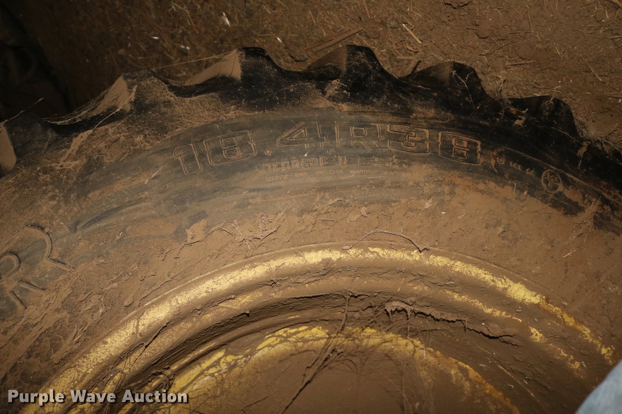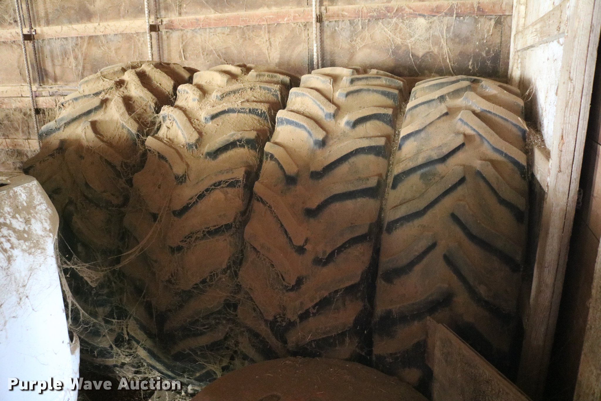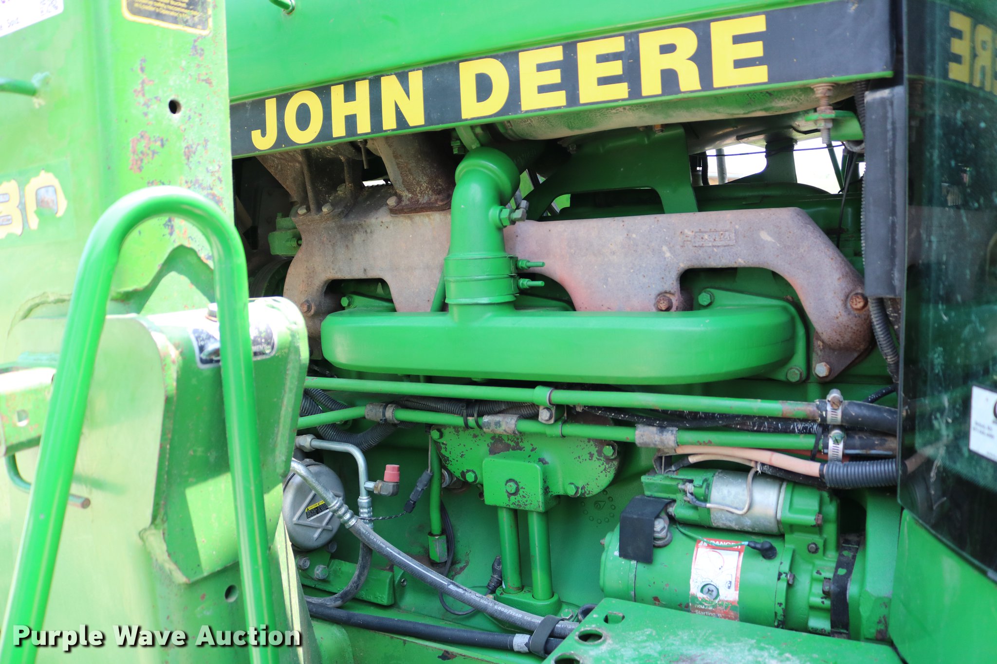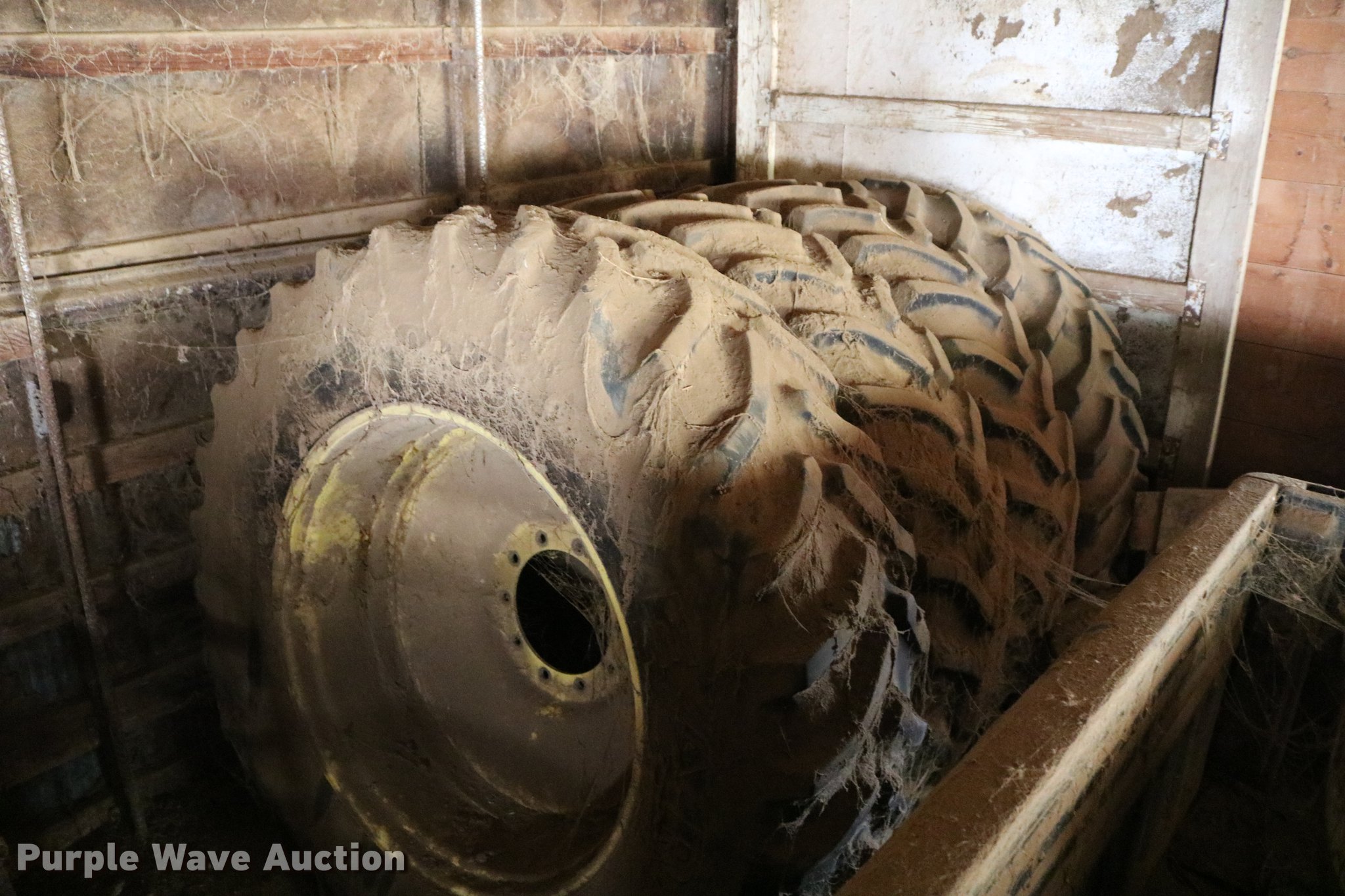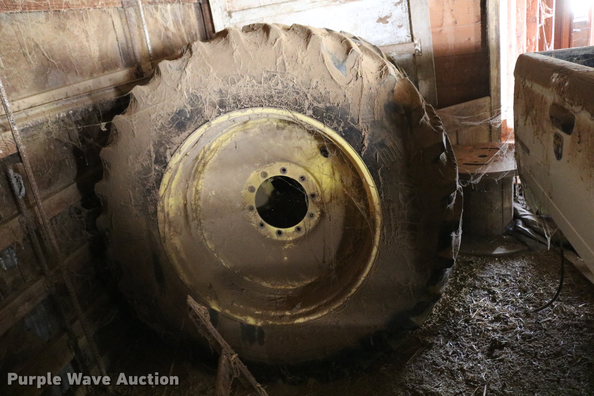 Purple Wave is selling a used Tractor in Kansas. This item is a 1991 John Deere 4455 tractor with the following: 9,449 hours on meter, 7.6L six cylinder turbo diesel engine, Powershift transmission, 15F-4R gears, Differential lock, AC and heat, Tilt steering wheel, AM/FM, Hydraulic seat, John Deere 280 loader, 97"W grapple bucket, (4) tines, Quick attach, Two-lever controls, Three point, Top link, Seven pin outlet, 540/1000 PTO, (3) rear hydraulic remote sets, (2) wheel weights, 106.7" wheelbase, Michelin 710/70R38 front tires, Michelin 11.2R24 rear tires, (2) additional 16.0/70-20 tires, One is bad, (4) additional 18.4R38 tires, (2) additional 11.00-16SL tires, Engine overhauled 05/2005, Serial RW4455P010036