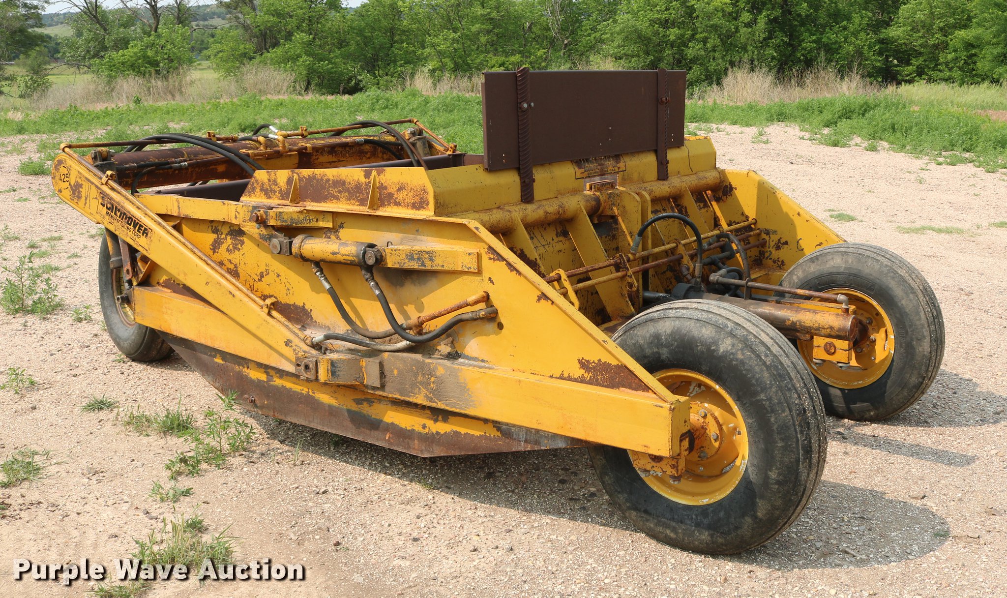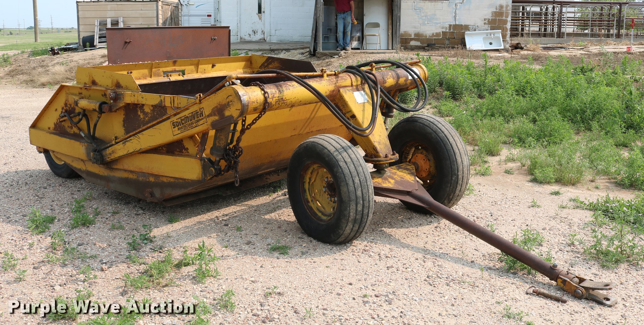 Purple Wave is selling a used Pull Type Scraper in Kansas. This item is a Soilmover 425-RF box scraper with the following: 78"W, Cutting edge, (2) hydraulic remote hookups, Hydraulic lift and dump, Clevis hitch, 11L-15SL tires, Serial FE-5446