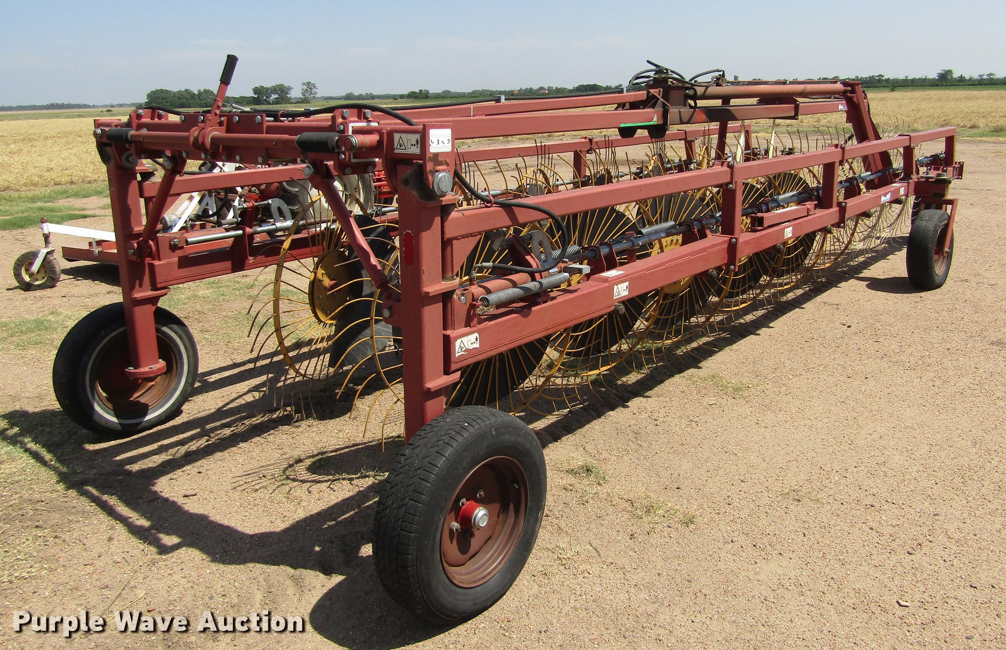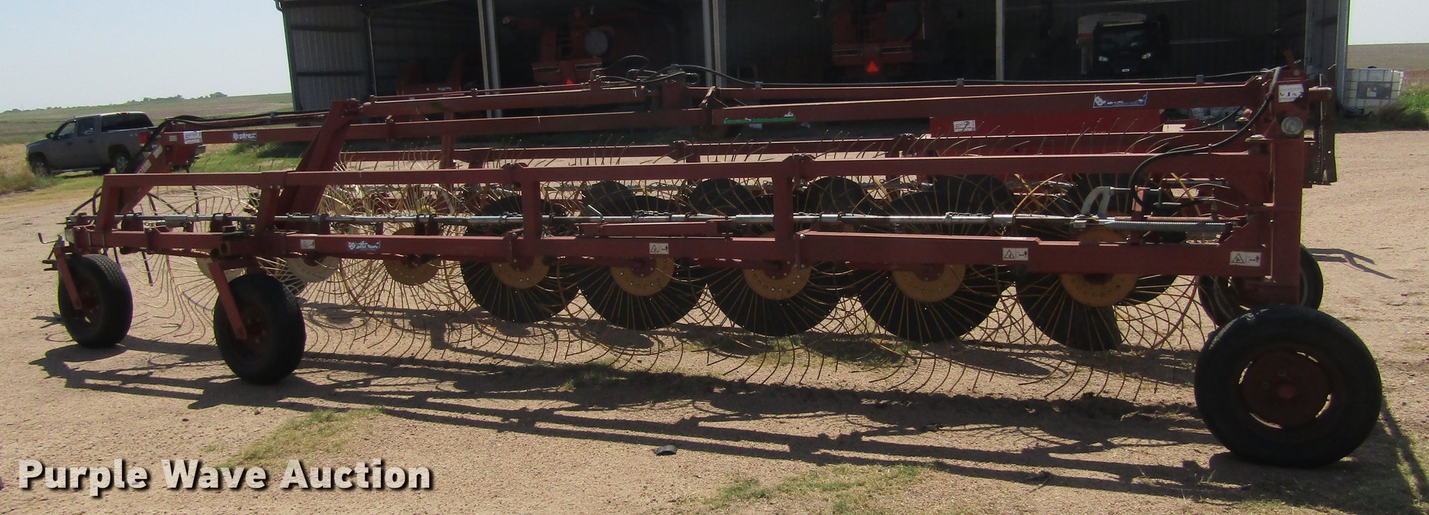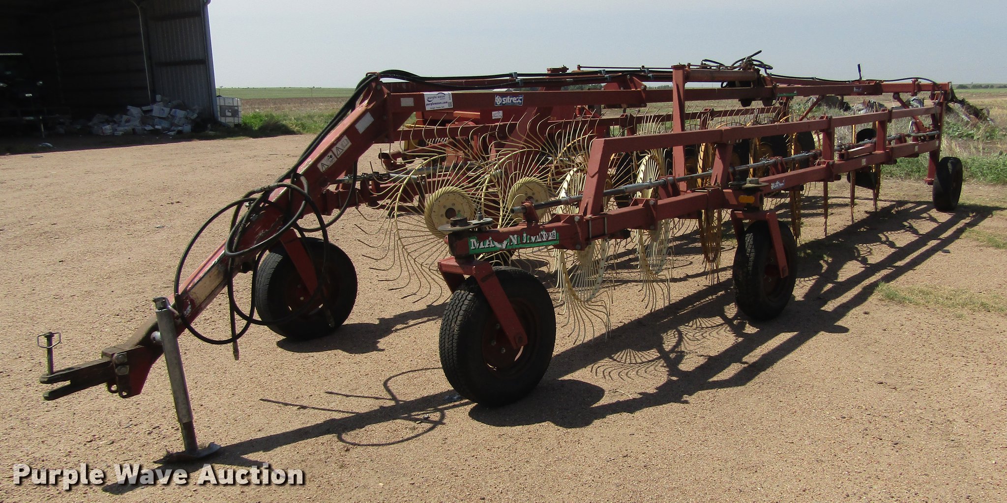 Purple Wave is selling a used Hay Rake in Kansas. This item is a Sitrex MK-15 double windrow hay rake with the following: (16) wheels, Wind guards, Hydraulic fold, Pin hitch, 205/70R15 tires, Serial 124927