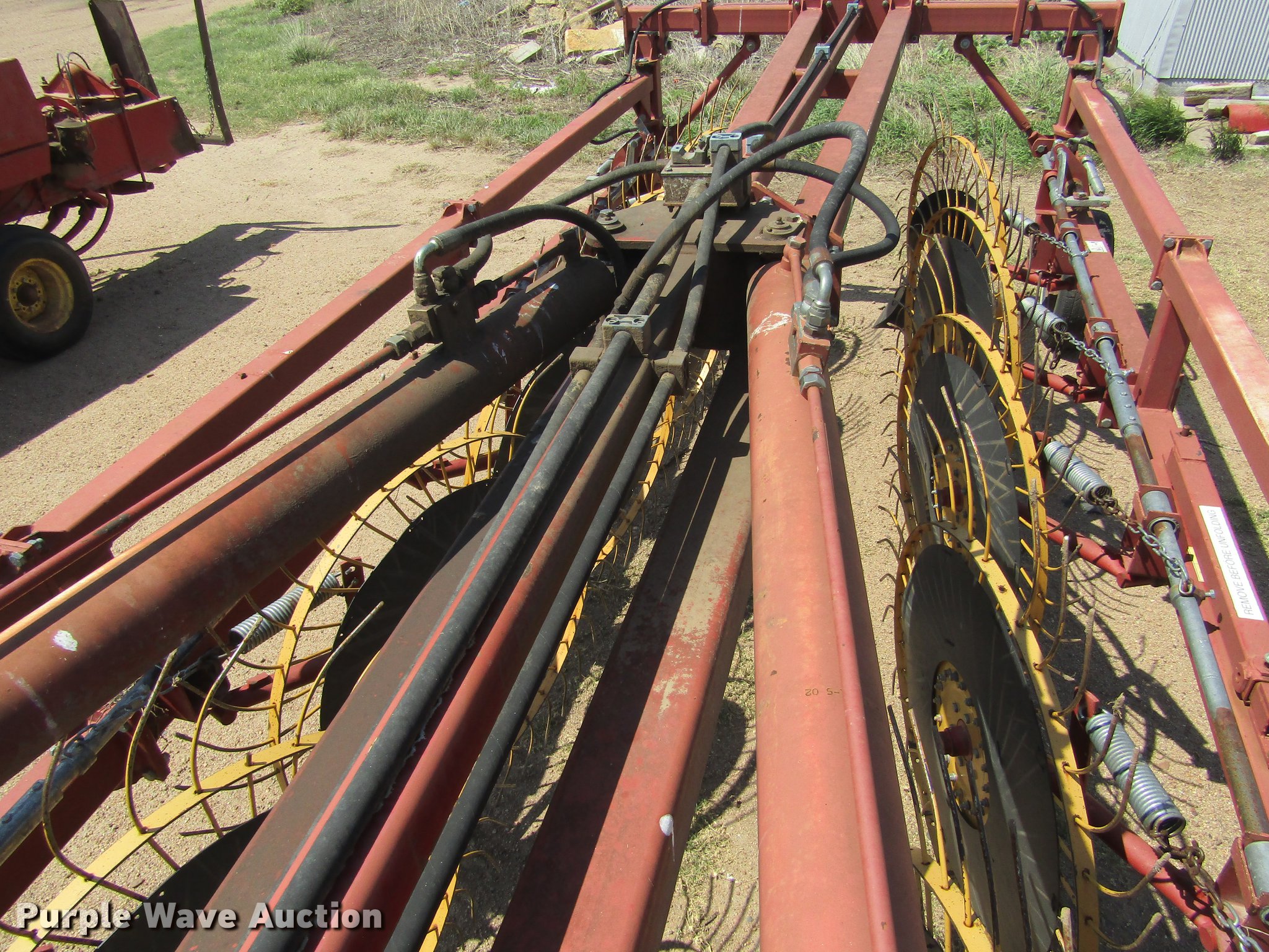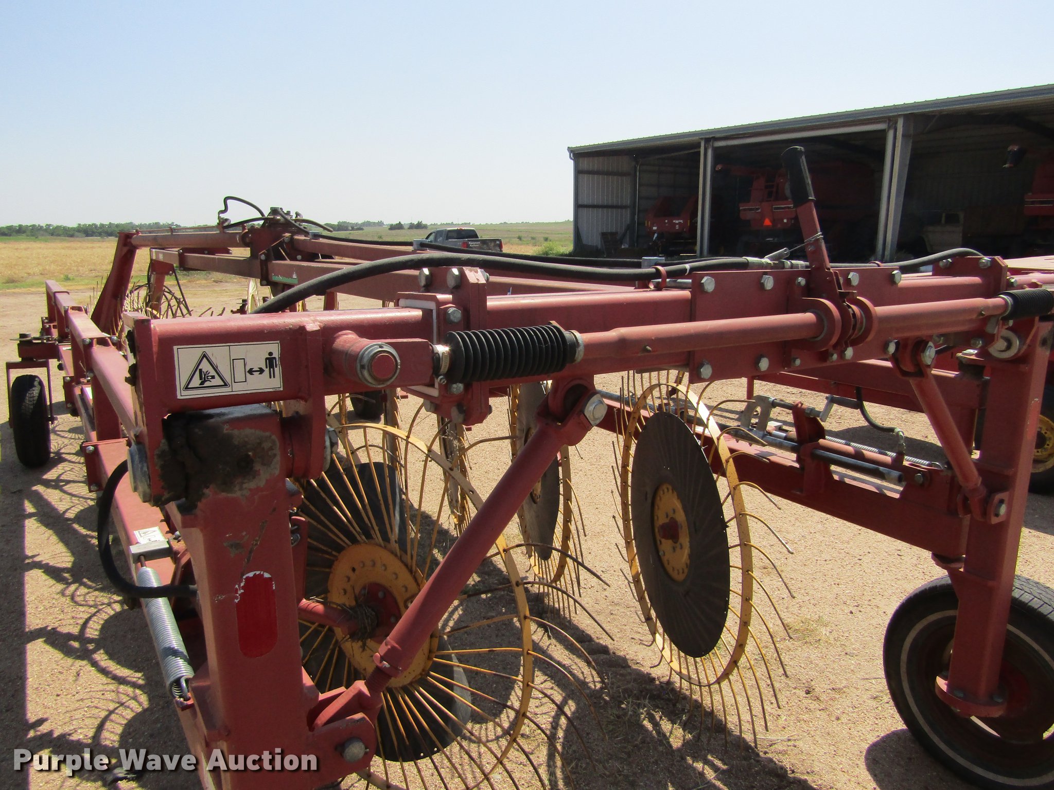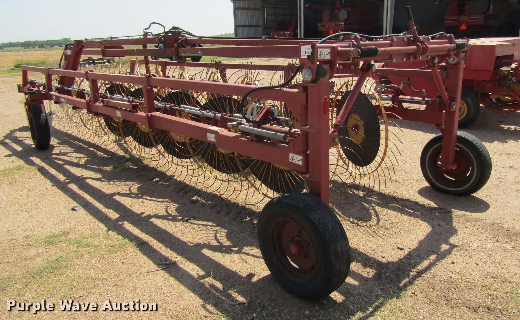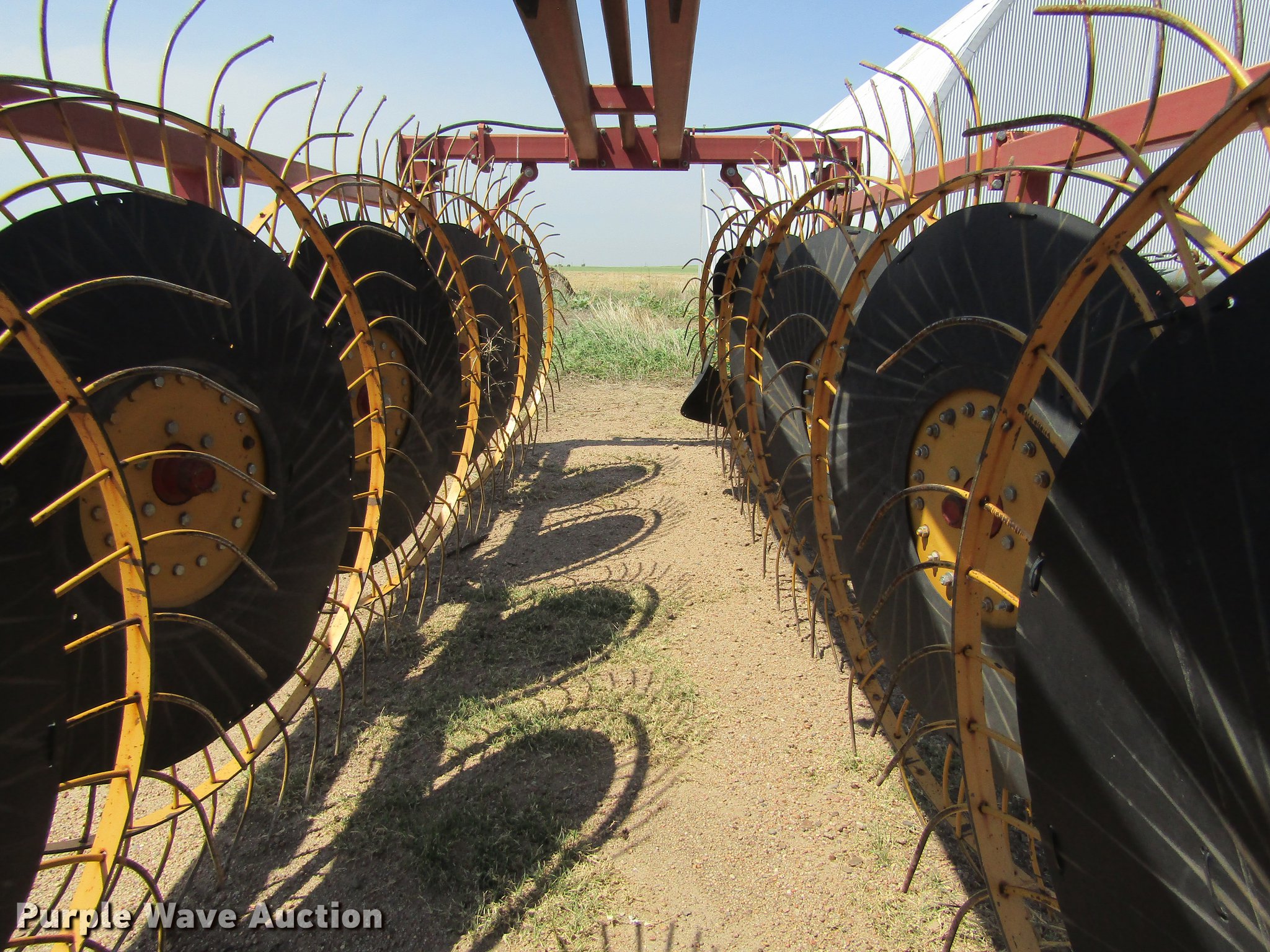 Purple Wave is selling a used Hay Rake in Kansas. This item is a Sitrex MK-15 double windrow hay rake with the following: (16) wheels, Wind guards, Hydraulic fold, Pin hitch, 205/70R15 tires, Serial 124927