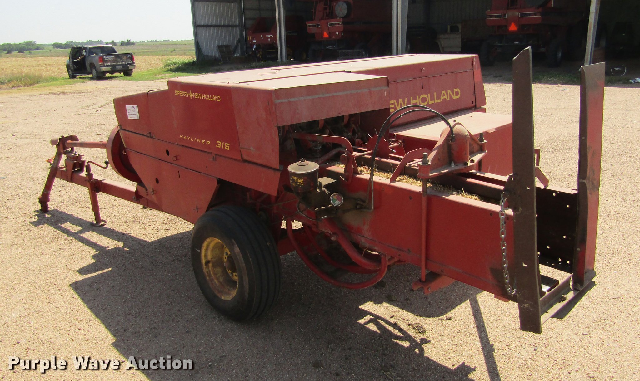 Purple Wave is selling a used Square Baler in Kansas. This item is a New Holland 315 small square baler with the following: 14" x 18" bale capacity, 61"W pickup, (2) knotters, 540 PTO, Pin hitch, 9.5L-14 tire, 215/70R15 tire, Stored inside, Serial 498847