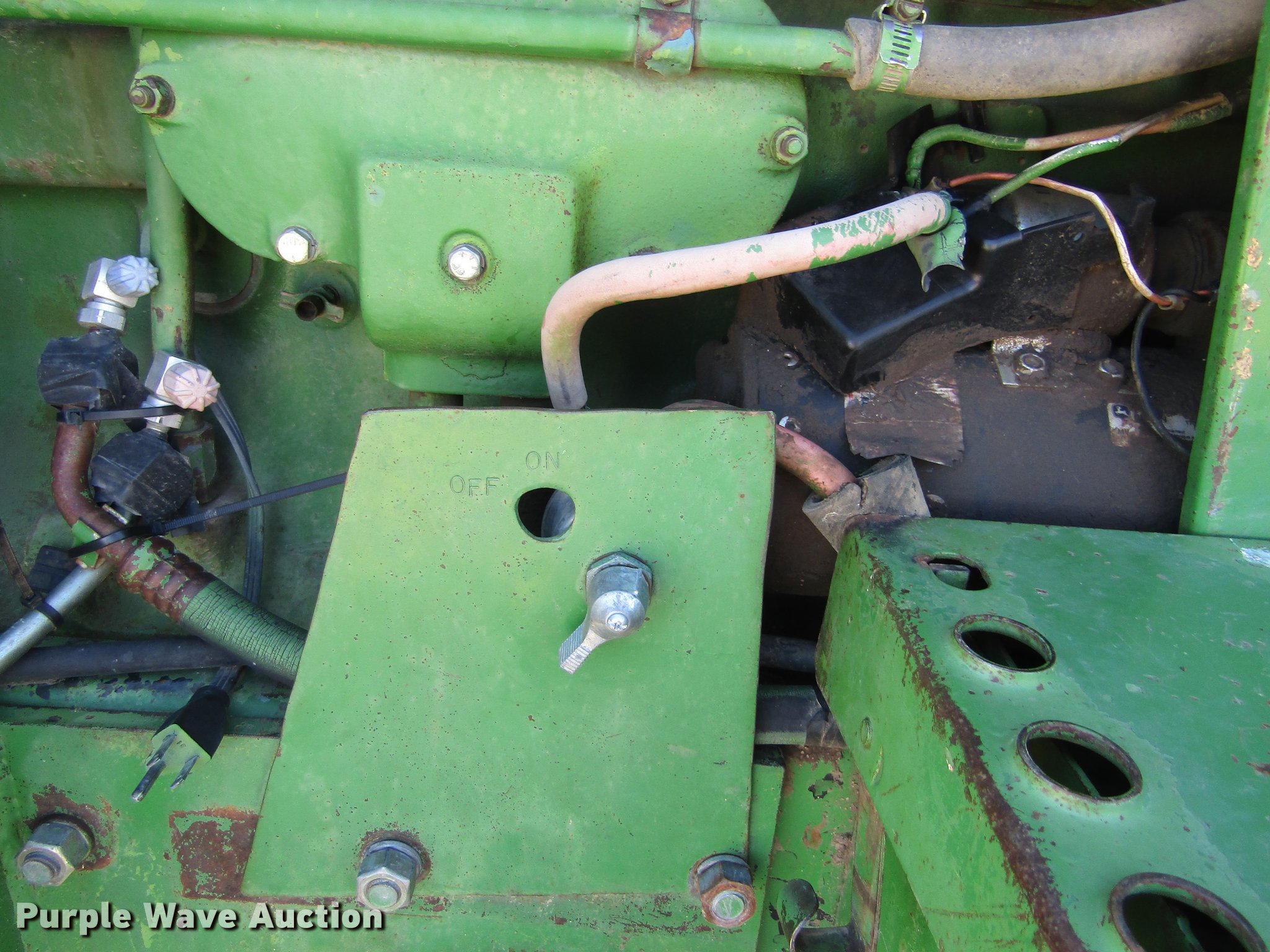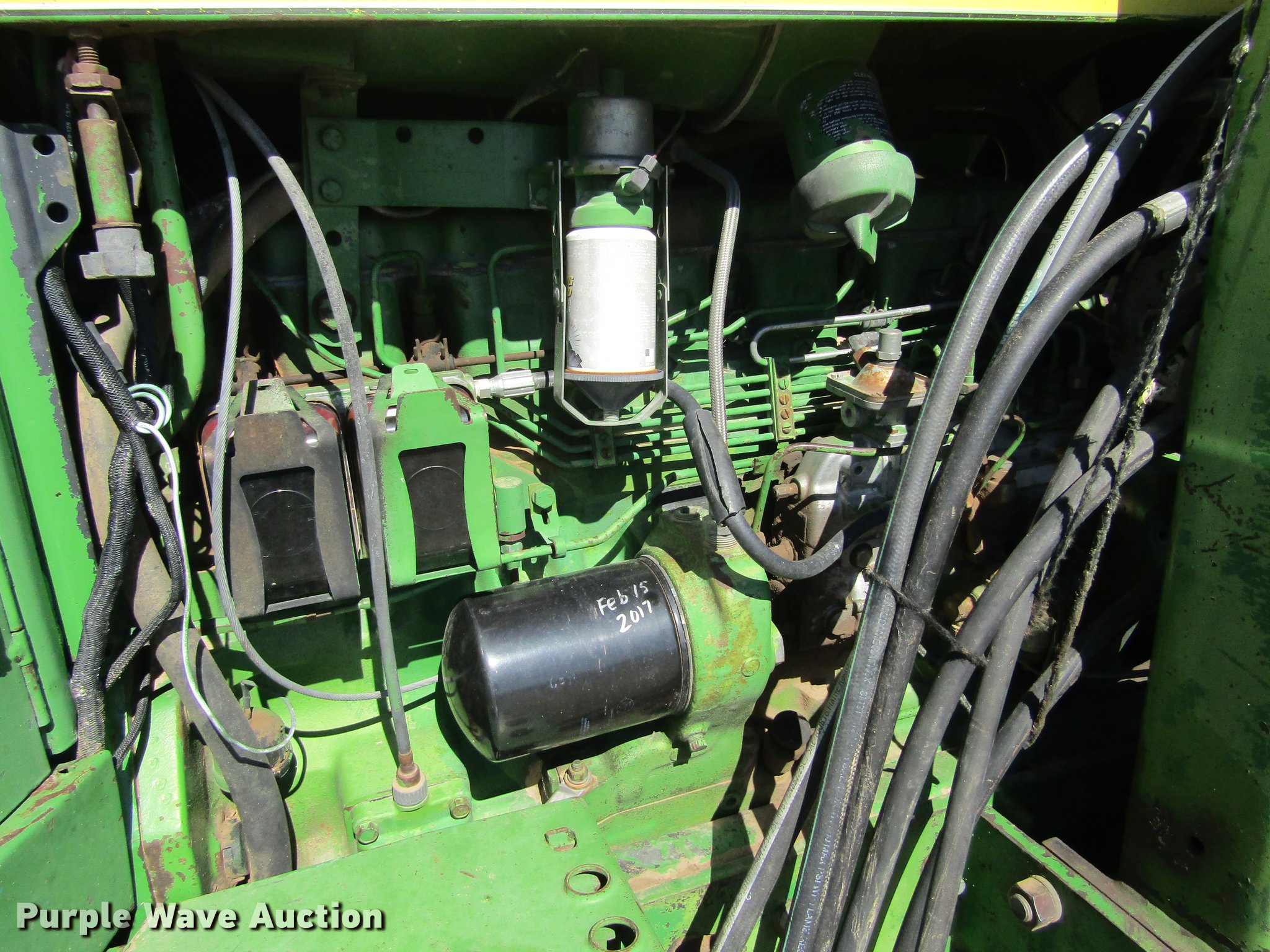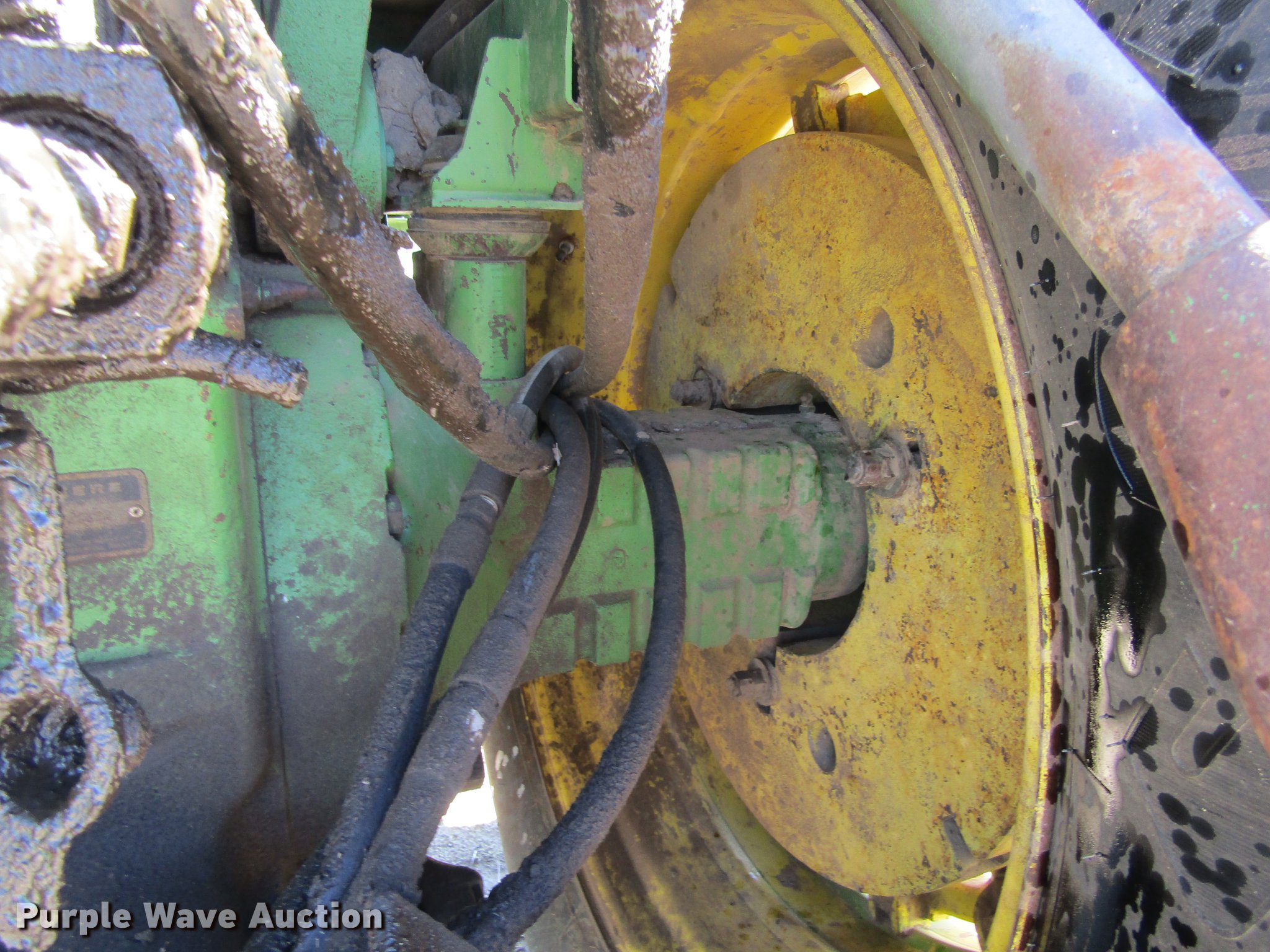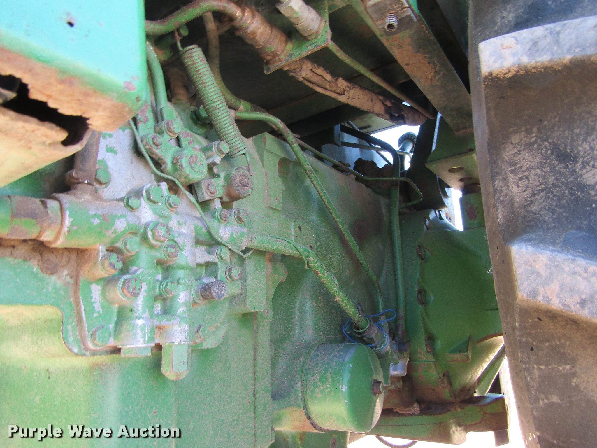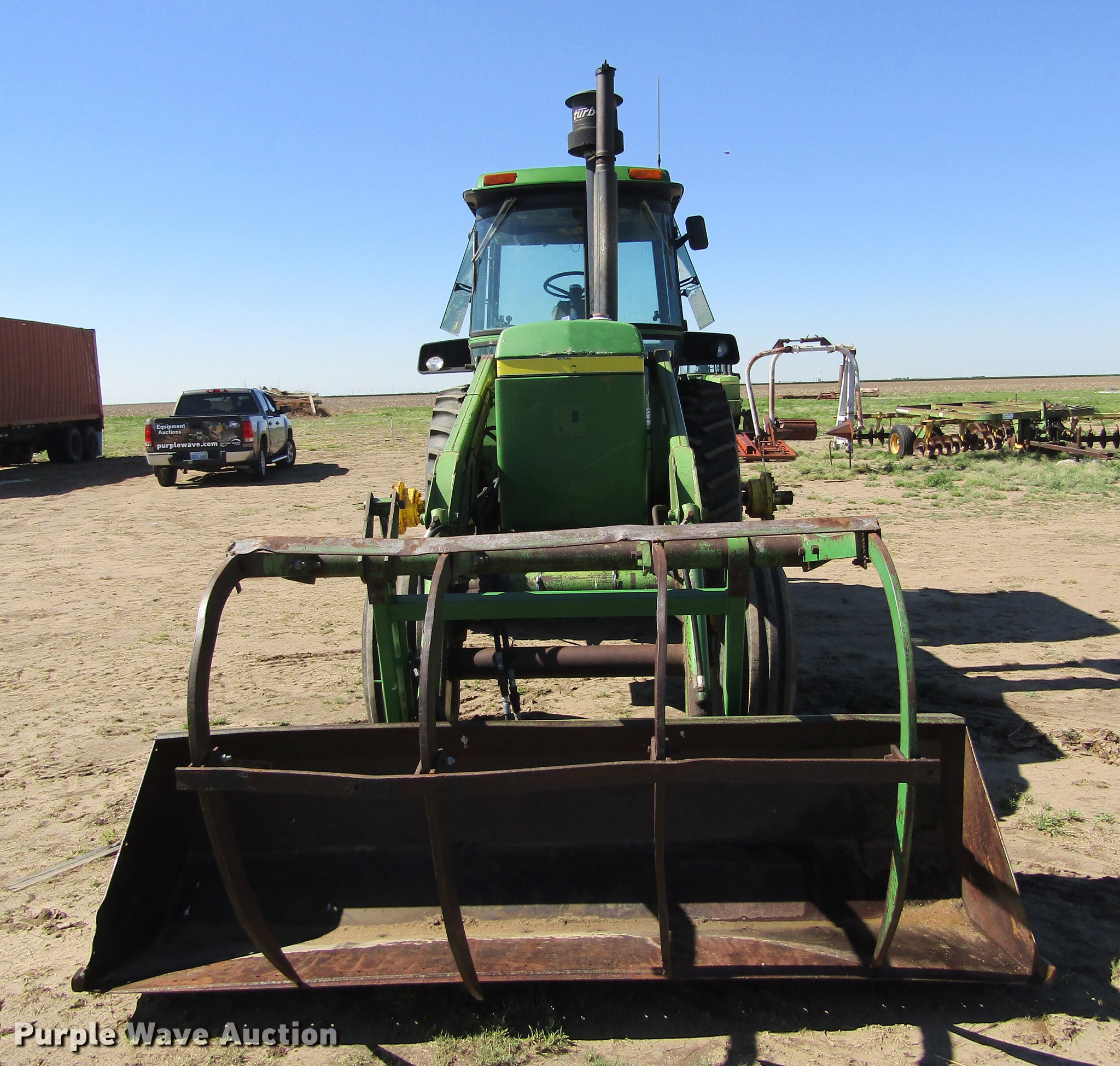 Purple Wave is selling a used Tractor in Kansas. This item is a 1977 John Deere 4630 tractor with the following: 3,495 hours on meter, John Deere 6404 six cylinder turbo diesel engine, Serial 539353RG, Quad-Range transmission, Tilt steering wheel, AM/FM, Suspension seat, John Deere 158 loader, 96"W grapple bucket, Three-lever controls, Three point, Top link, Quick attach, 540 PTO, (3) rear hydraulic remote sets, 11.00-16L front tires, 18.4-38 dual rear tires, Dual tires are not installed, Serial 028912R