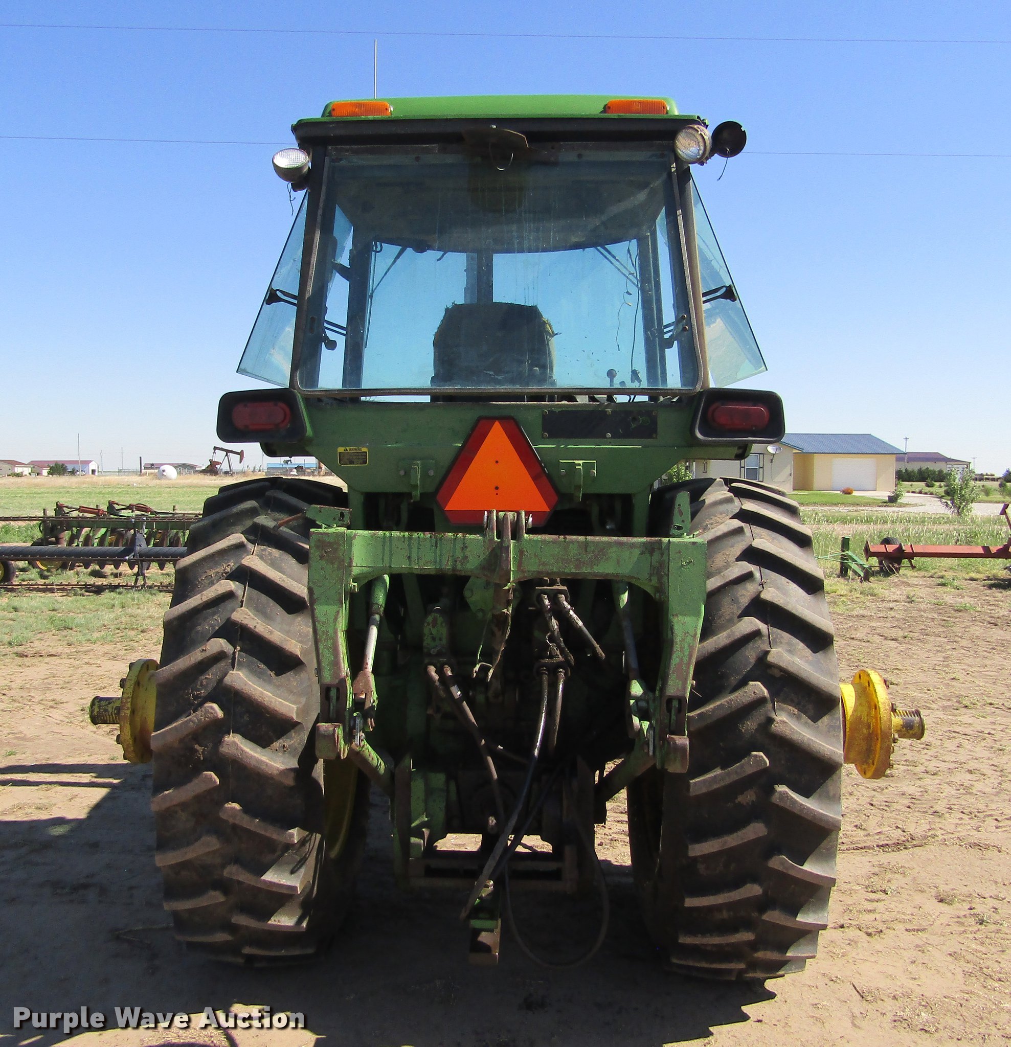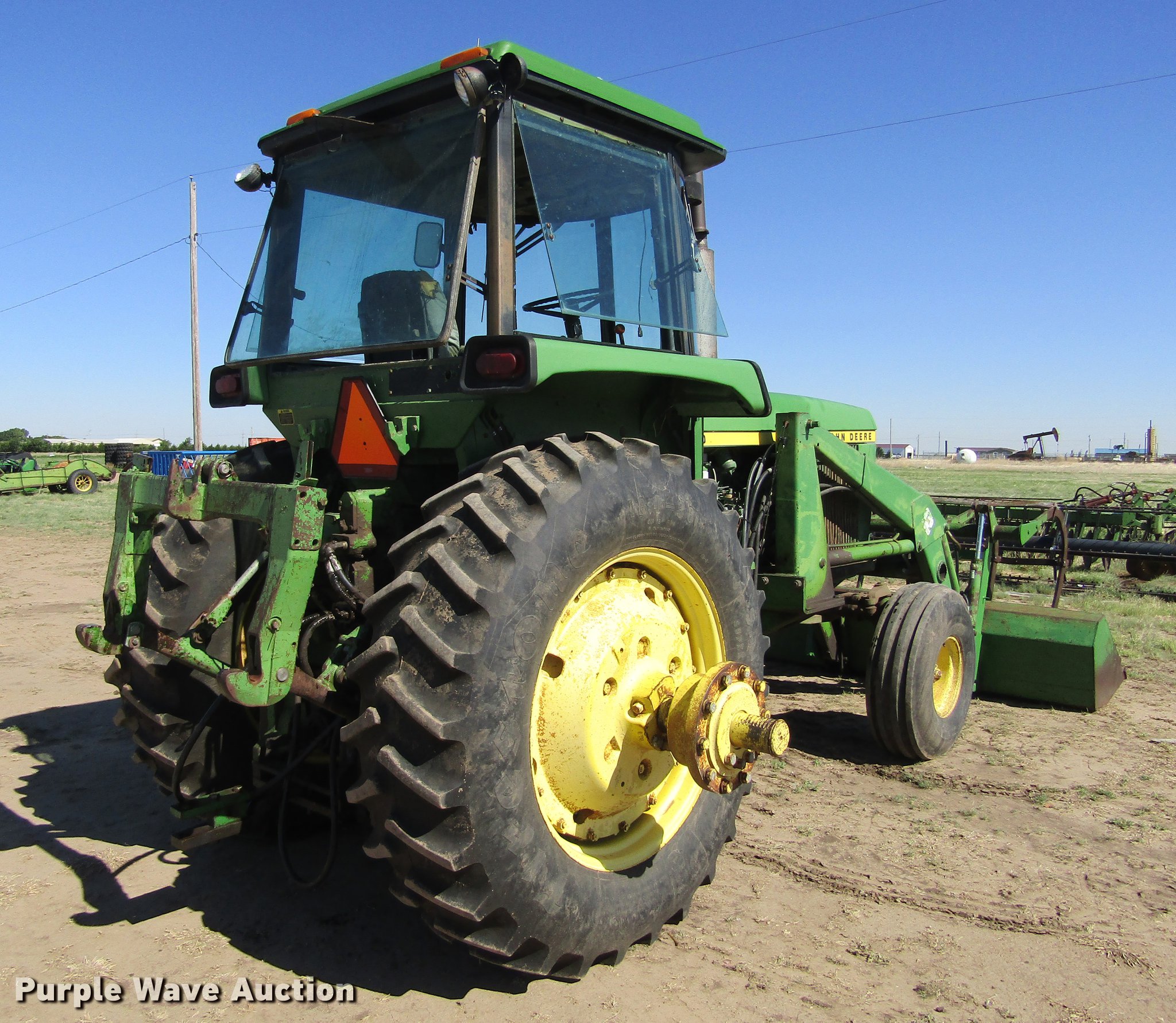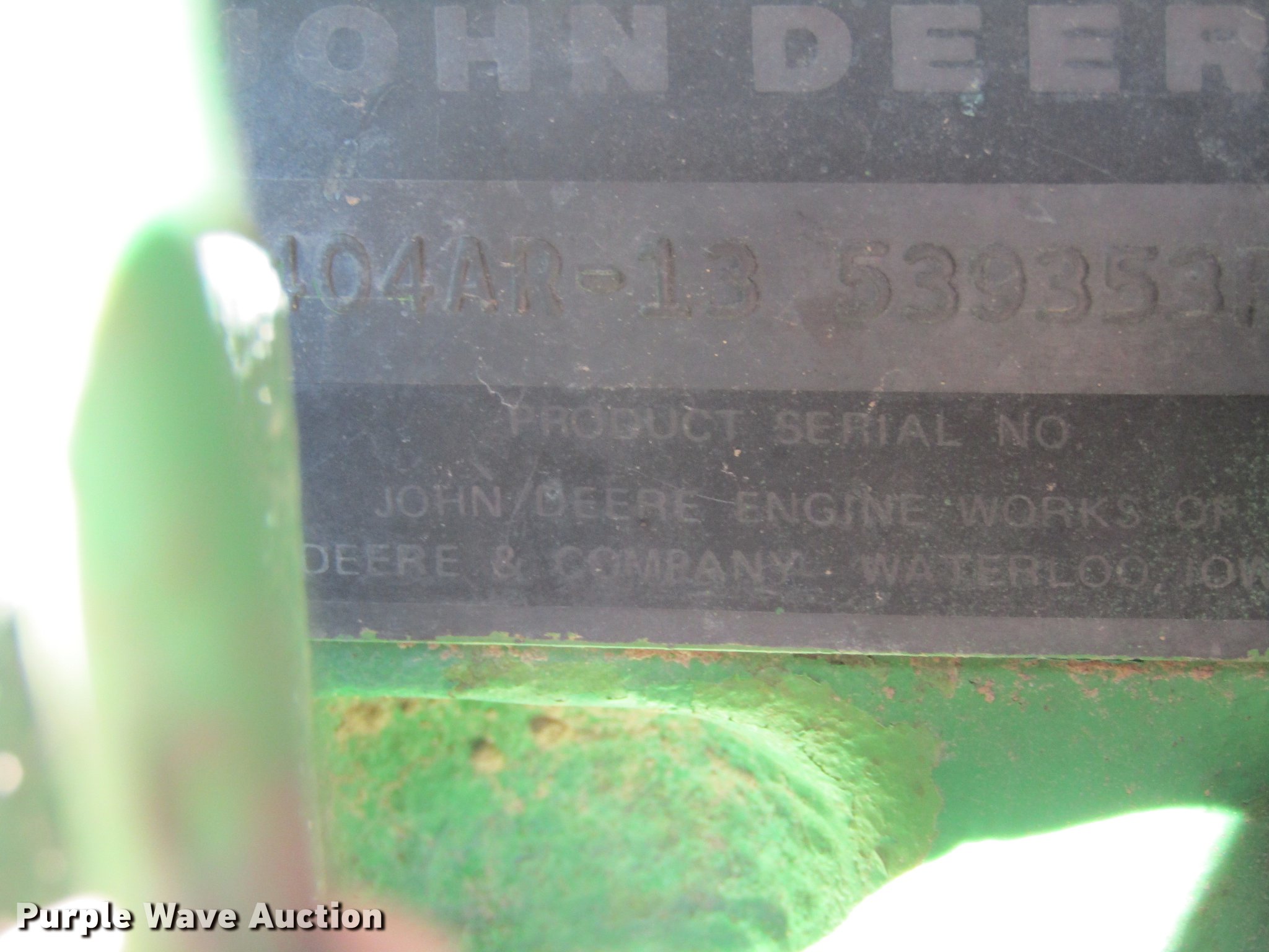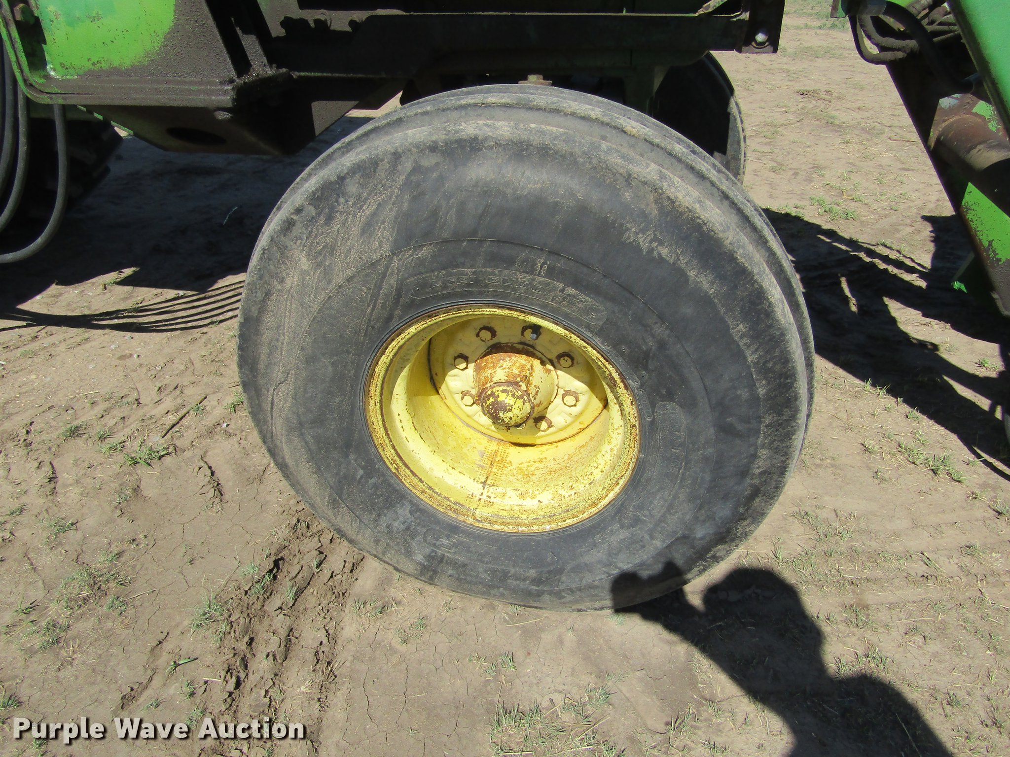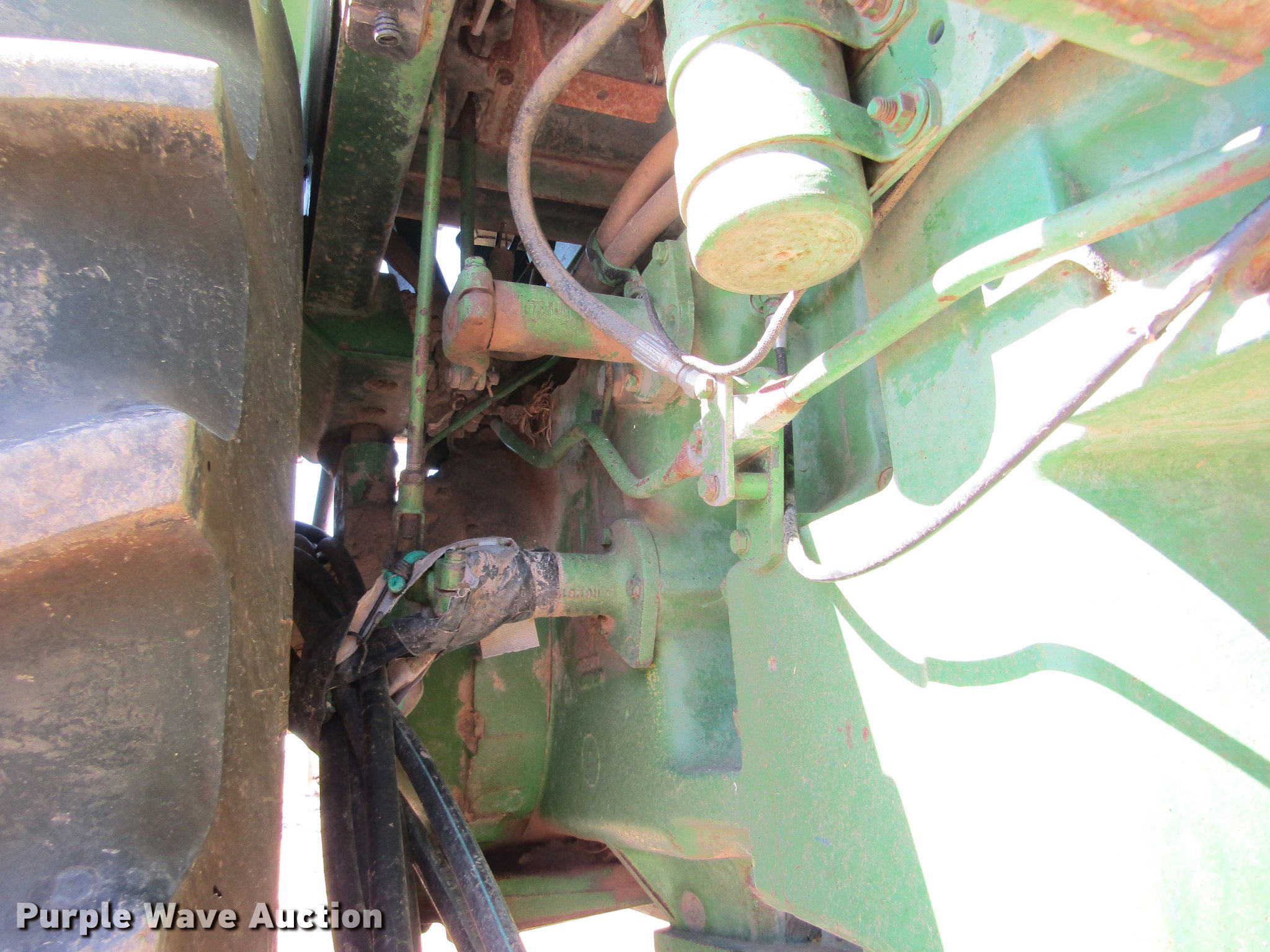 Purple Wave is selling a used Tractor in Kansas. This item is a 1977 John Deere 4630 tractor with the following: 3,495 hours on meter, John Deere 6404 six cylinder turbo diesel engine, Serial 539353RG, Quad-Range transmission, Tilt steering wheel, AM/FM, Suspension seat, John Deere 158 loader, 96"W grapple bucket, Three-lever controls, Three point, Top link, Quick attach, 540 PTO, (3) rear hydraulic remote sets, 11.00-16L front tires, 18.4-38 dual rear tires, Dual tires are not installed, Serial 028912R