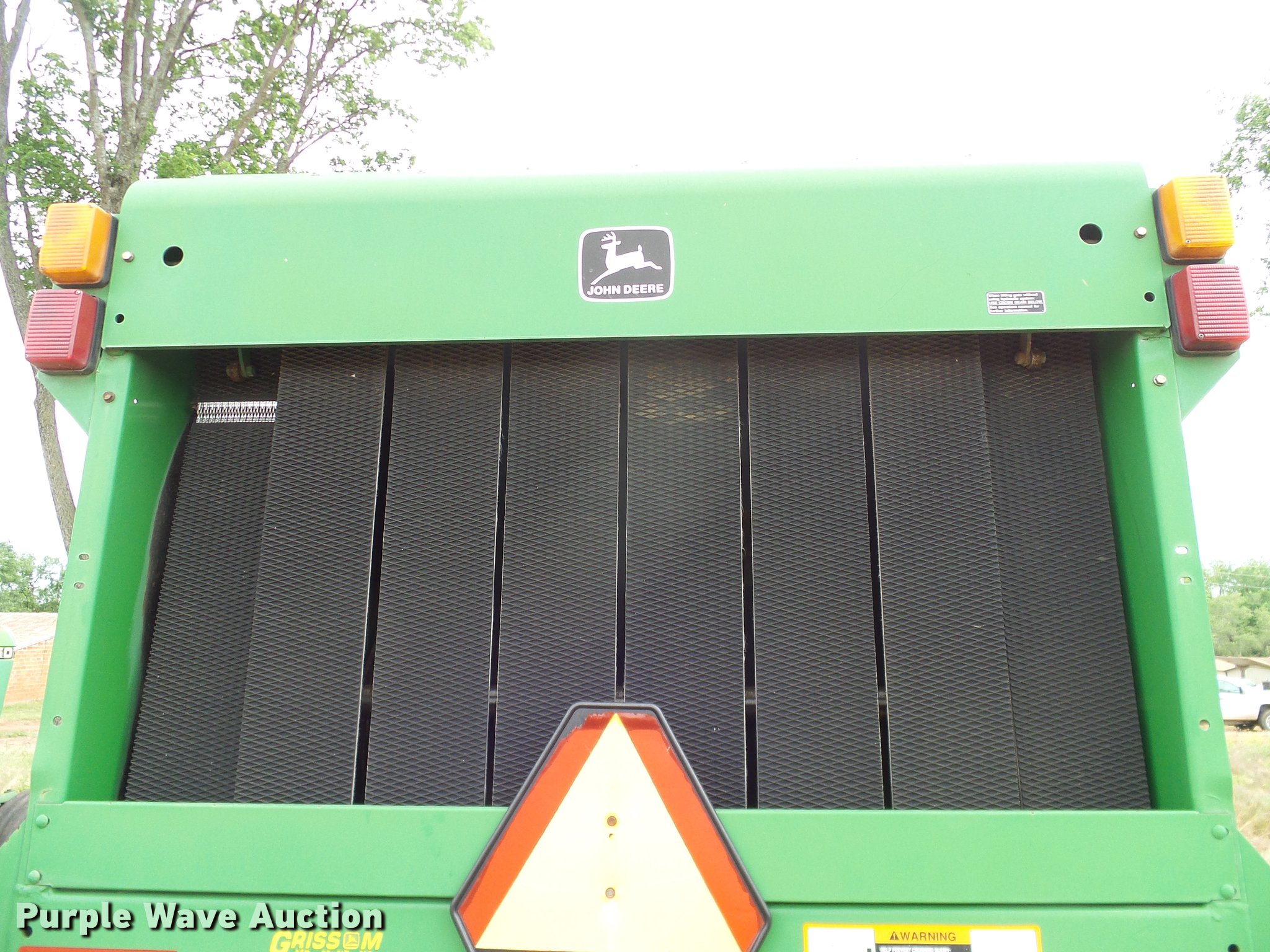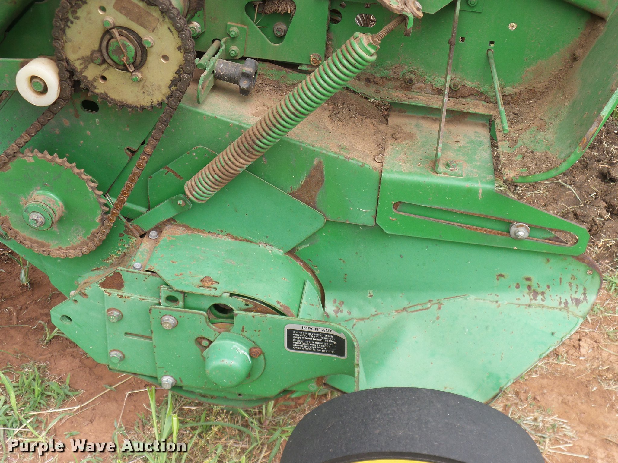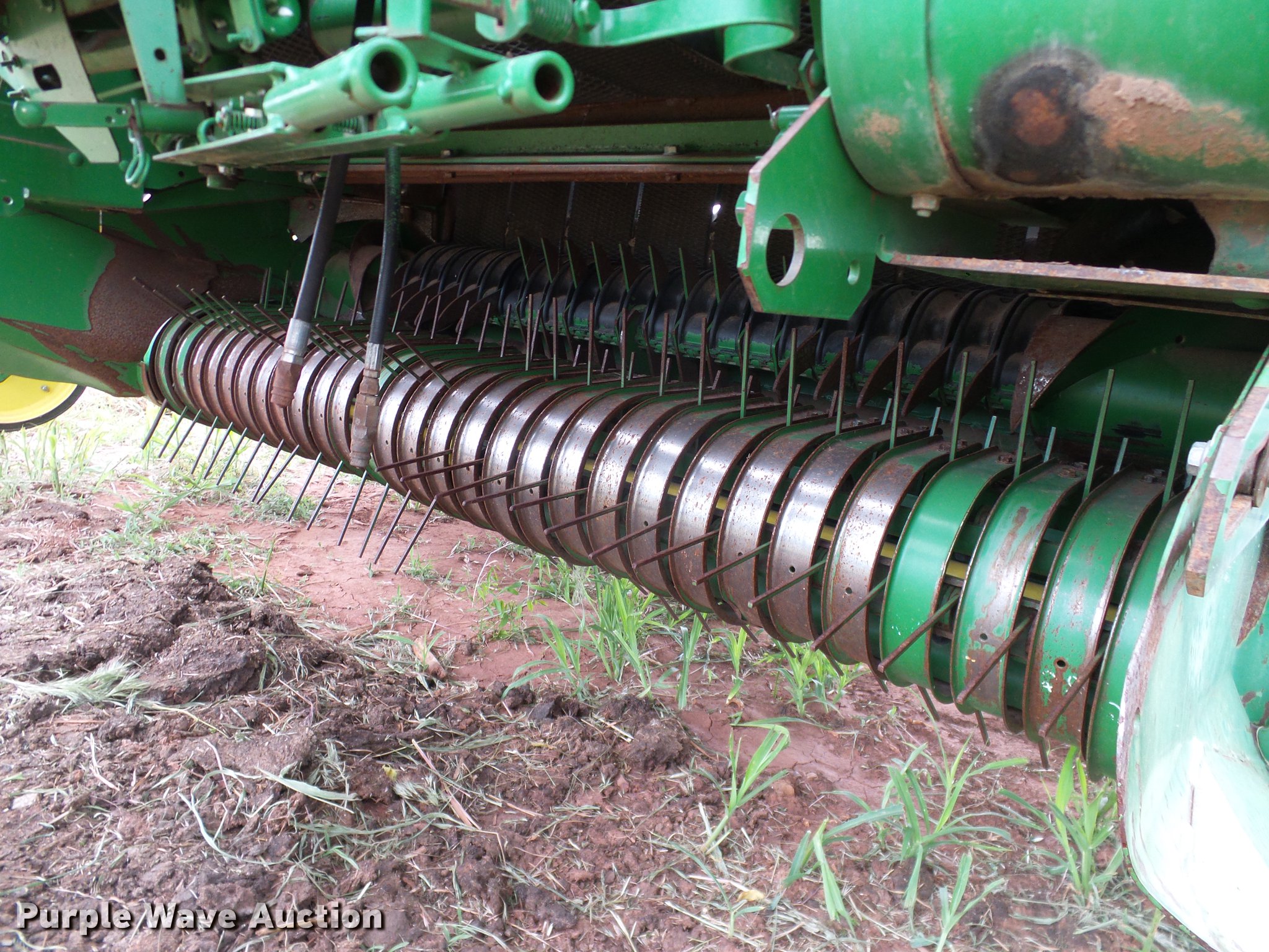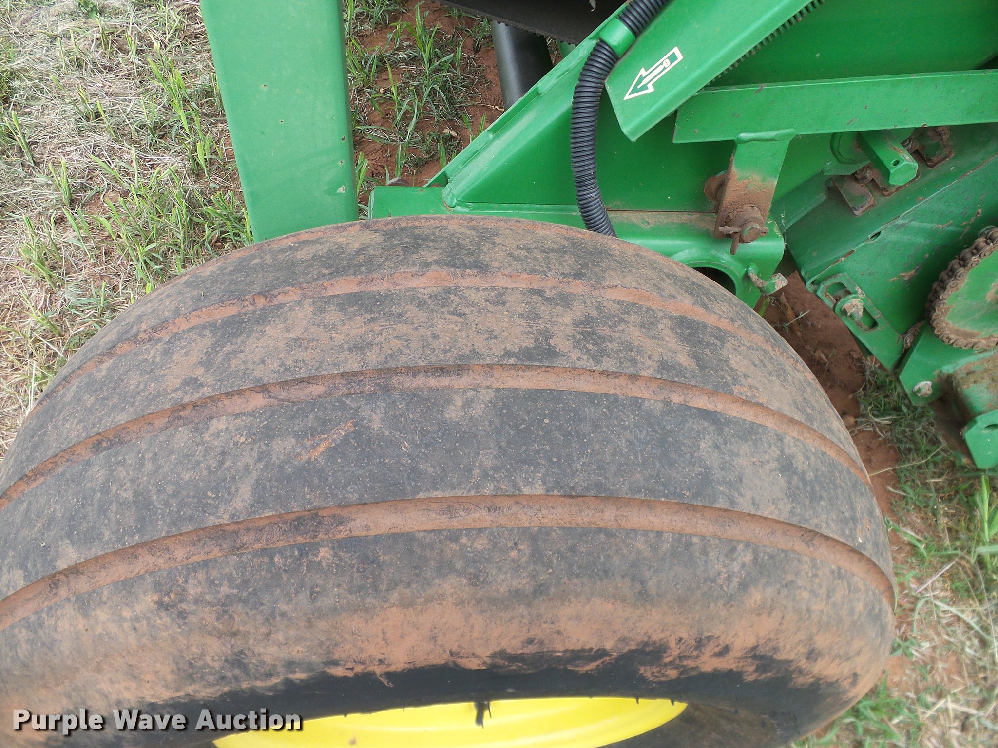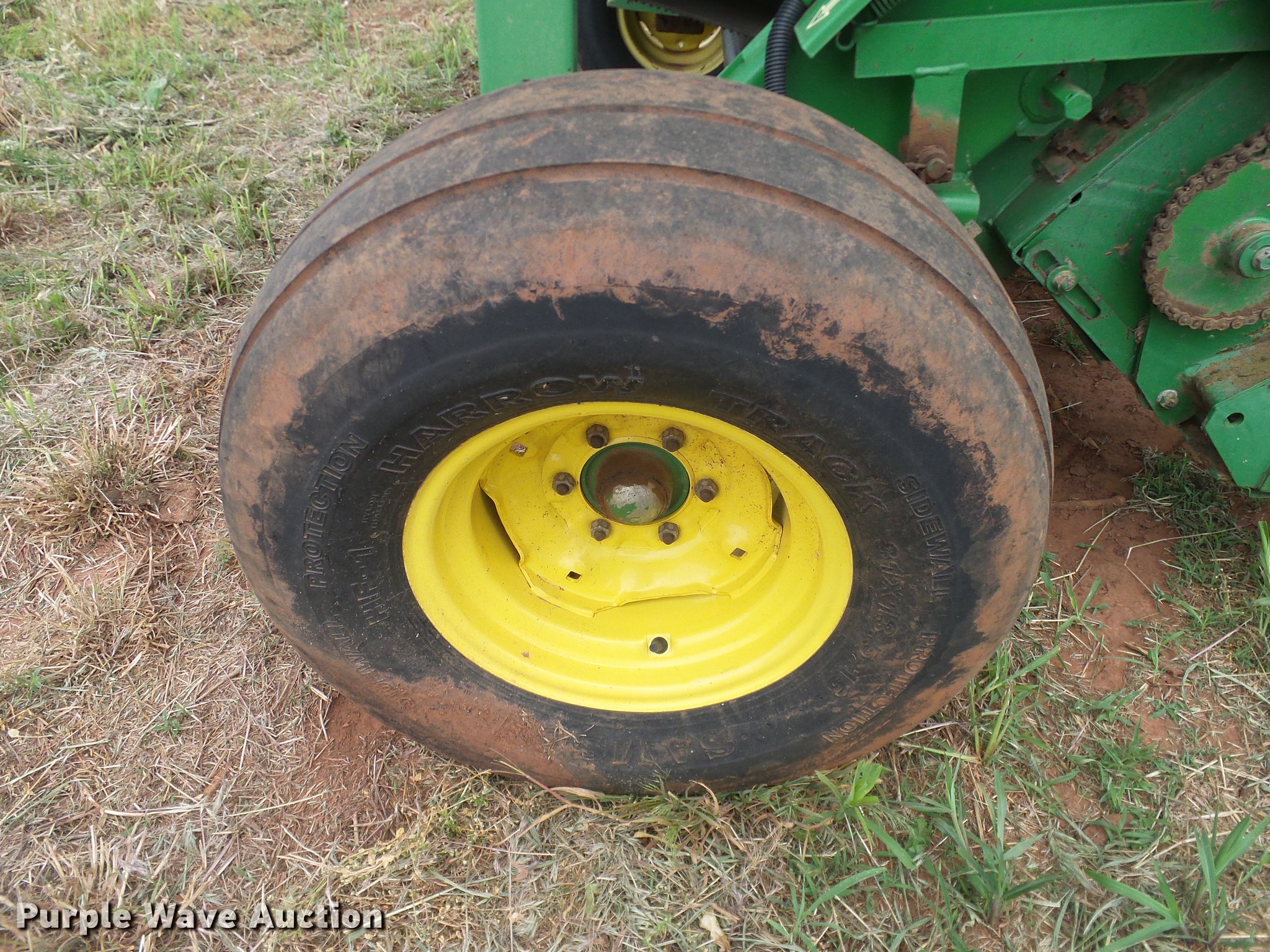 Purple Wave is selling a used Round Baler in Oklahoma. This item is a 2001 John Deere 567 Mega Wide round baler with the following: 12,833 bale count, 5' x 6' bale capacity, 78"W pickup, Hydraulic pickup lift, Gauge wheels, John Deere monitor, Twin twine tie, 540 PTO, Pin hitch, 31x13.5-15 tires, Sale# 1902-KP, Serial E00567X156980, Unit# 40