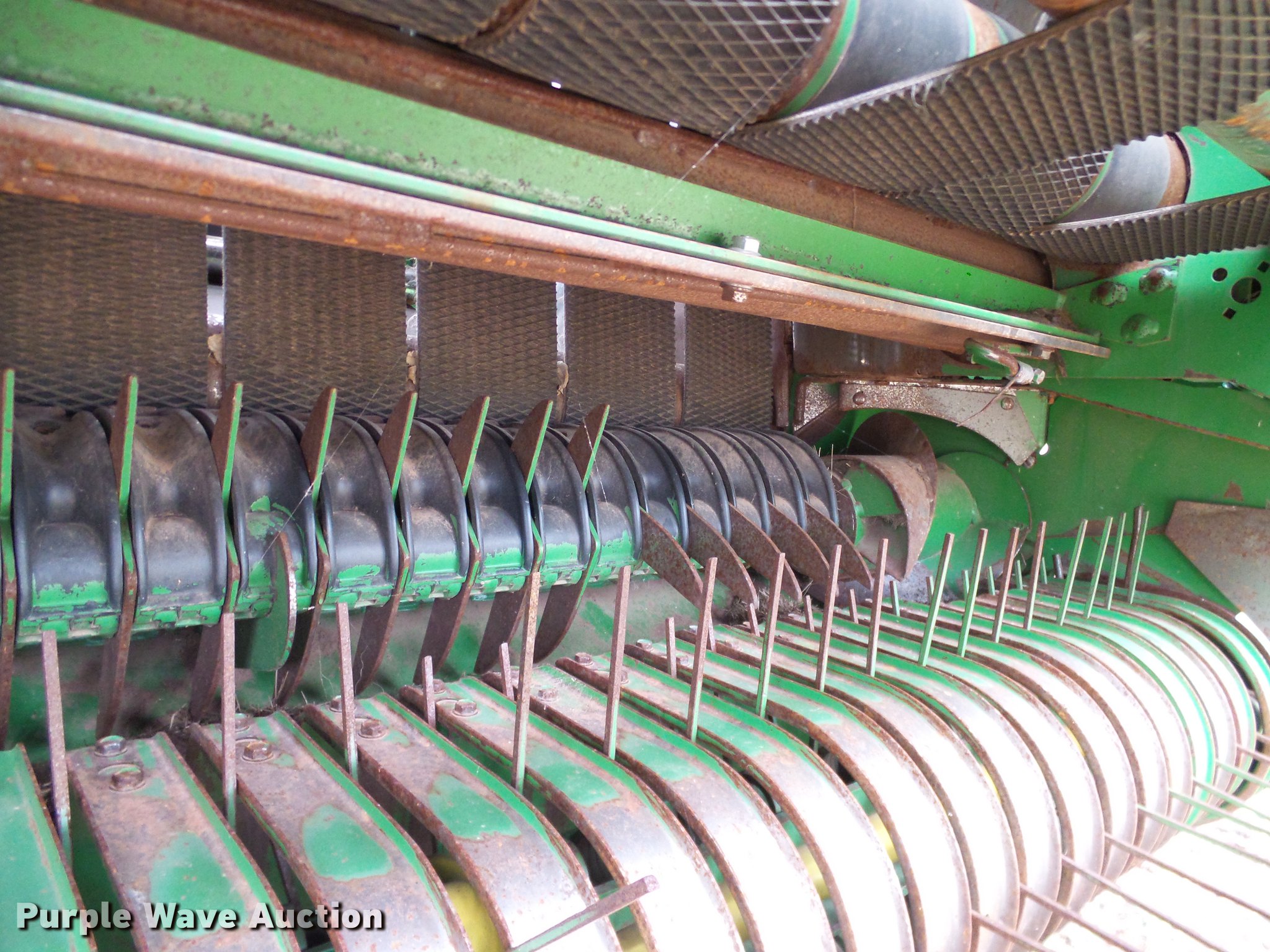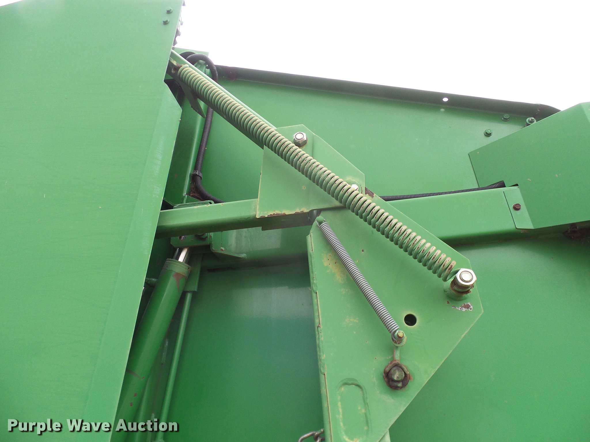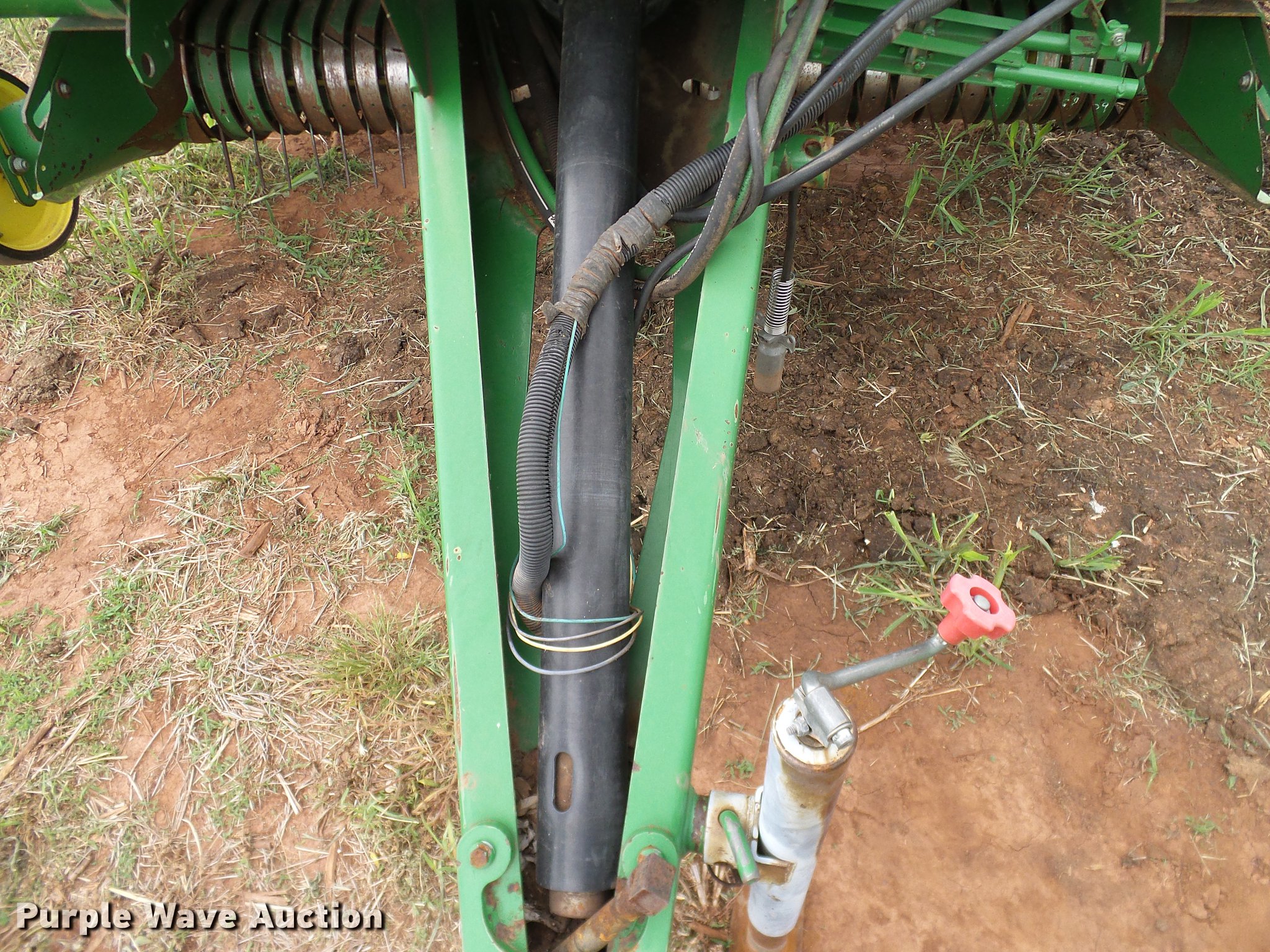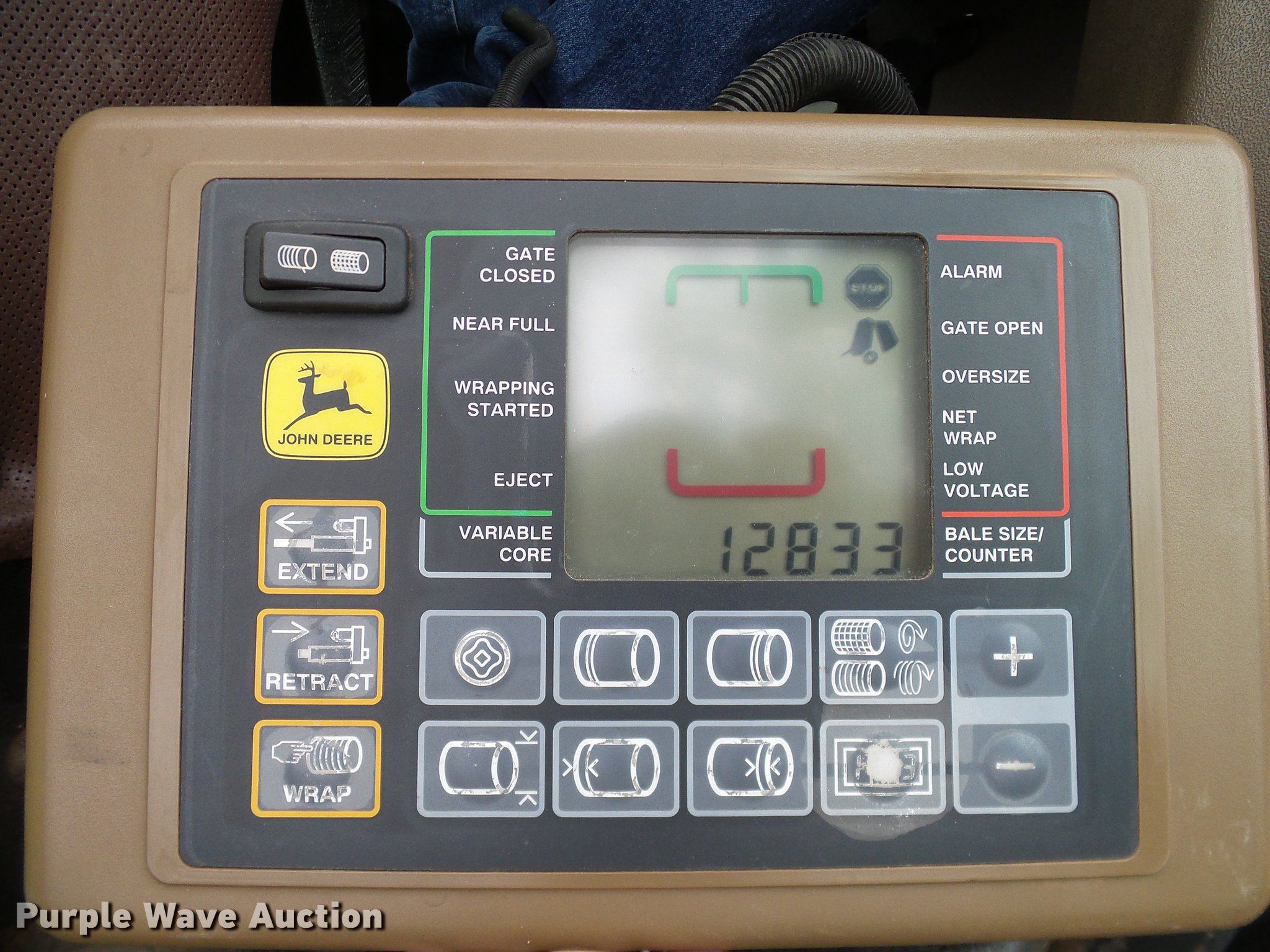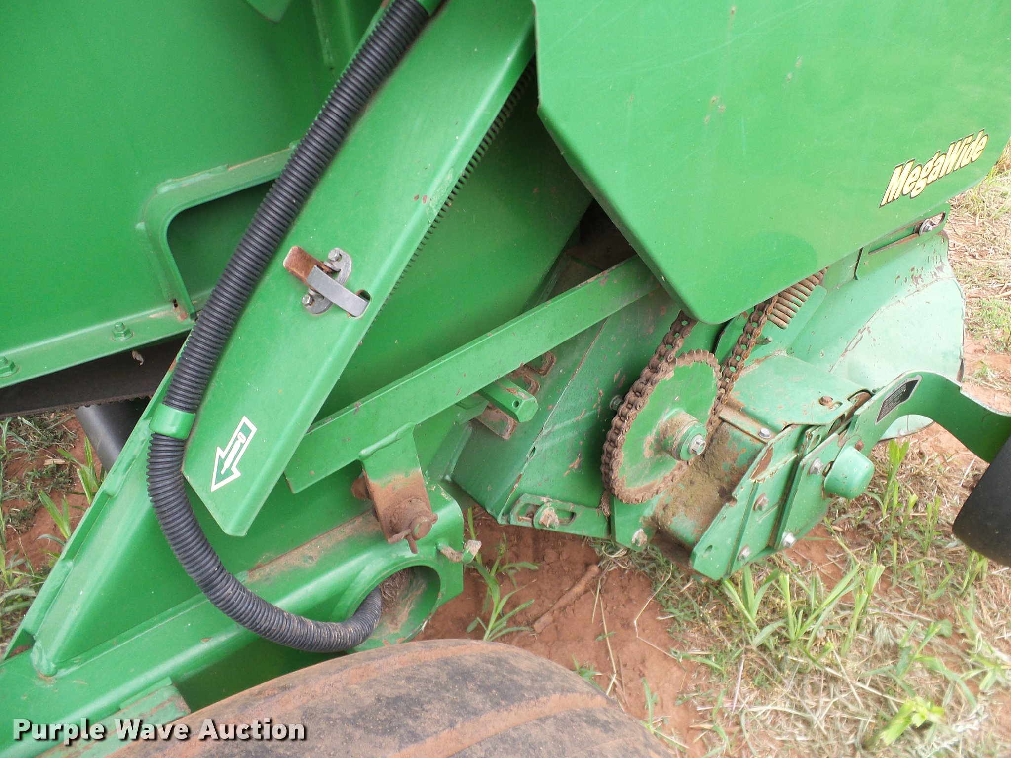 Purple Wave is selling a used Round Baler in Oklahoma. This item is a 2001 John Deere 567 Mega Wide round baler with the following: 12,833 bale count, 5' x 6' bale capacity, 78"W pickup, Hydraulic pickup lift, Gauge wheels, John Deere monitor, Twin twine tie, 540 PTO, Pin hitch, 31x13.5-15 tires, Sale# 1902-KP, Serial E00567X156980, Unit# 40