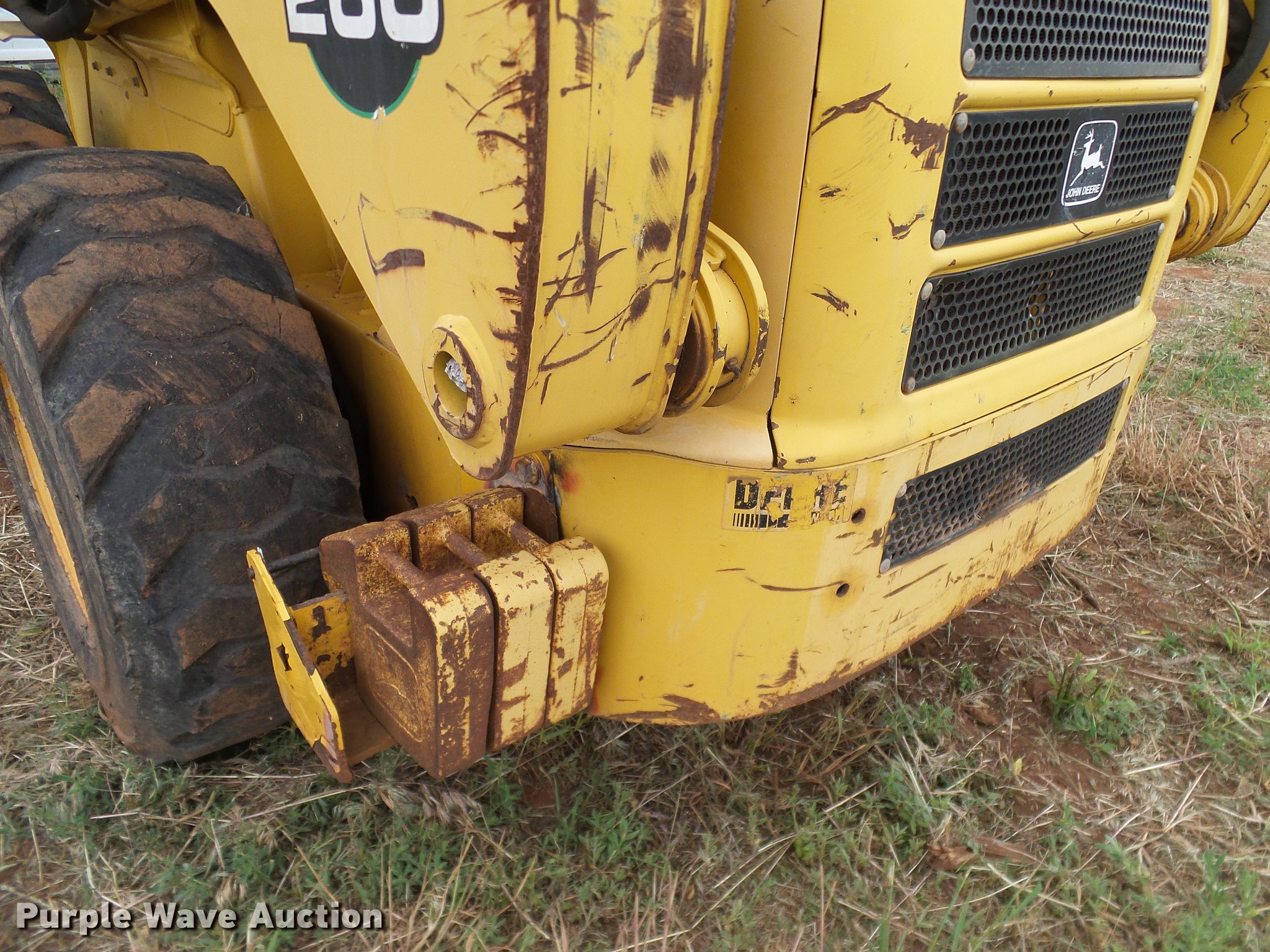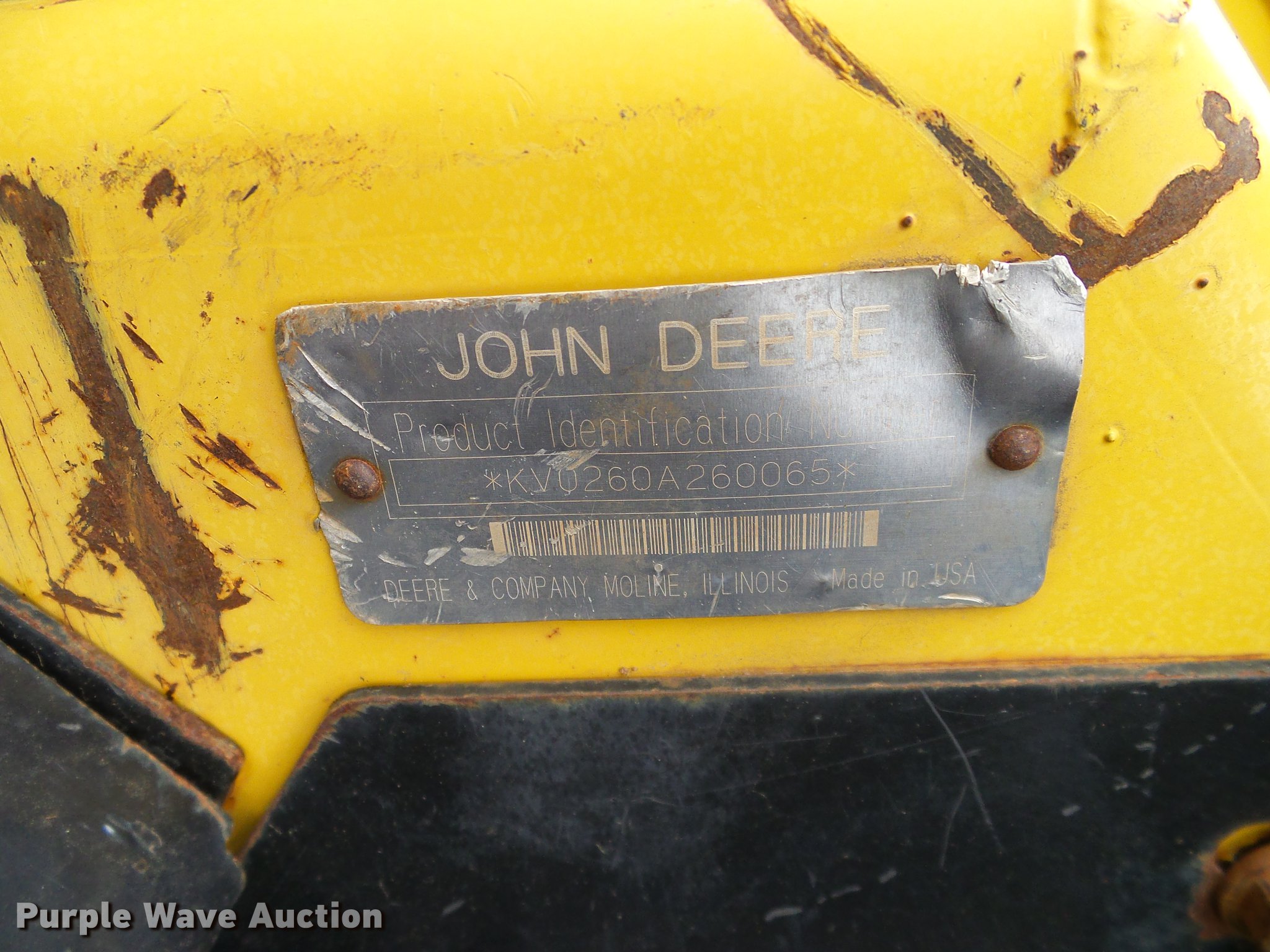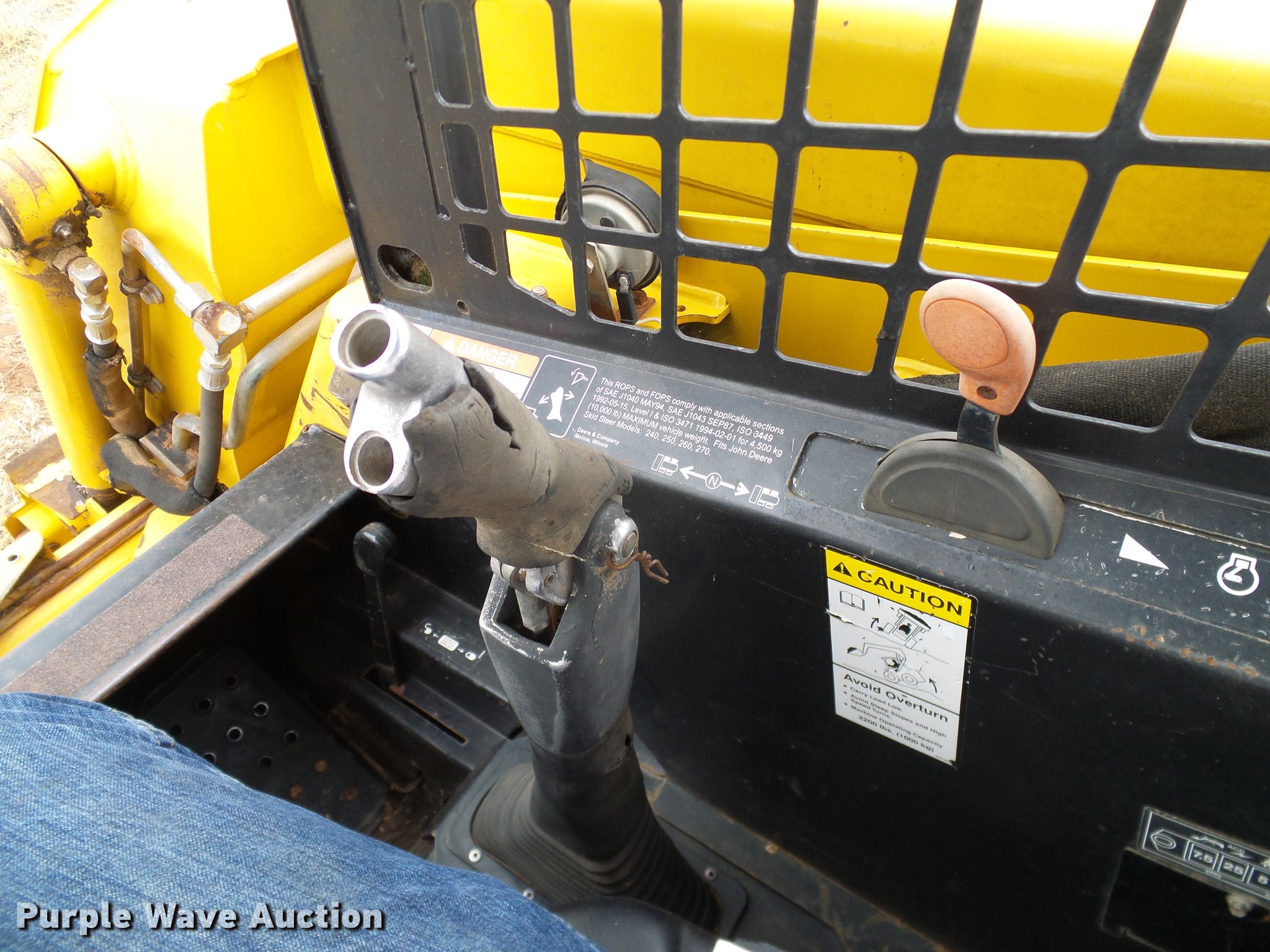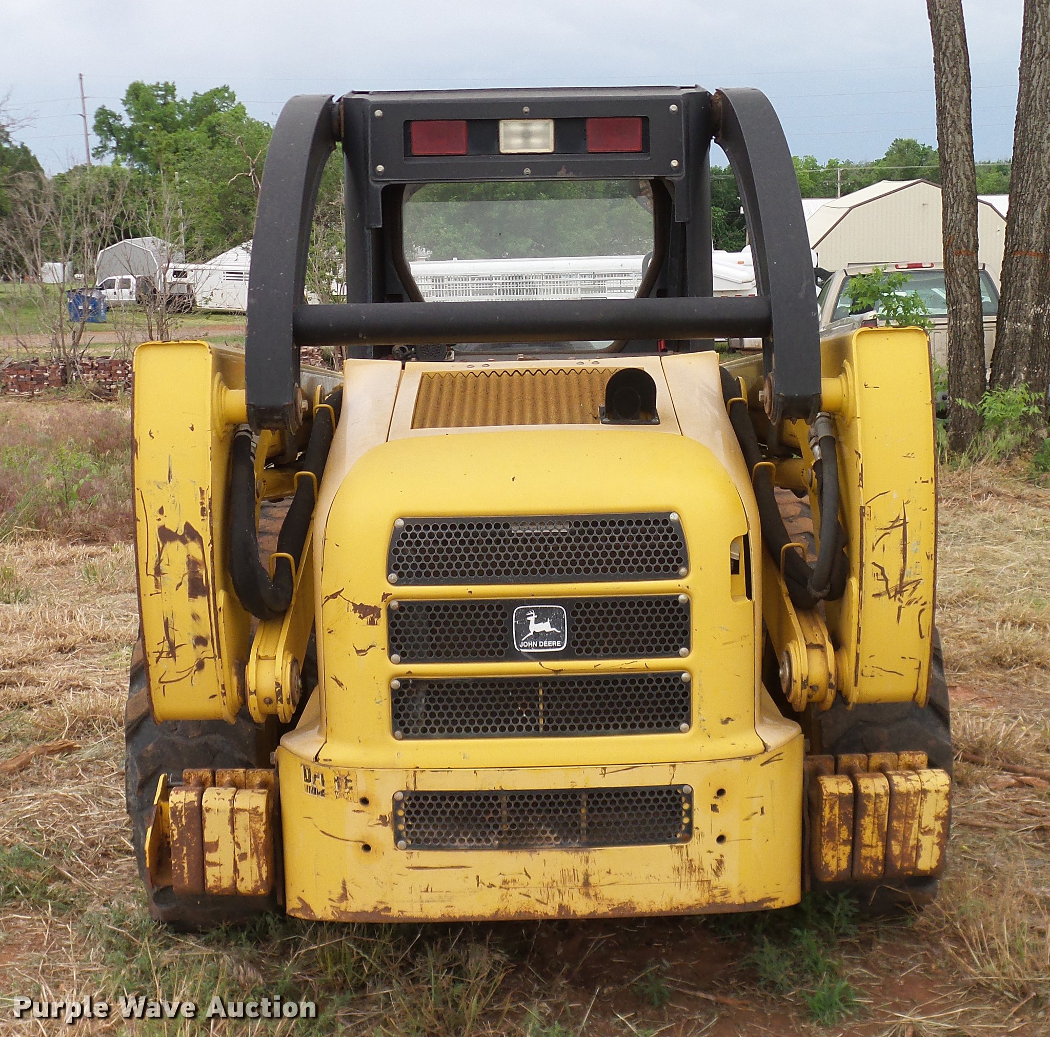 Purple Wave is selling a used Skid Steer Loader in Oklahoma. This item is a 2000 John Deere 260 skid steer with the following: 108 hours on meter, Hour meter has been replaced, Total hours unknown, John Deere three cylinder turbo diesel engine, Hydrostatic transmission, EROPS, Hand and foot controls, EMS panel, Front and rear work lights, Auxiliary hydraulics, Manual quick coupler, (7) removable counterweights, 14-17.5 tires, Sale# 1902-KP, Serial KV0260A260065