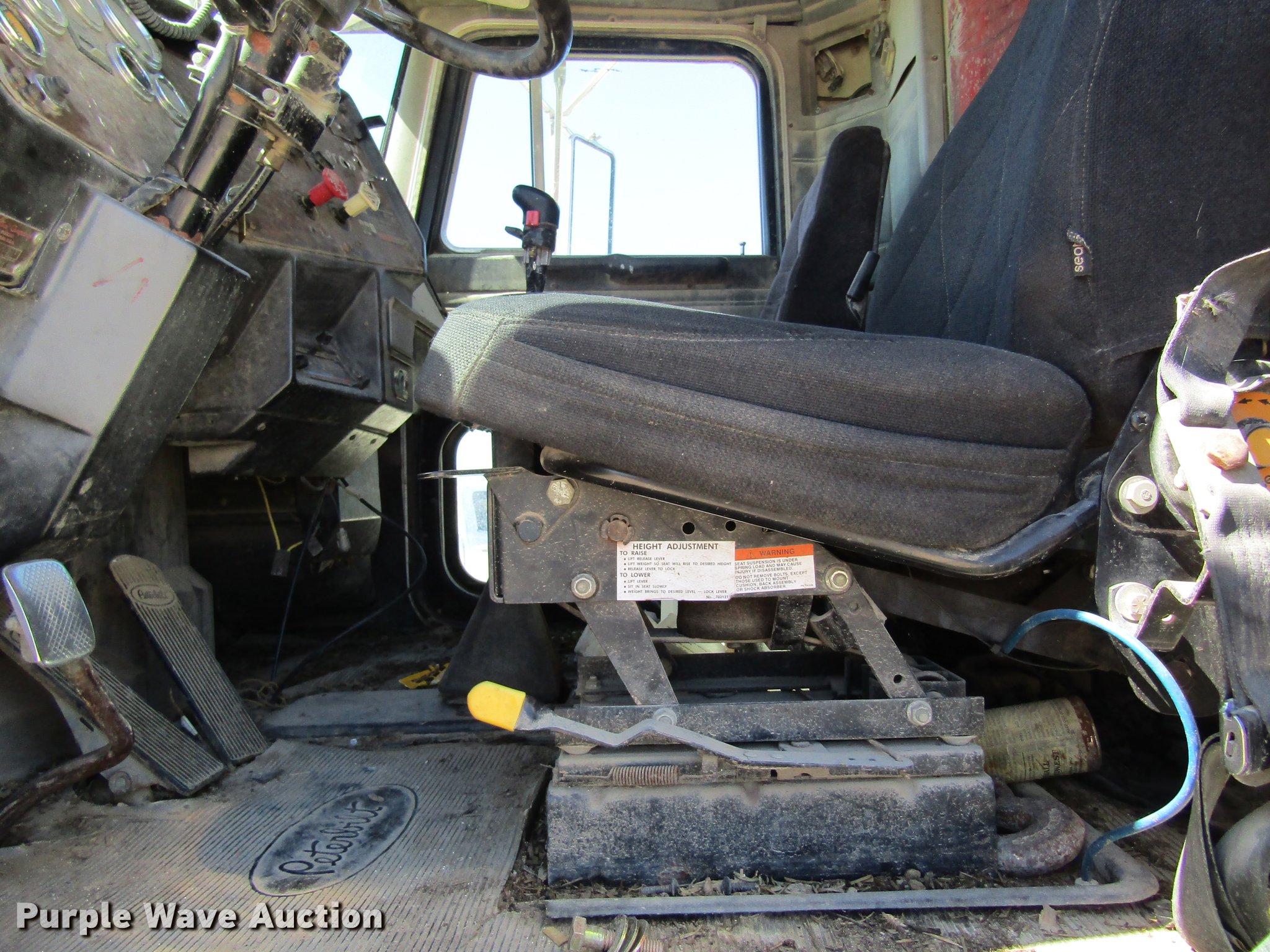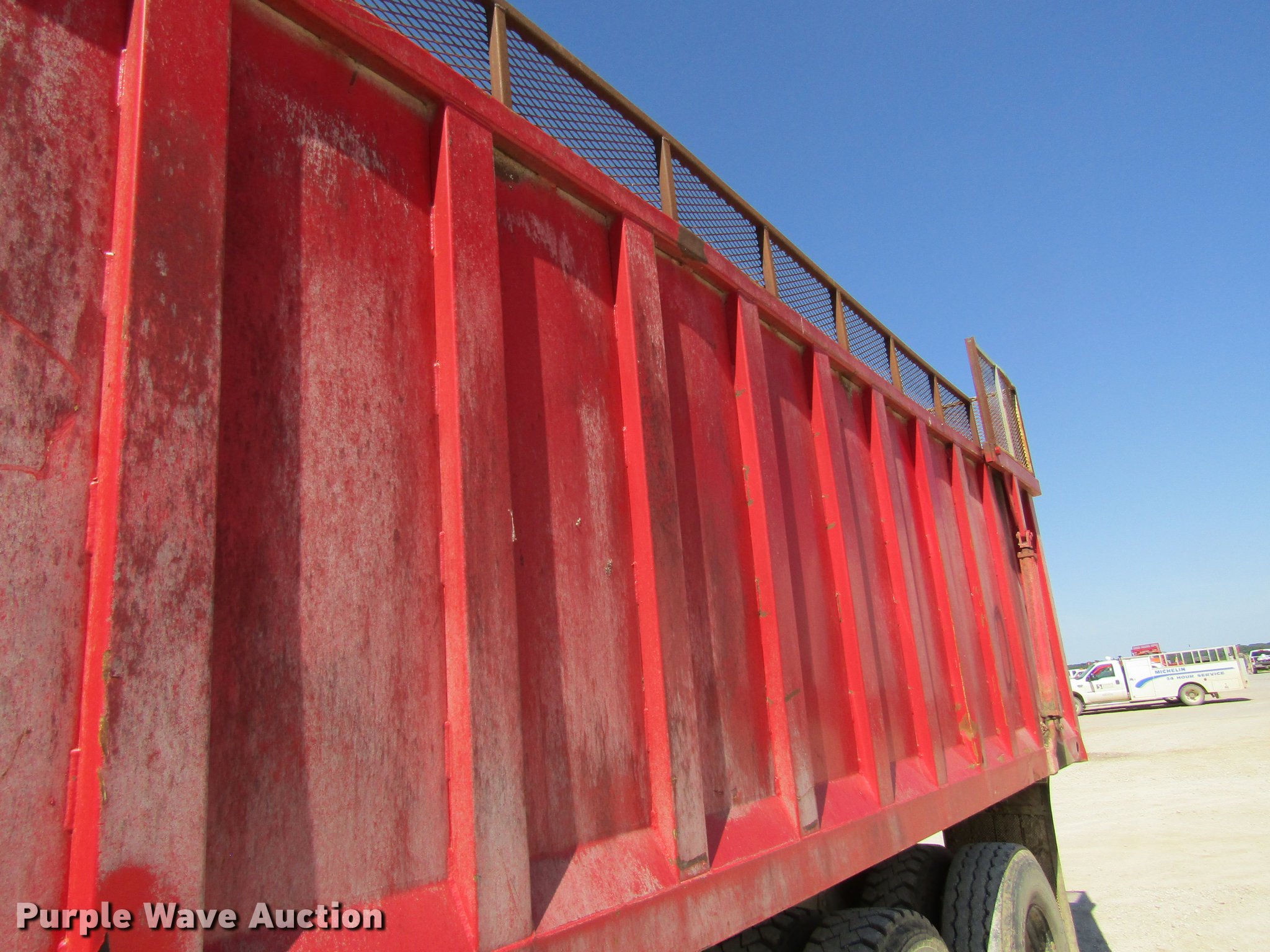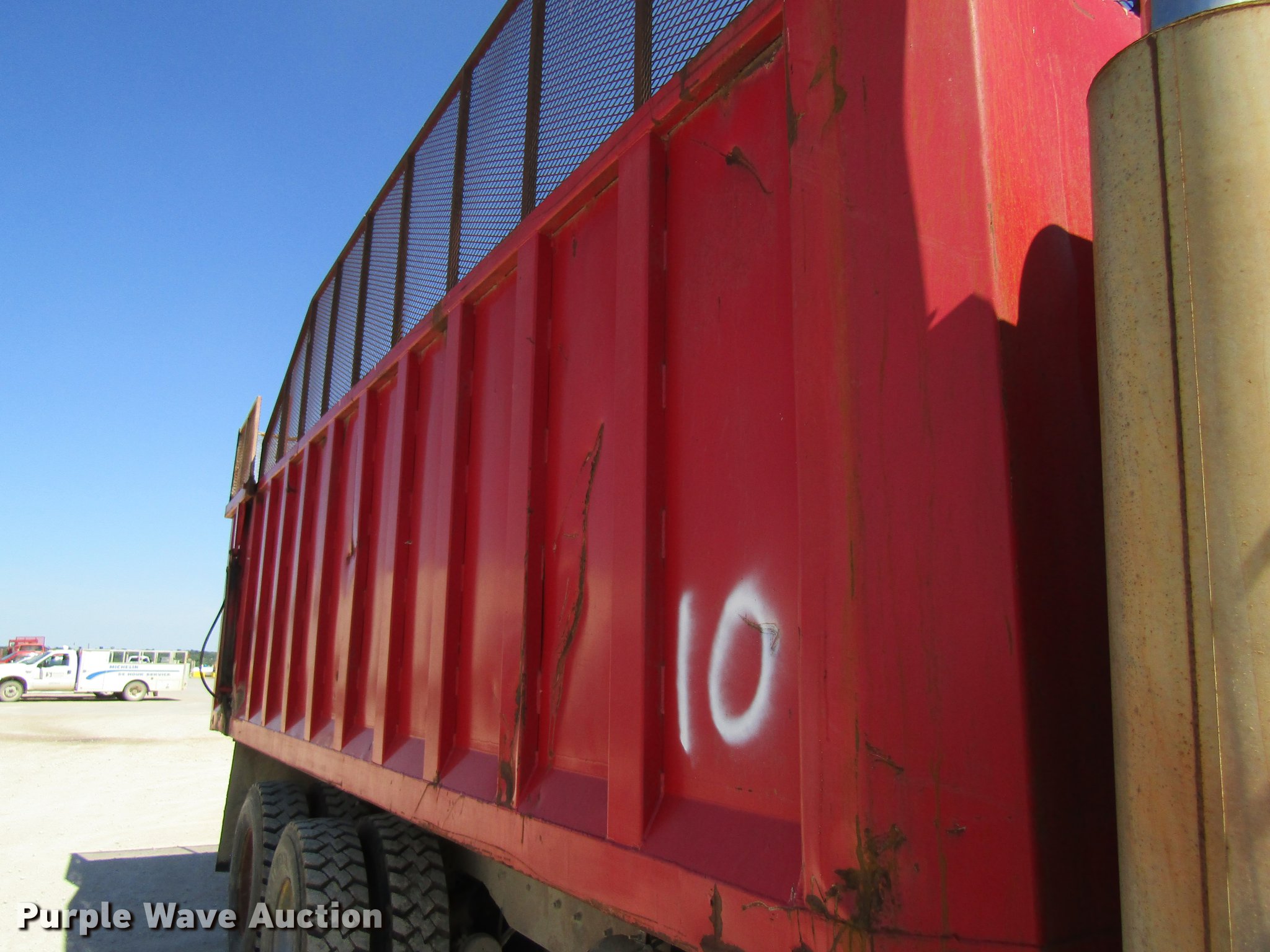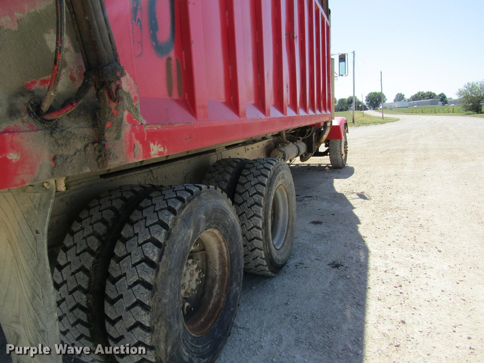 Purple Wave is selling a used Grain Truck in Missouri. This item is a 1991 Peterbilt 375 silage truck with the following: 110,127 miles on odometer, Cummins L10 10.0L L6 turbo diesel engine, Eaton Fuller nine speed manual transmission, Heat, Suspension seat, PTO, 22'L x 8'W steel silage bed, 66" side height, 12" side board height, Dual ram hoist, Air operated end gate, Spring suspension, Air brakes, 315/80R22.5 tires