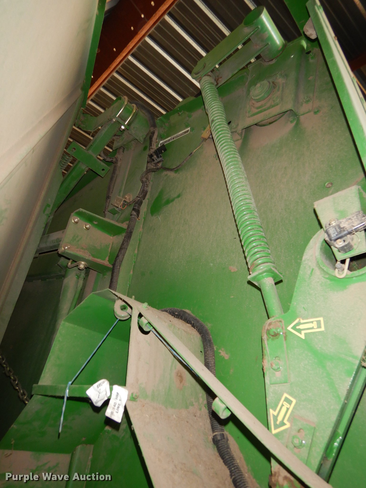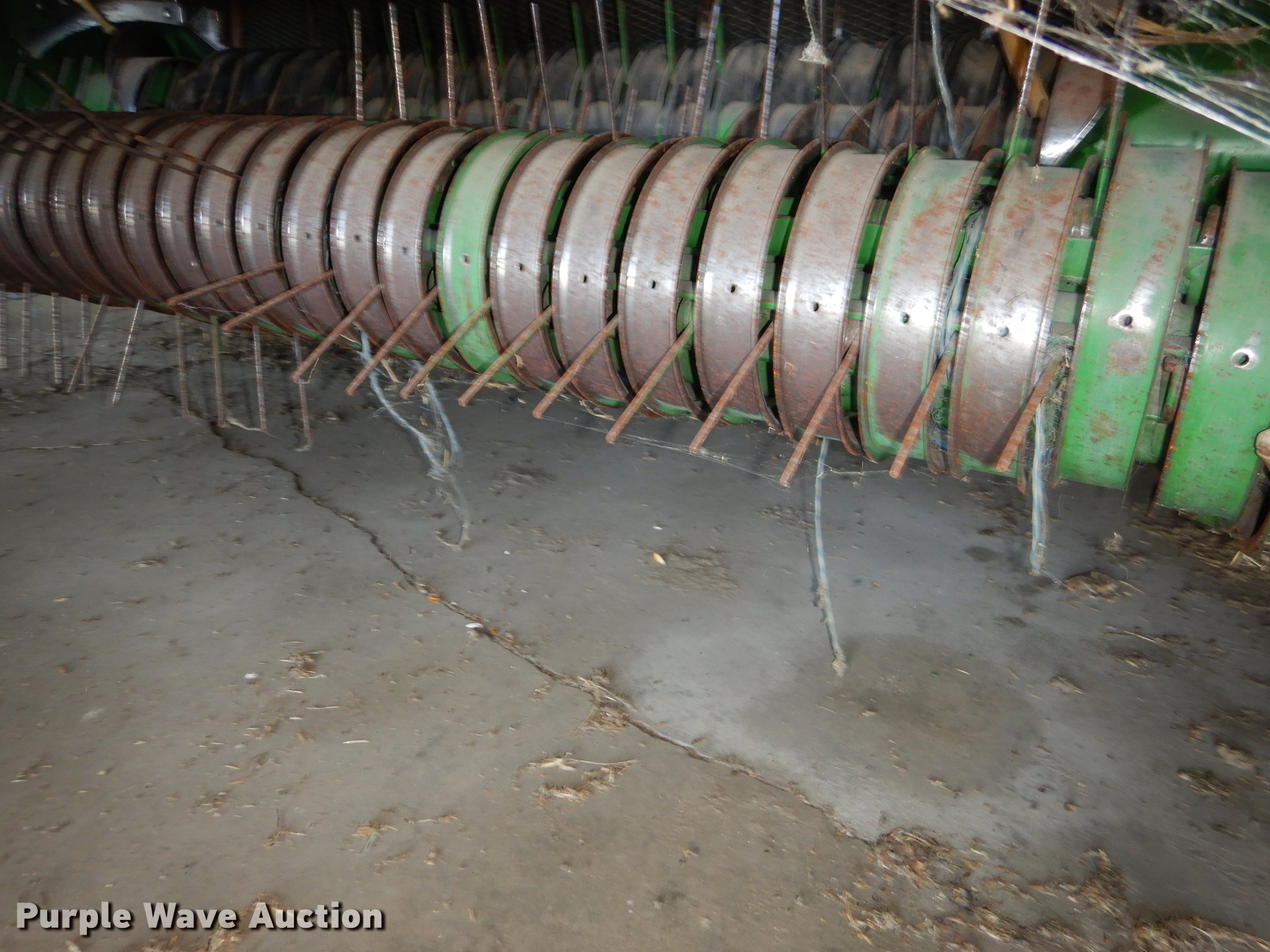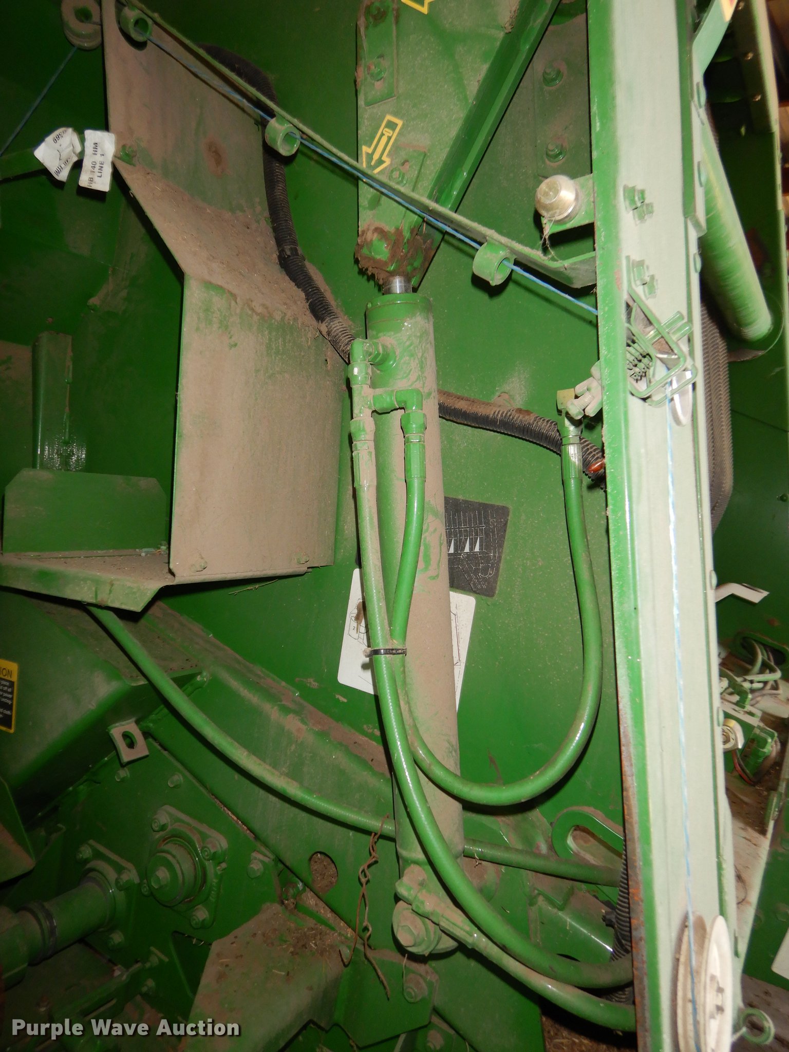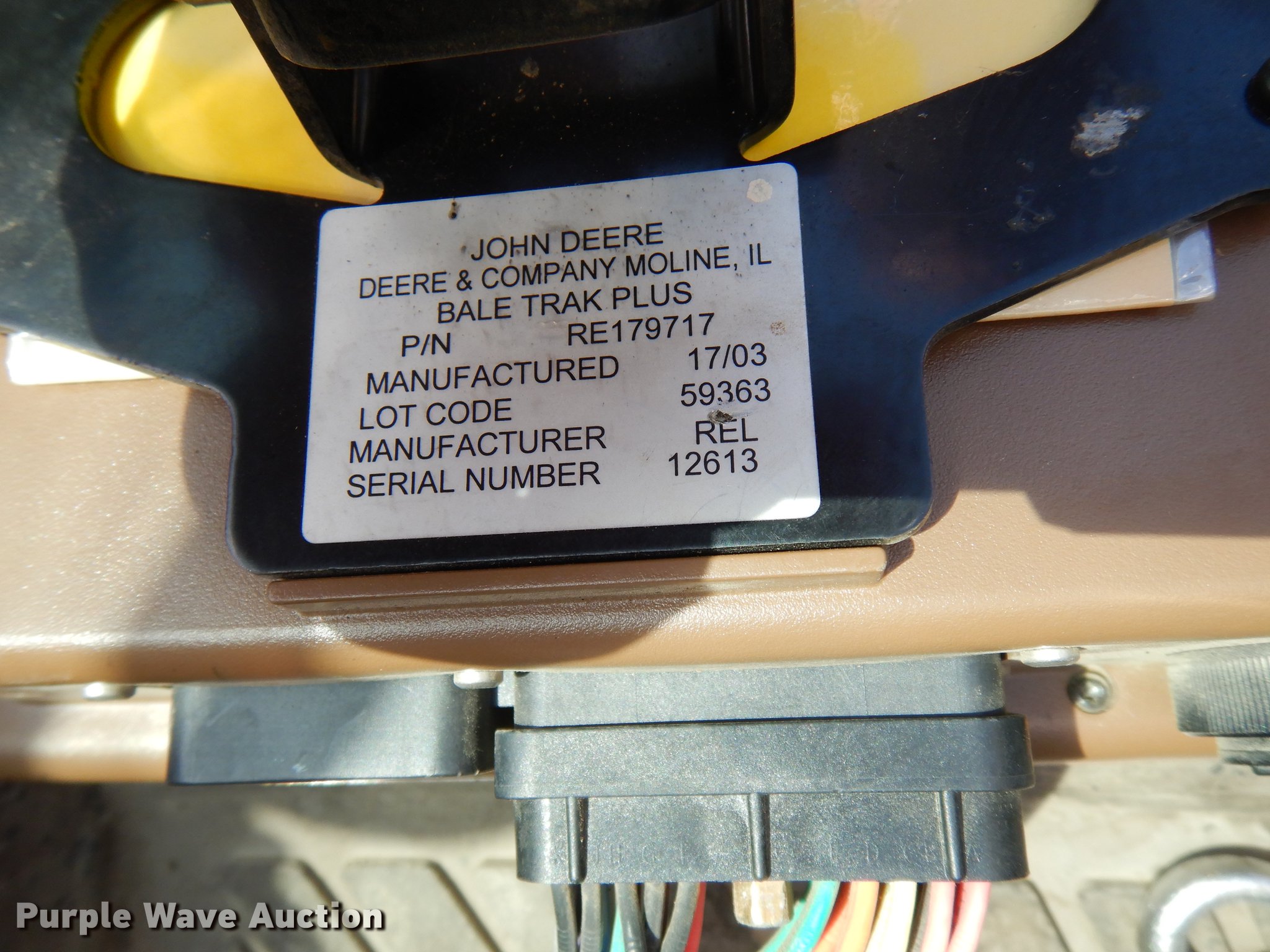 Purple Wave is selling a used Round Baler in Kansas. This item is a 2003 John Deere 567 Mega Wide round baler with the following: 12,599 bale count, 5' x 6' bale capacity, 6'W pickup, Hydraulic pickup lift, Gauge wheels, John Deere Bale Trak Plus RE179717 monitor, Serial 12613, Twin twine tie, Variable core unit, 540 PTO, Pin hitch, Firestone 31x13.50-15 tires, Unit has not been used in four to five years, Serial E00567X197807