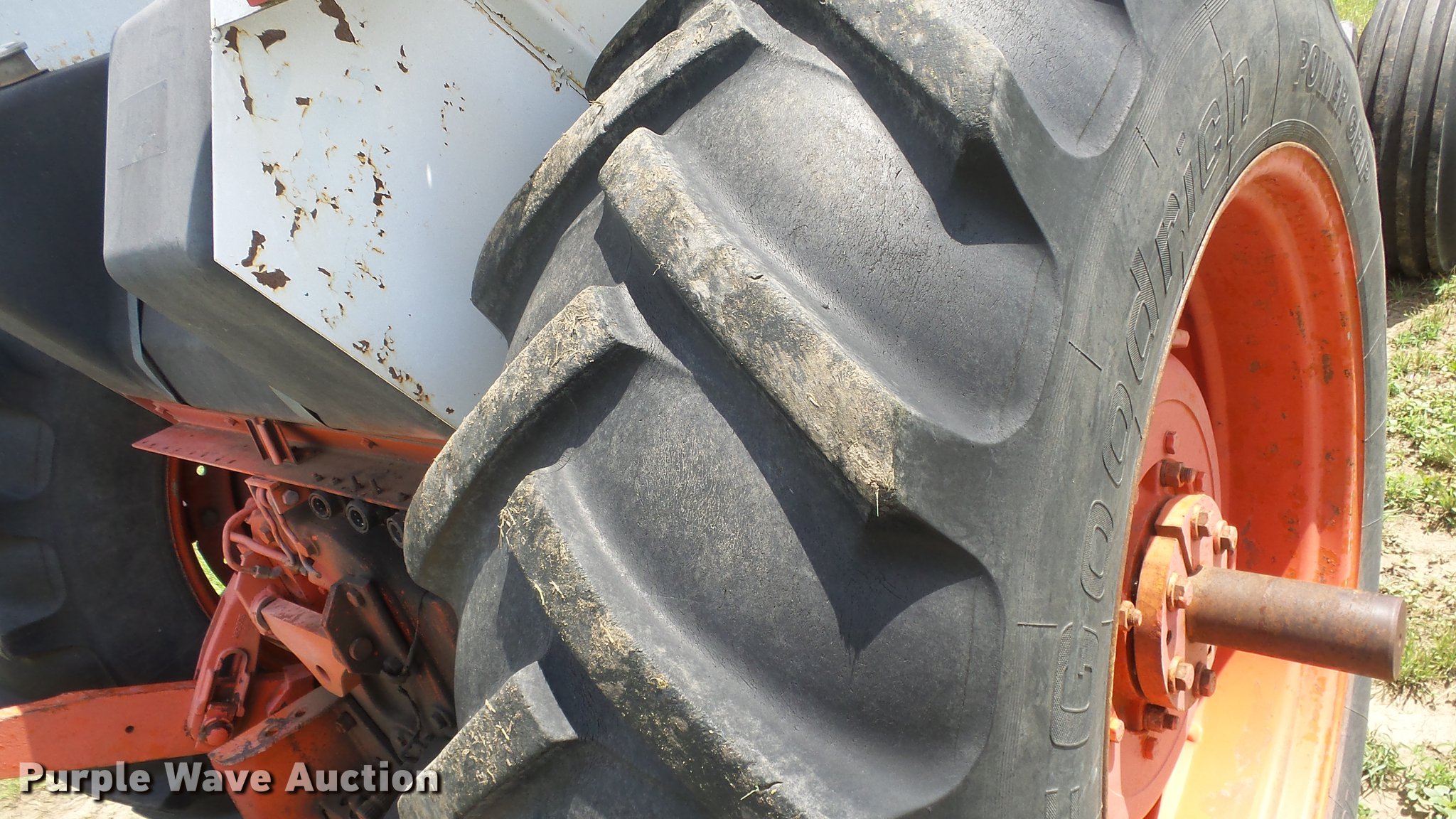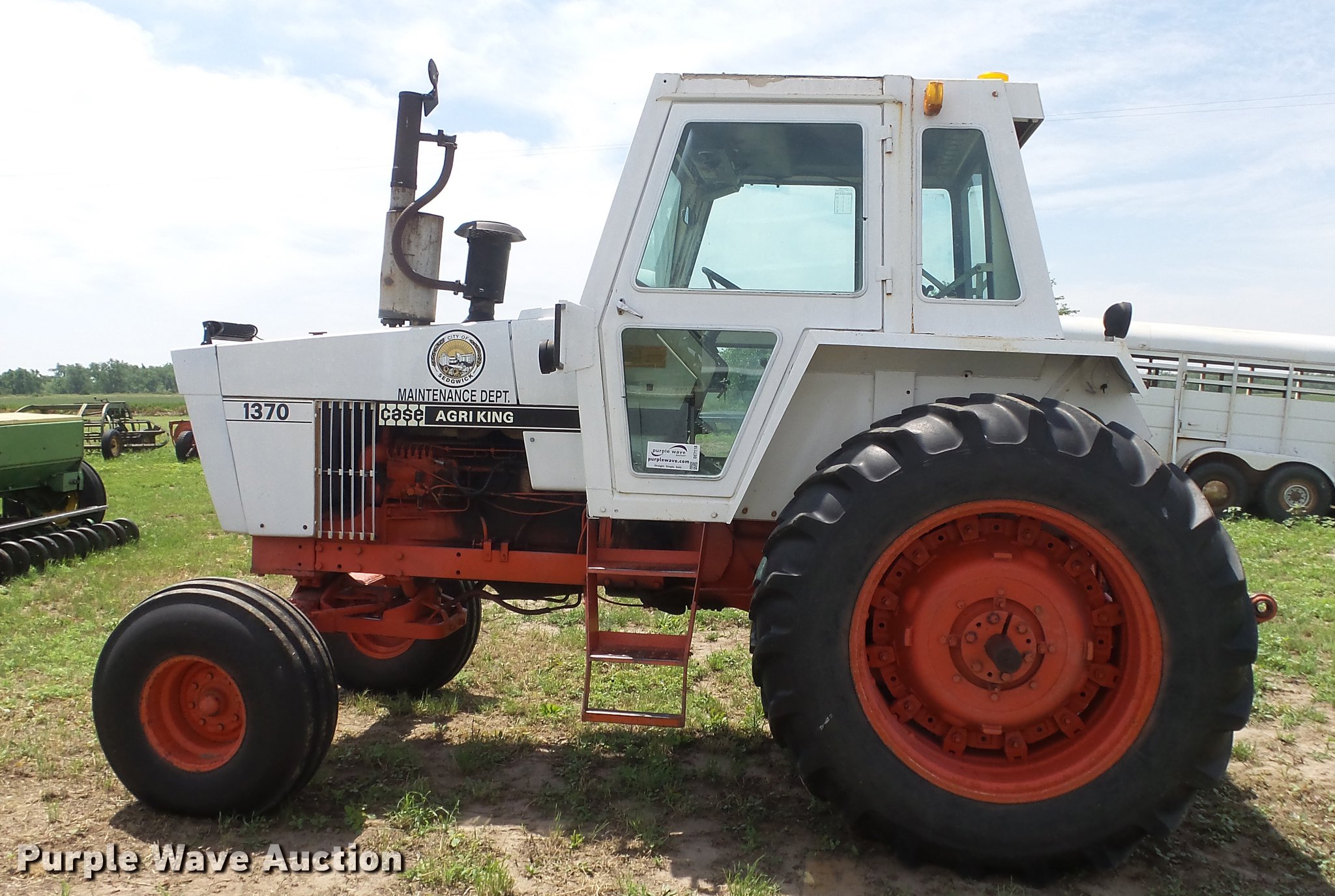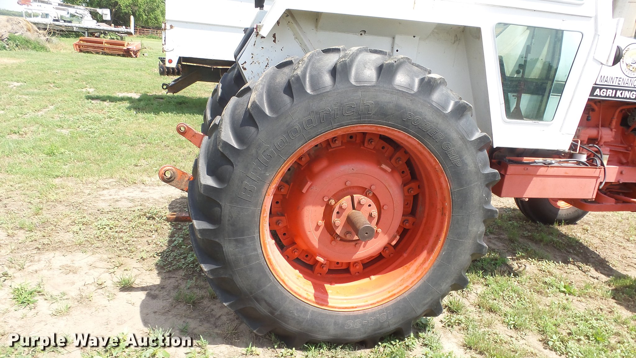 Purple Wave is selling a used Tractor in Kansas. This item is a Case 1370 Agri-King tractor with the following: 7,021 hours on meter, Case 8.3L six cylinder diesel engine, Partial powershift transmission, 12F-3R gears, AC and heat, AM/FM, Work lights, Front light bar, Beacon light, Cold start, Three point, 1000 PTO, (2) rear hydraulic remote sets, 11.00-16 front tires, 18.4-38 rear tires, Cracked windshield