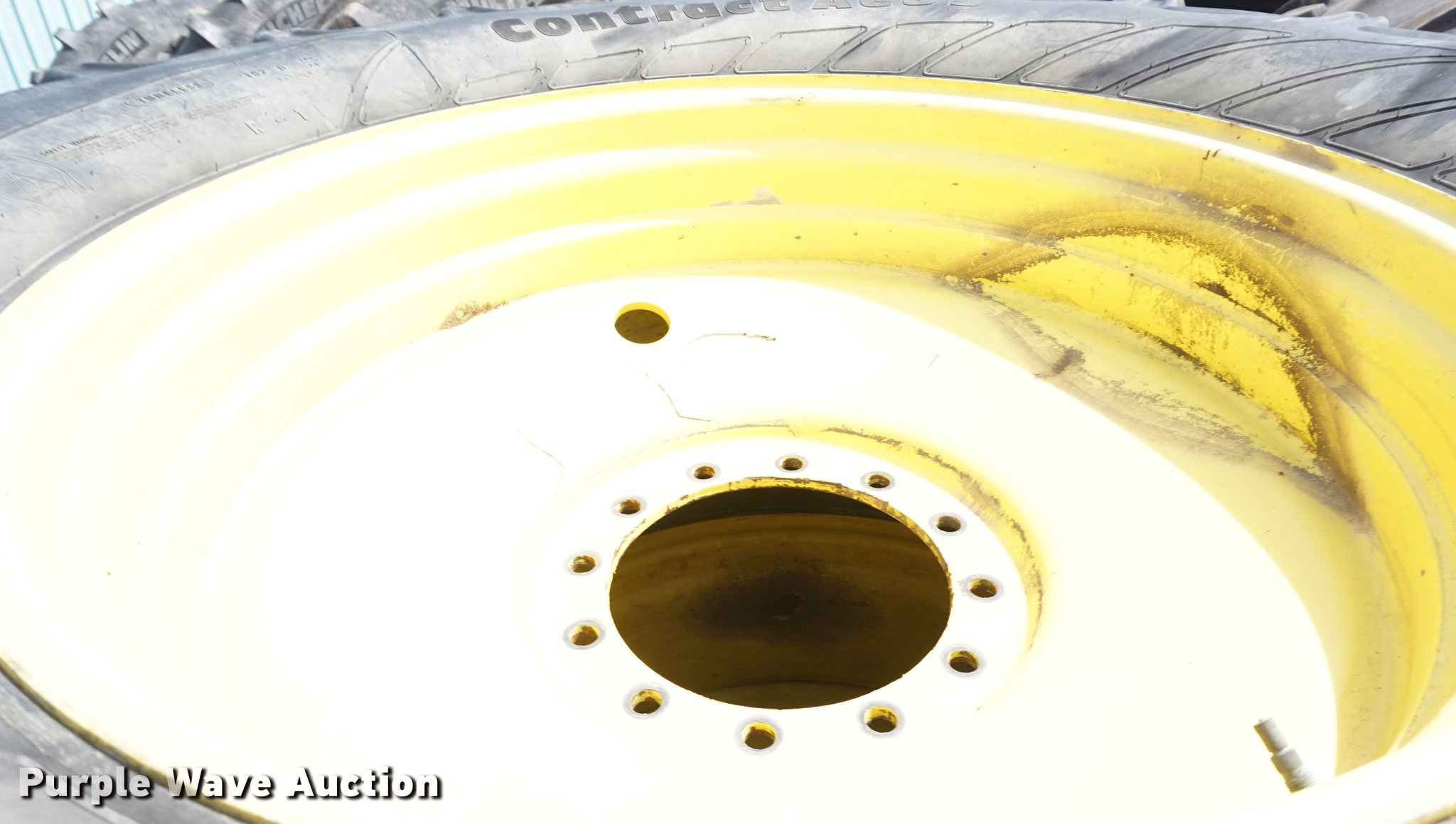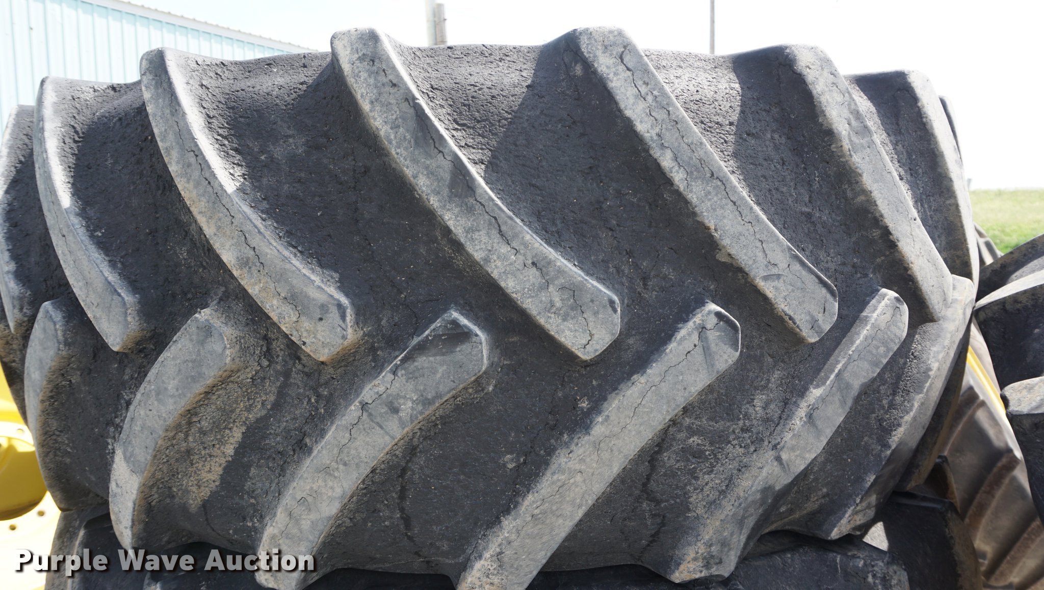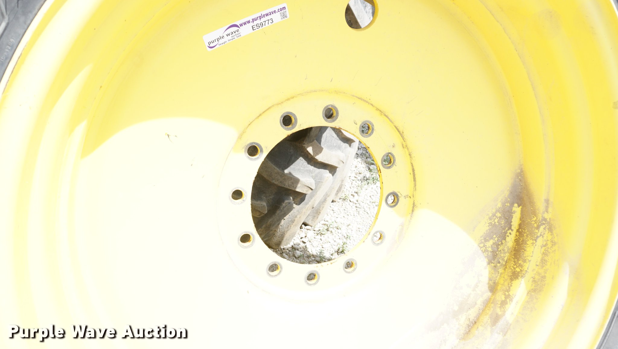 Purple Wave is selling a used Industrial Tires or Tracks in Missouri. This item is a (4) 650/65R38 flotation tires and wheels with the following: 12 hole wheels, 11 7/8" hub hole, Removed from John Deere R4038 sprayer