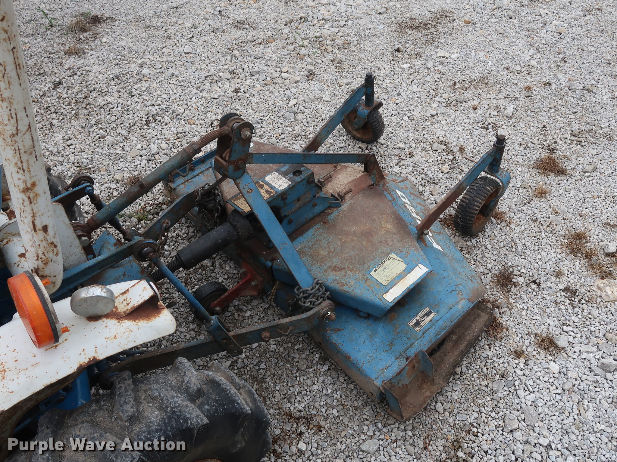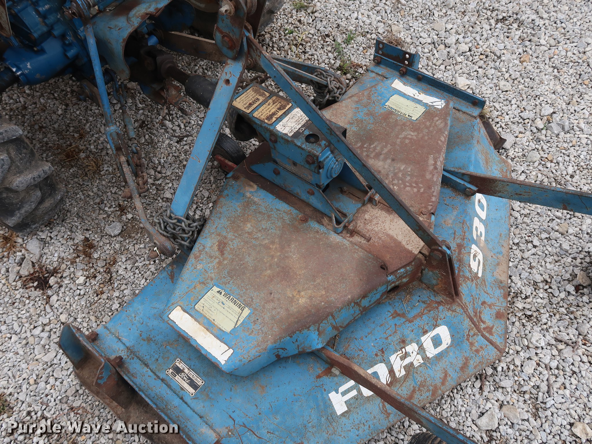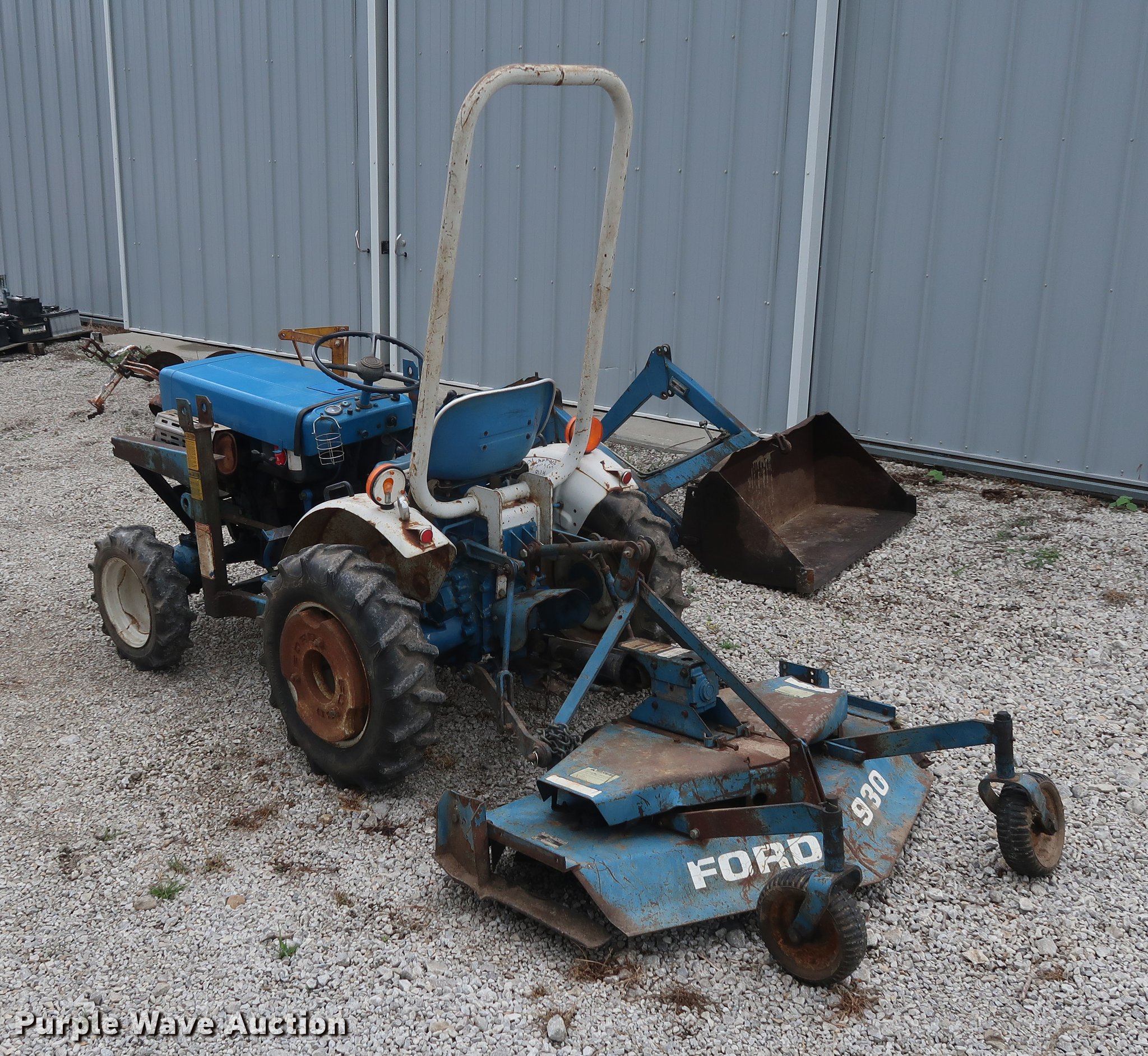 Purple Wave is selling a used Tractor in Missouri. This item is a Ford F1100 tractor with the following: Two cylinder diesel engine, Manual transmission, 5F-1R, Draw bar, 540 PTO, 7-16 rear tires, 5-12 front tires, Loader, 46"W bucket, Replacement cylinder included, 60"W blade, Three point, Single bottom plow, Ford 930 finish mower, 48"W