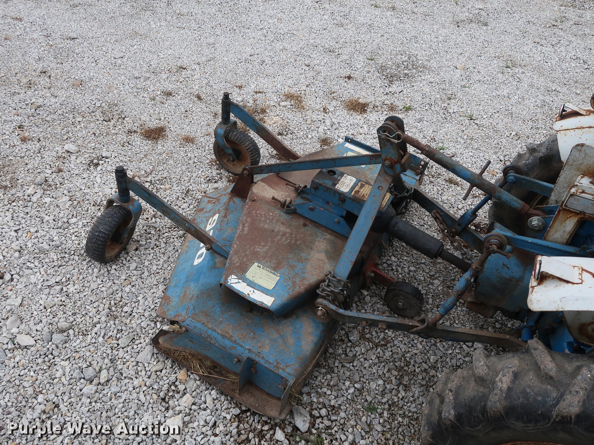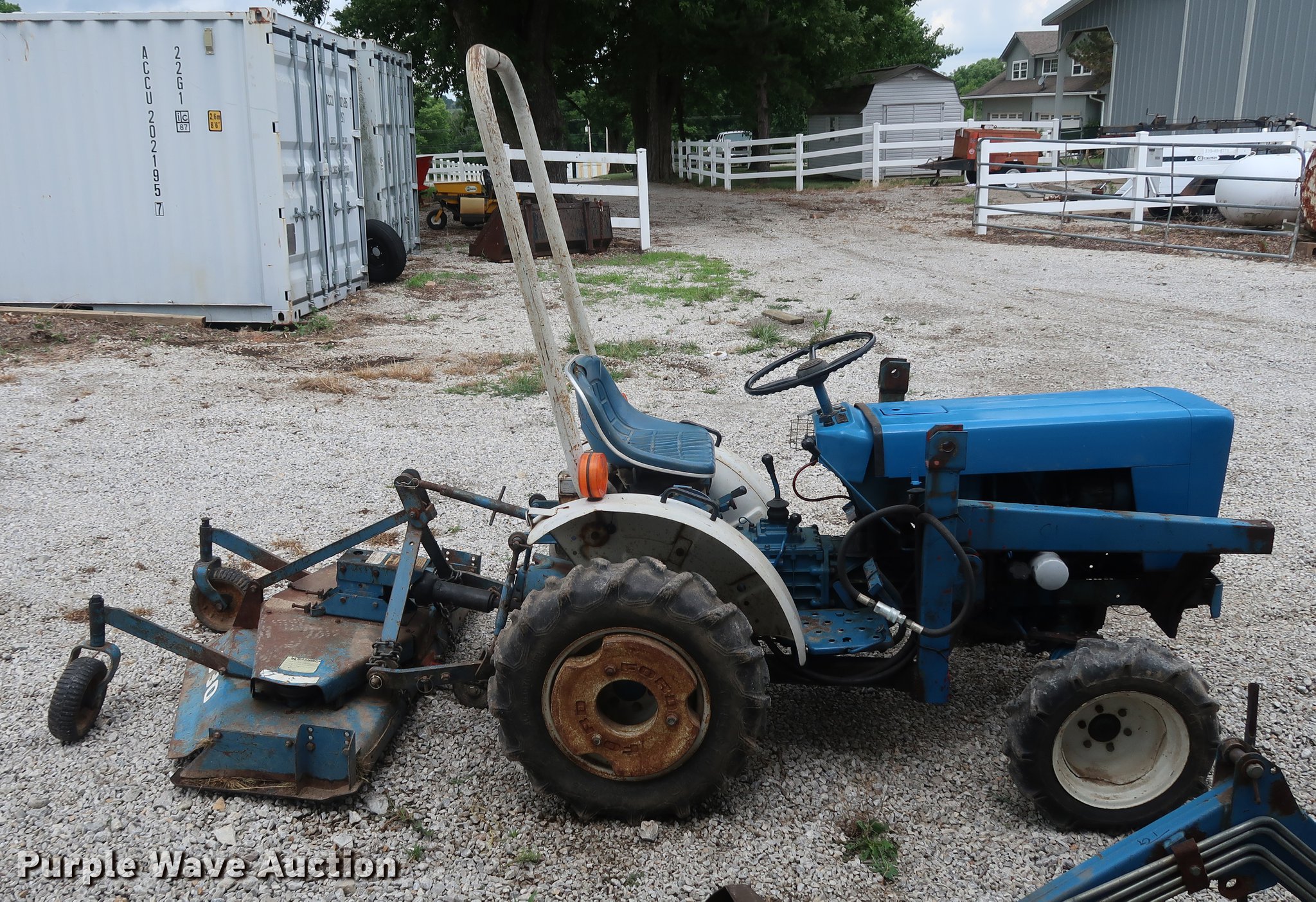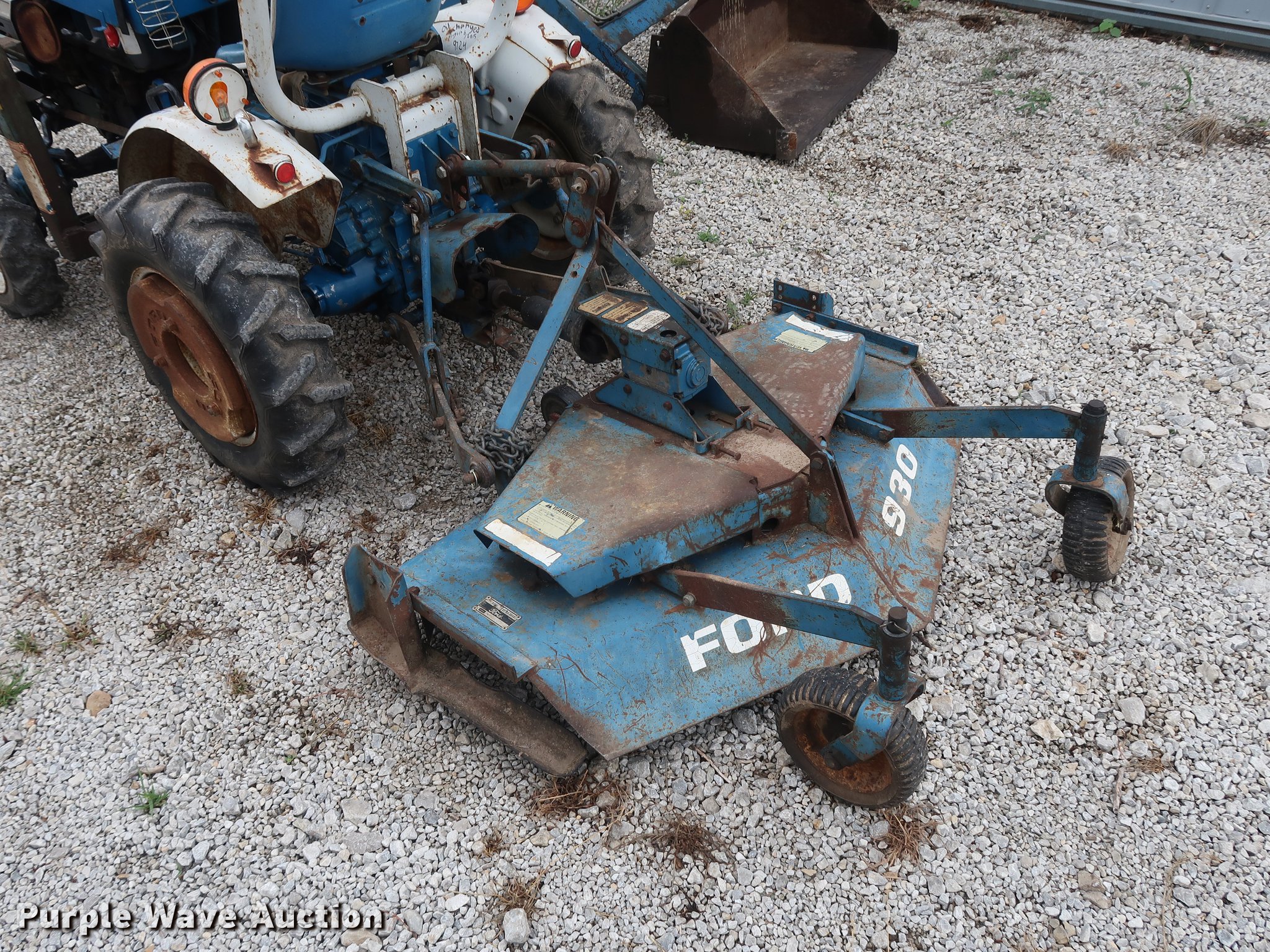 Purple Wave is selling a used Tractor in Missouri. This item is a Ford F1100 tractor with the following: Two cylinder diesel engine, Manual transmission, 5F-1R, Draw bar, 540 PTO, 7-16 rear tires, 5-12 front tires, Loader, 46"W bucket, Replacement cylinder included, 60"W blade, Three point, Single bottom plow, Ford 930 finish mower, 48"W
