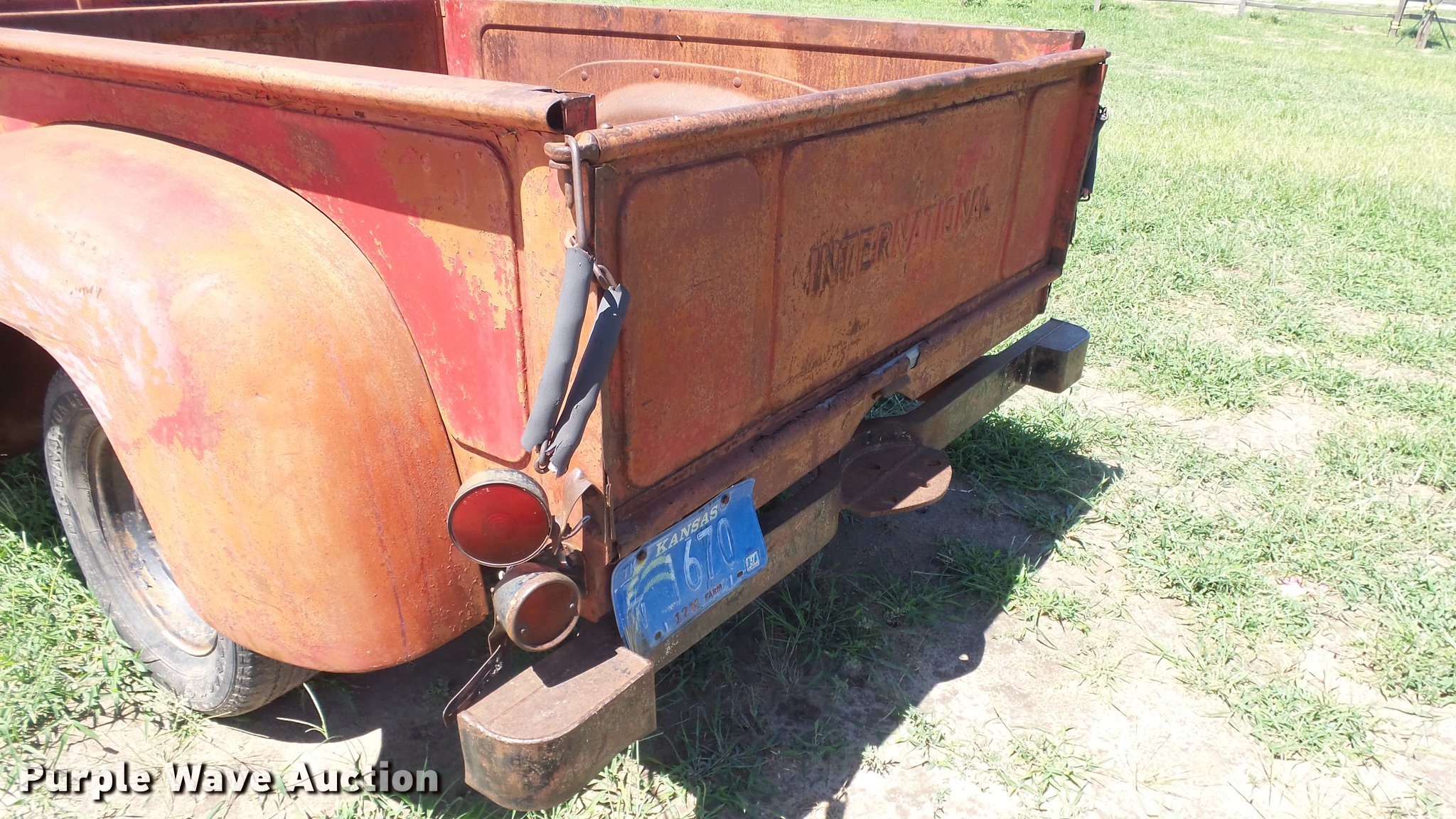 1952 International pickup truck. 49,041 miles on odometer, Six cylinder gas engine, Manual transmission, Manual windows and locks, Vinyl interior, 235/65R16 tires, Non-operational unit. Kansas antique title. Title distribution may be delayed up to 30 days from verification of funds. 1760847B. Inman, KS 67546