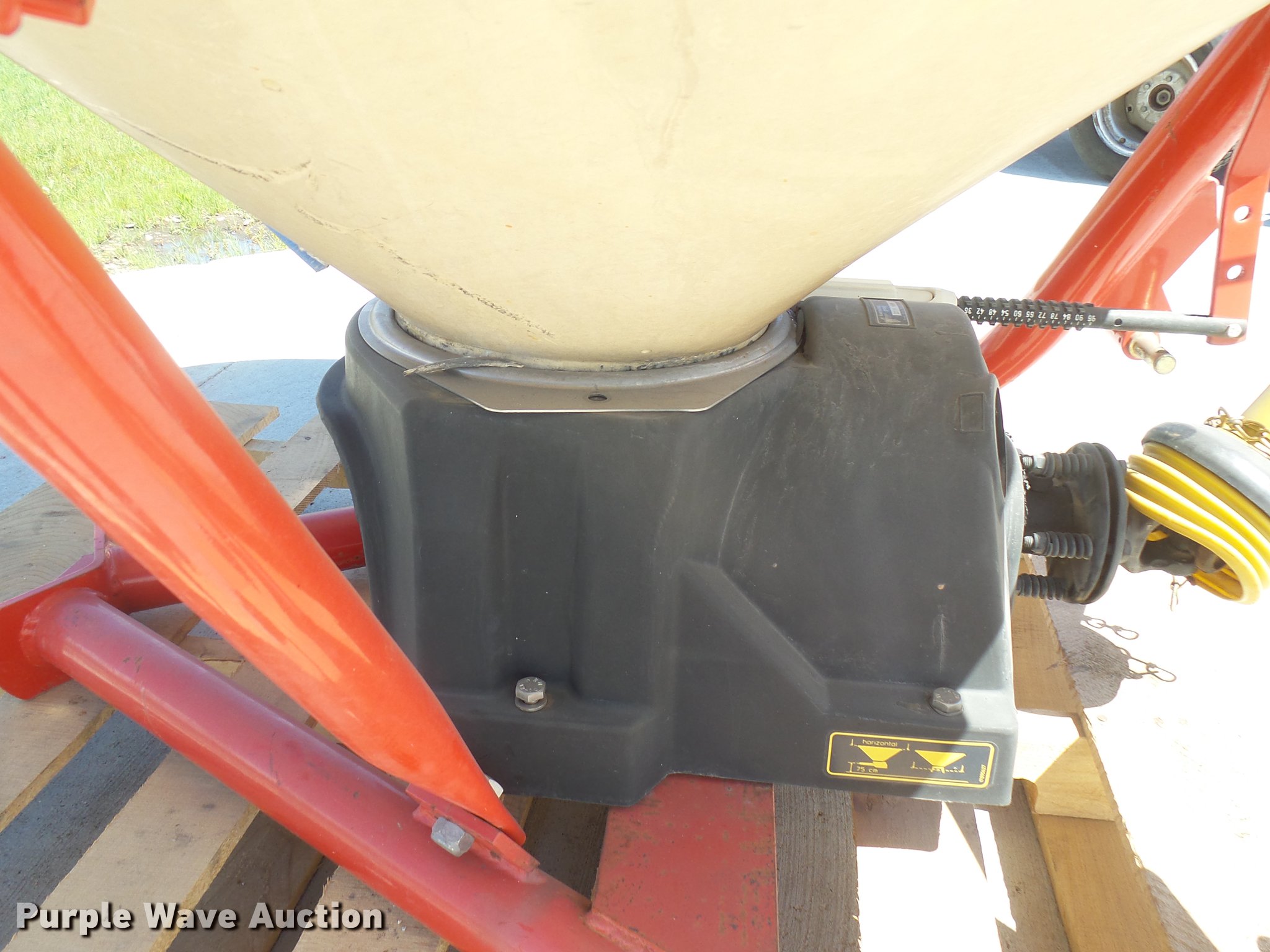 Purple Wave is selling a used Lawn and Garden in South Dakota. This item is a Vicon spreader with the following: 55"L x 43"W tub, Three point, Series 22119, Serial 146566