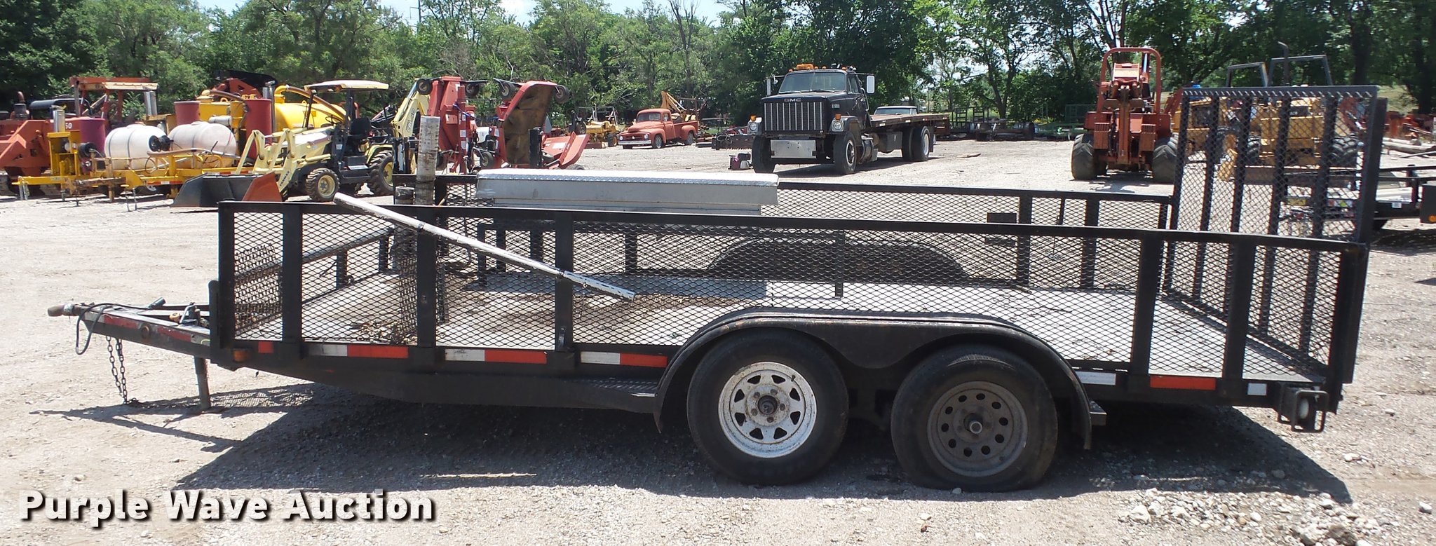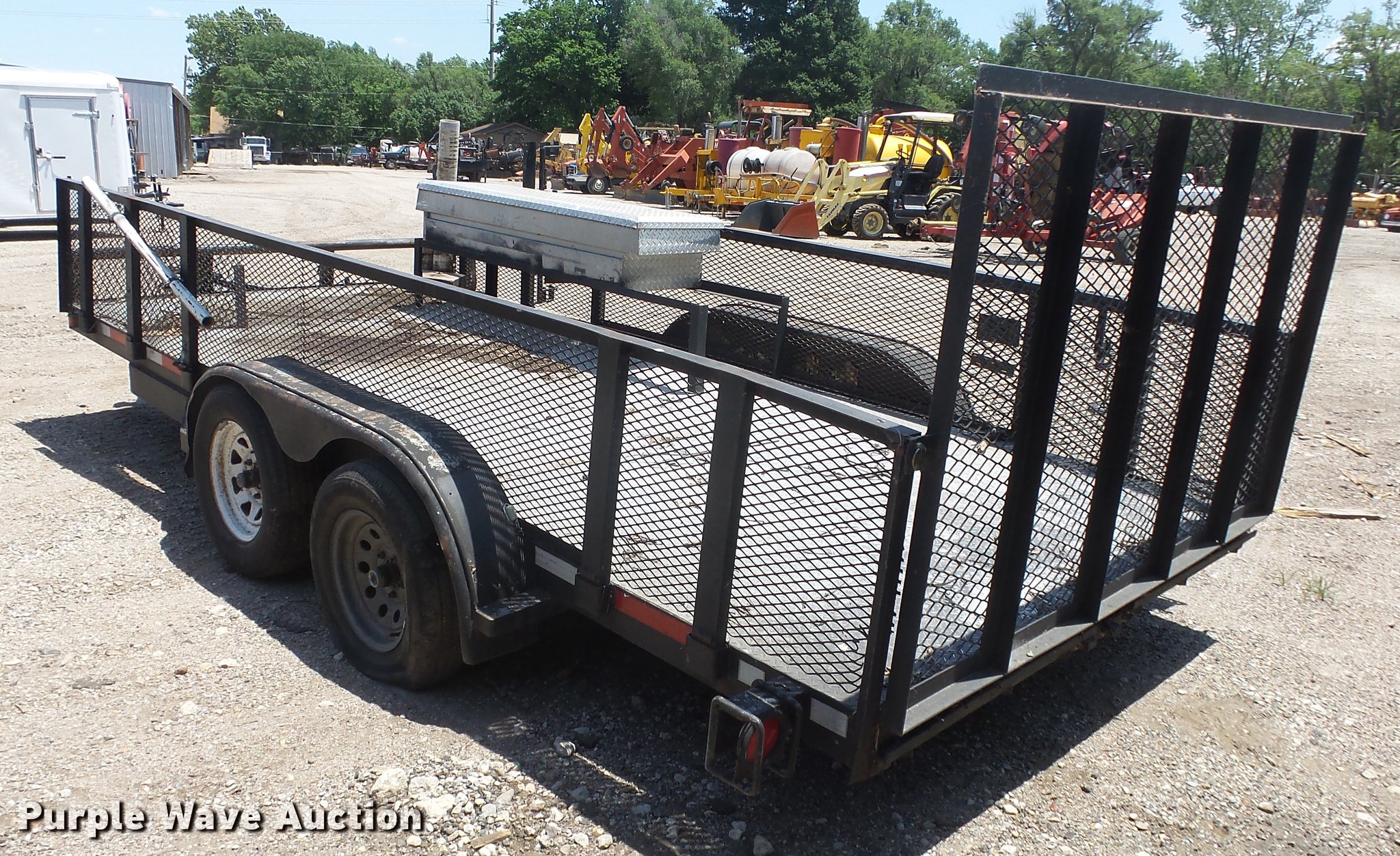 Purple Wave is selling a used Car or Utility Trailer in Kansas. This item is a 2001 ACT utility trailer with the following: 16'L x 7'W, 4'L ramp, Steel deck, Toolbox, Ball hitch, Spring suspension, Tandem axle, 205/75R15 tires