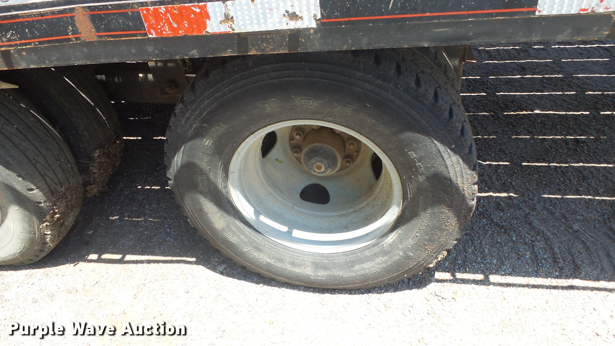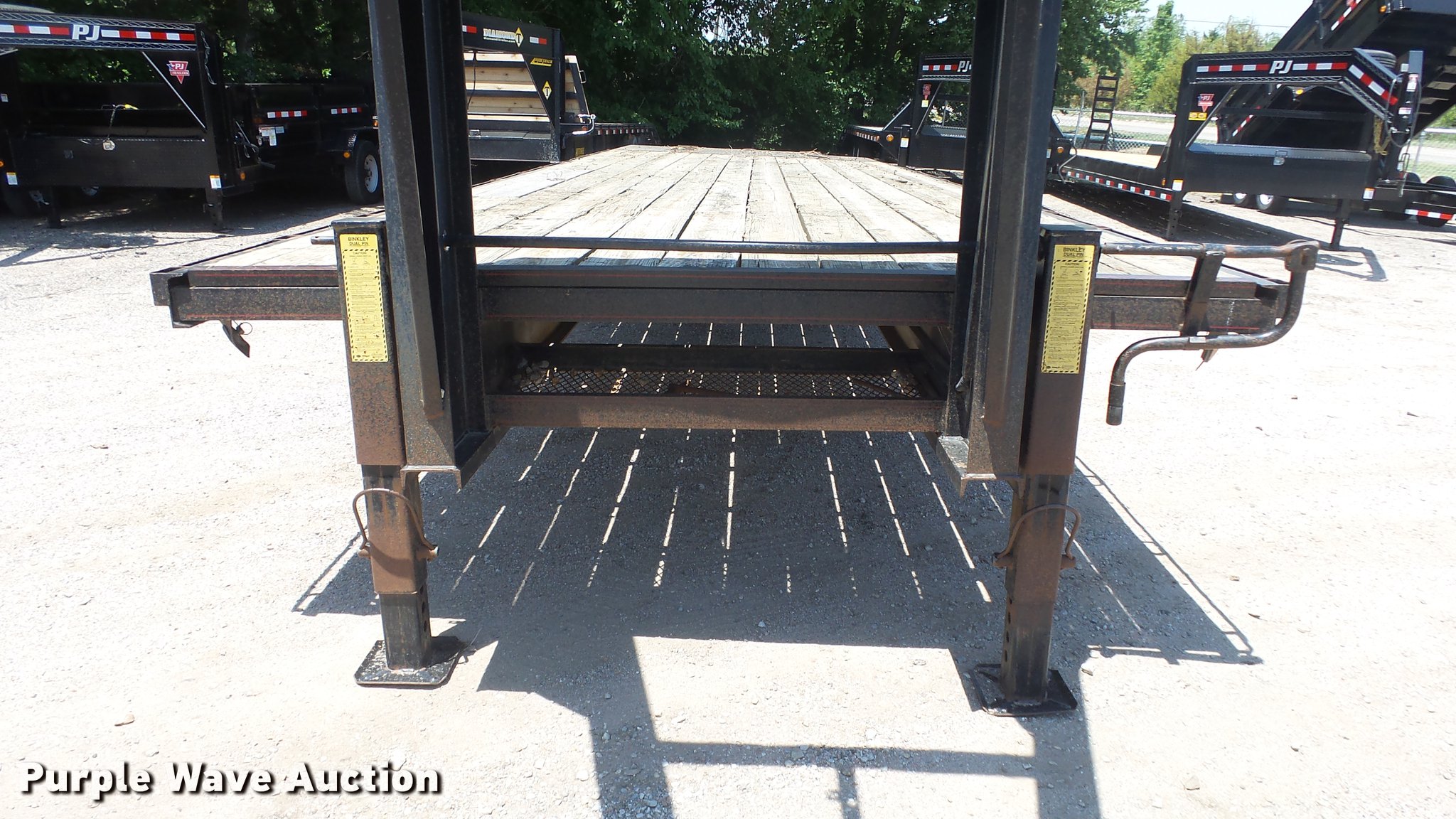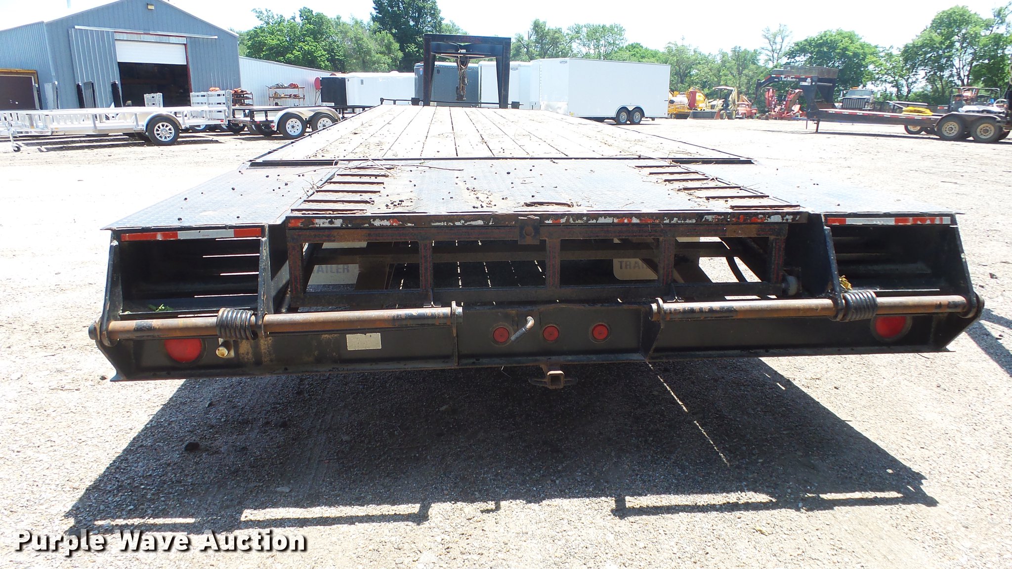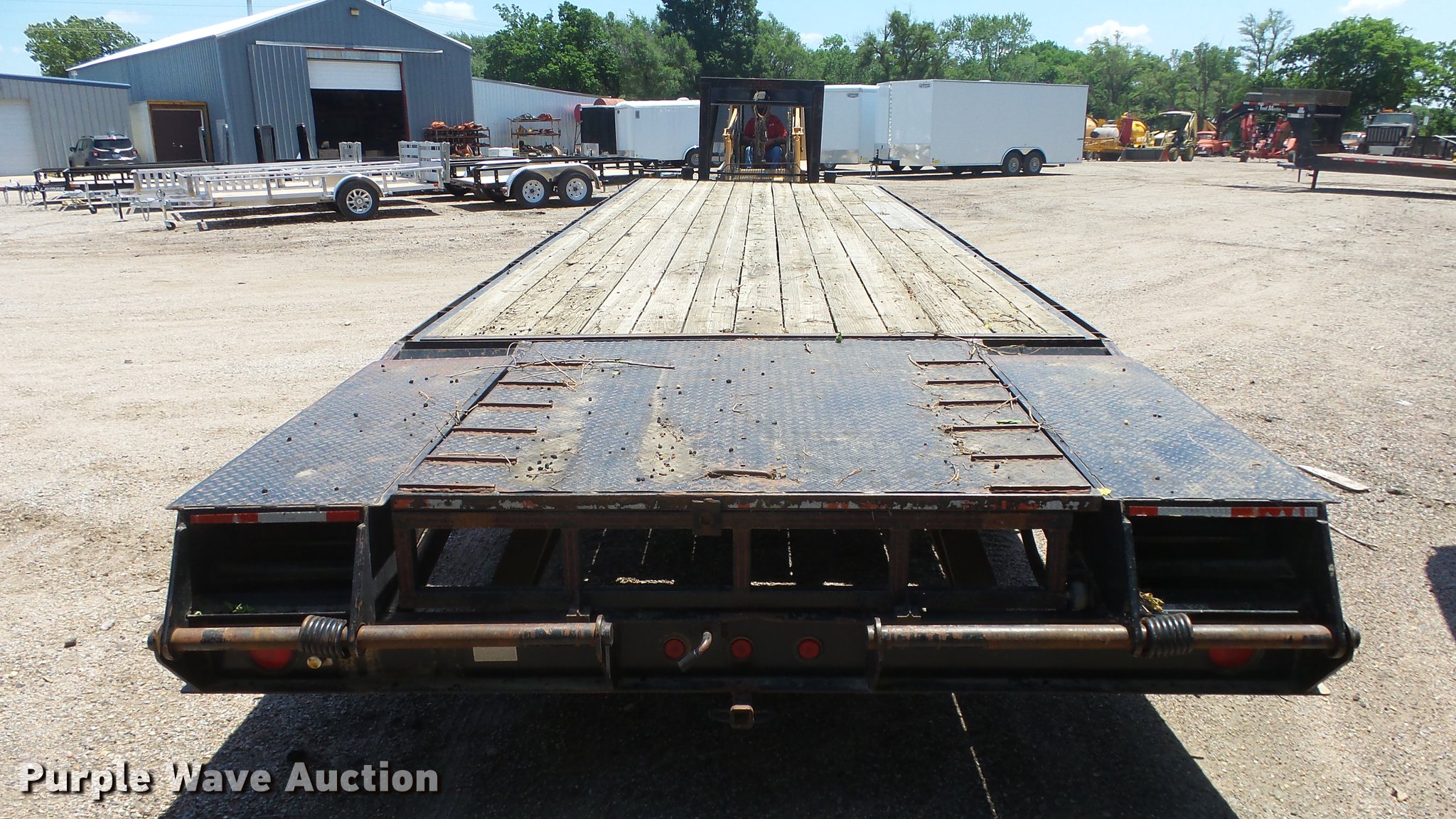 Purple Wave is selling a used Equip. Trailer in Kansas. This item is a 2003 Titan equipment trailer with the following: 29' overall length, 24'L x 102"W wood deck, 5'L dovetail, 5'L x 19"W ramps, Gooseneck hitch, Dual leg landing gear, Spring suspension, Tandem axle, 235/85R16 tires