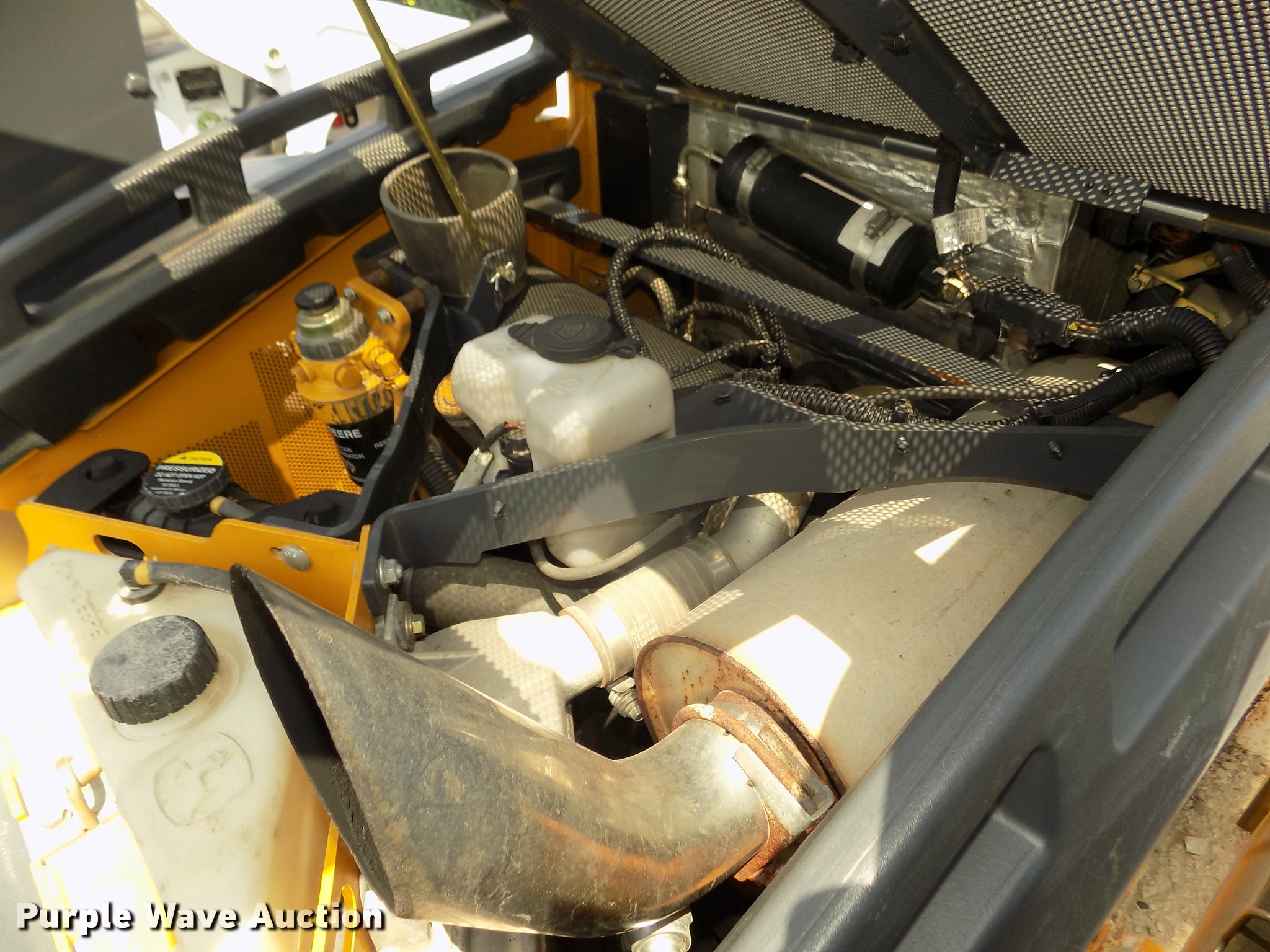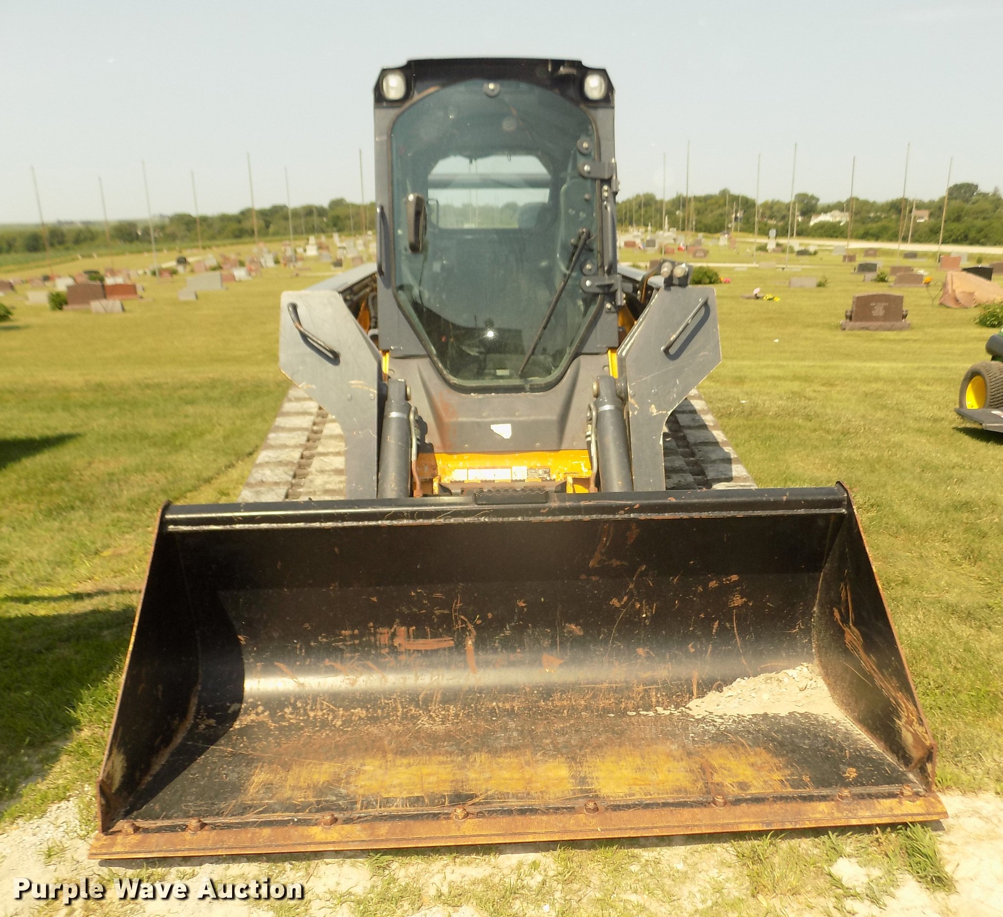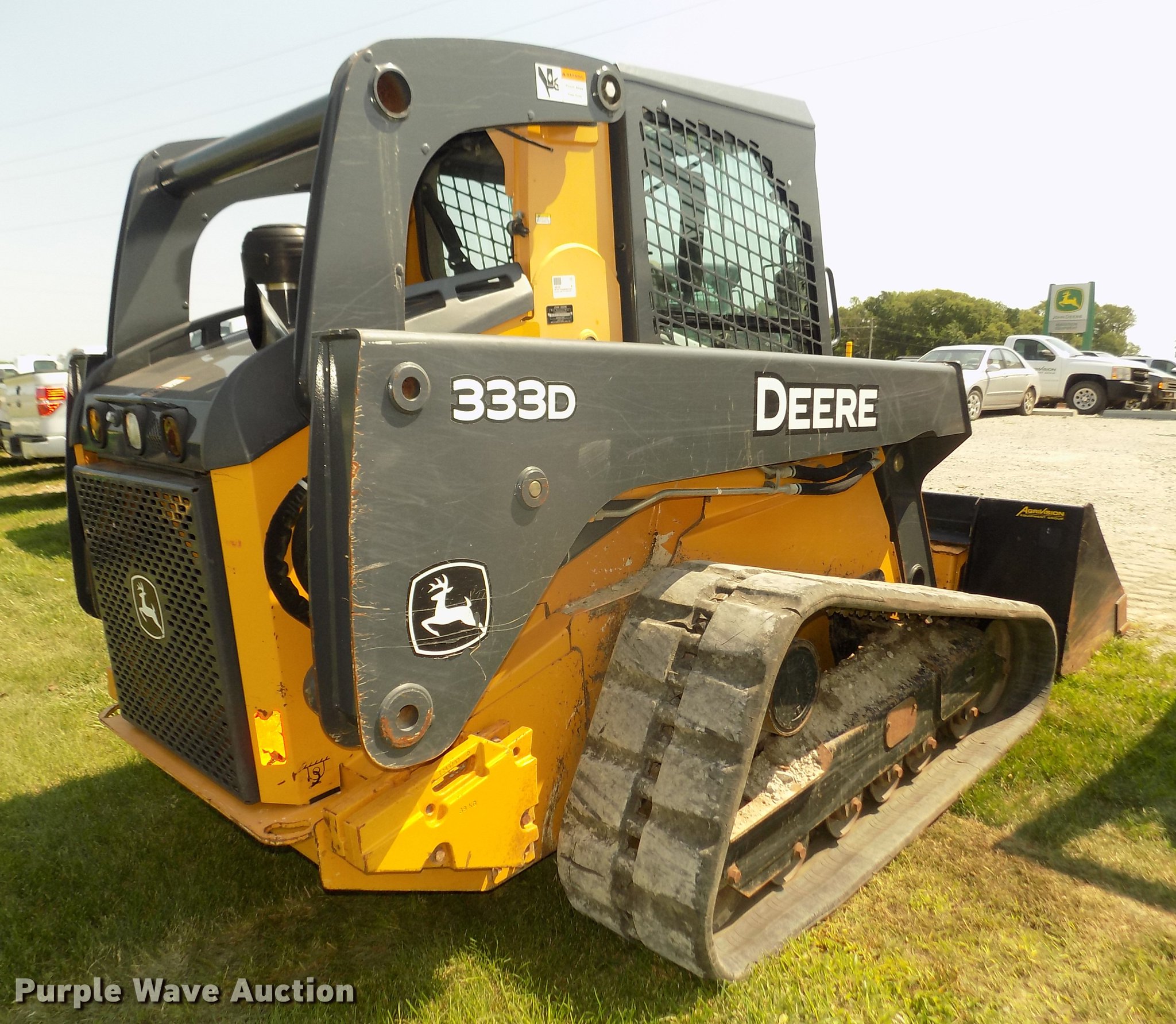 Purple Wave is selling a used Tracked Skid Steer Loader in Iowa. This item is a 2012 John Deere 333D skid steer with the following: 1,267 hours on meter, John Deere four cylinder diesel engine, Hydrostatic transmission, Enclosed cab, AC and heat, AM/FM, Hand and foot controls, Spring suspension seat, Wipers, Front and rear work lights, Block heater, John Deere Work Site Pro 78"W bucket, Bolt-on cutting edge, Hydraulic quick coupler, Auxiliary hydraulics, Counter weights, 18"W tracks, Serial 1T0333DBCBD215322