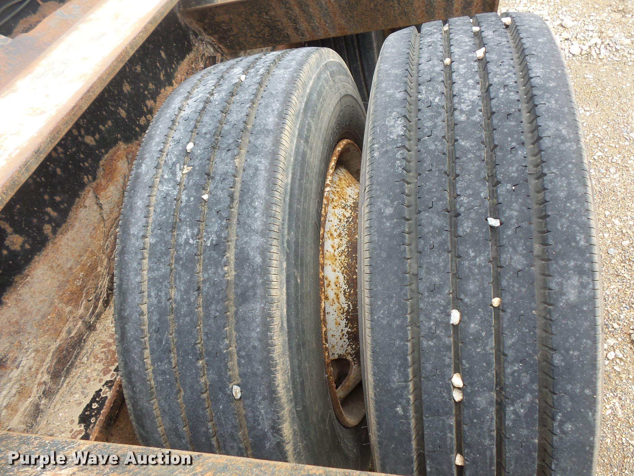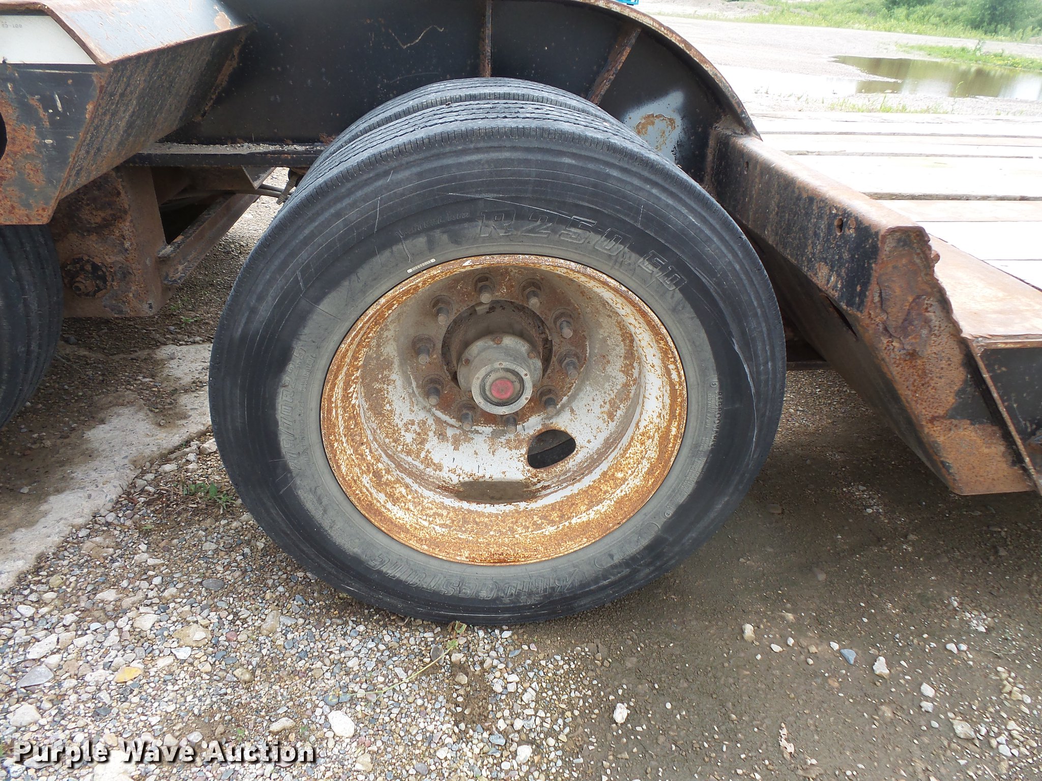 Purple Wave is selling a used Equip. Trailer in Minnesota. This item is a 2001 Fontaine drop deck equipment trailer with the following: 53' x 102"W overall length, 13'L neck, 27'L well length, 13'L rear deck, 28" floor height, 12" swing-out outriggers, Wood deck, D-ring tie downs, Detachable neck, Manual hydraulic controls, Fifth wheel plate, Air suspension, Air brakes, Tandem axle, Air lift pusher axle, Steel wheels, 275/70R22.5 tires