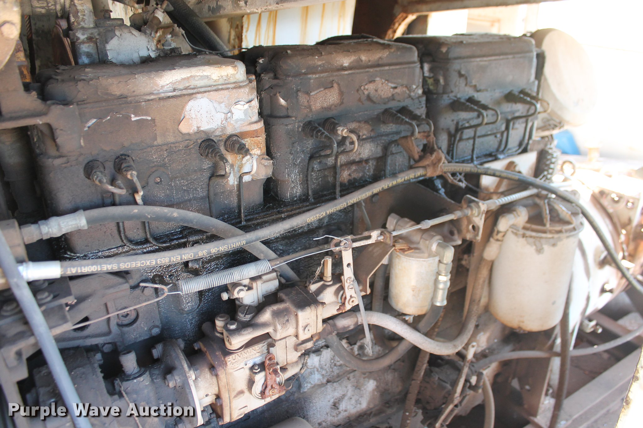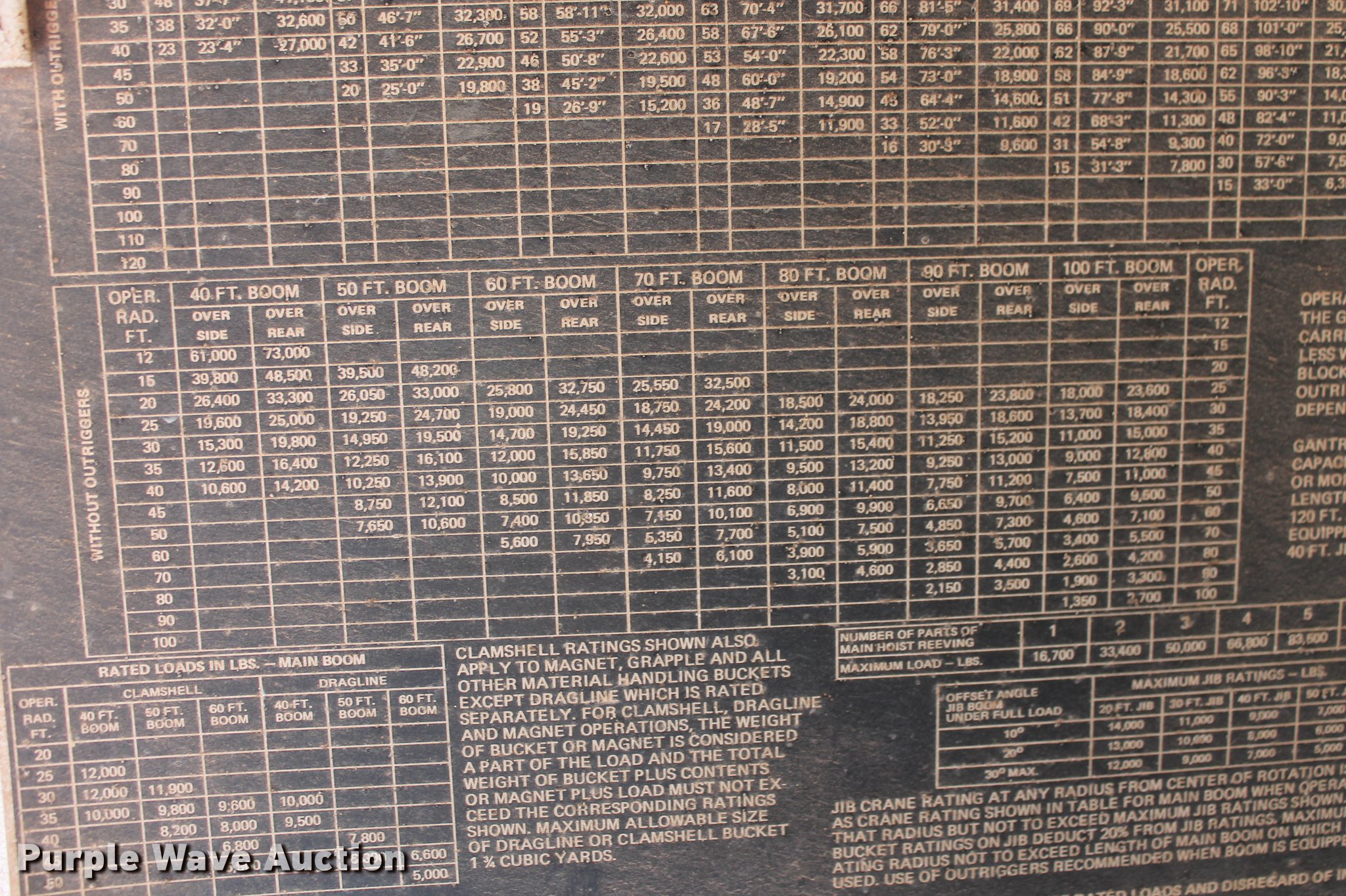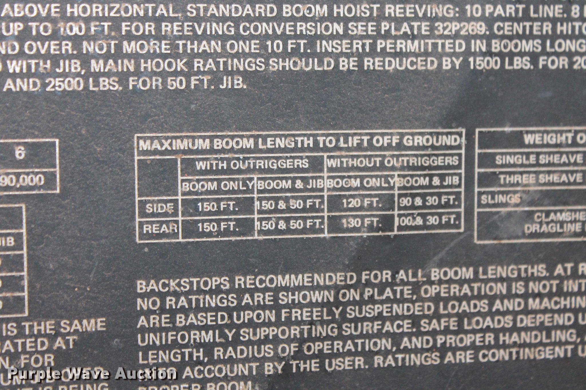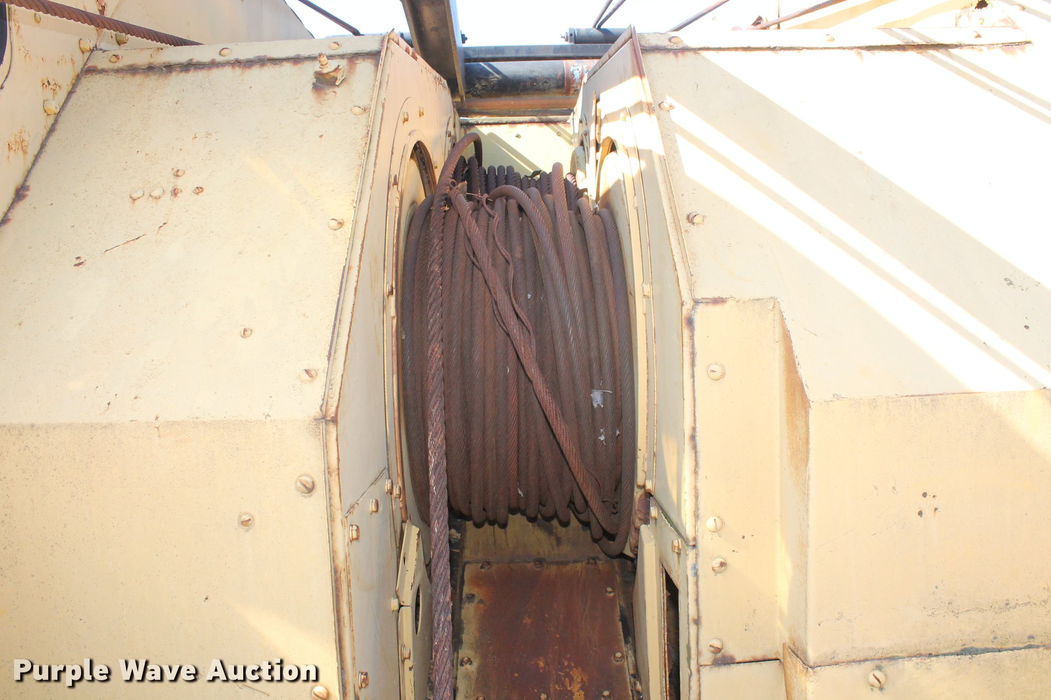 Purple Wave is selling a used Truck Crane in Oklahoma. This item is a 1969 P & H 645TC crane with the following: 2,550 miles on odometer, Cummins six cylinder diesel upper engine, Cummins six cylinder diesel lower engine, Five speed manual transmission, Four speed auxiliary transmission, Tandem axle, (4) axles, (8) drive wheels, (4) steering wheels, Stick crane controls, 120'L lattice boom, 30'L jib, Four boom sections, 90,000 lbs maximum lift capacity, (2) winches, In-cab boom controls, (4) stabilizers, 282" wheelbase, Spring suspension, Air brakes, 14.00R20 tires