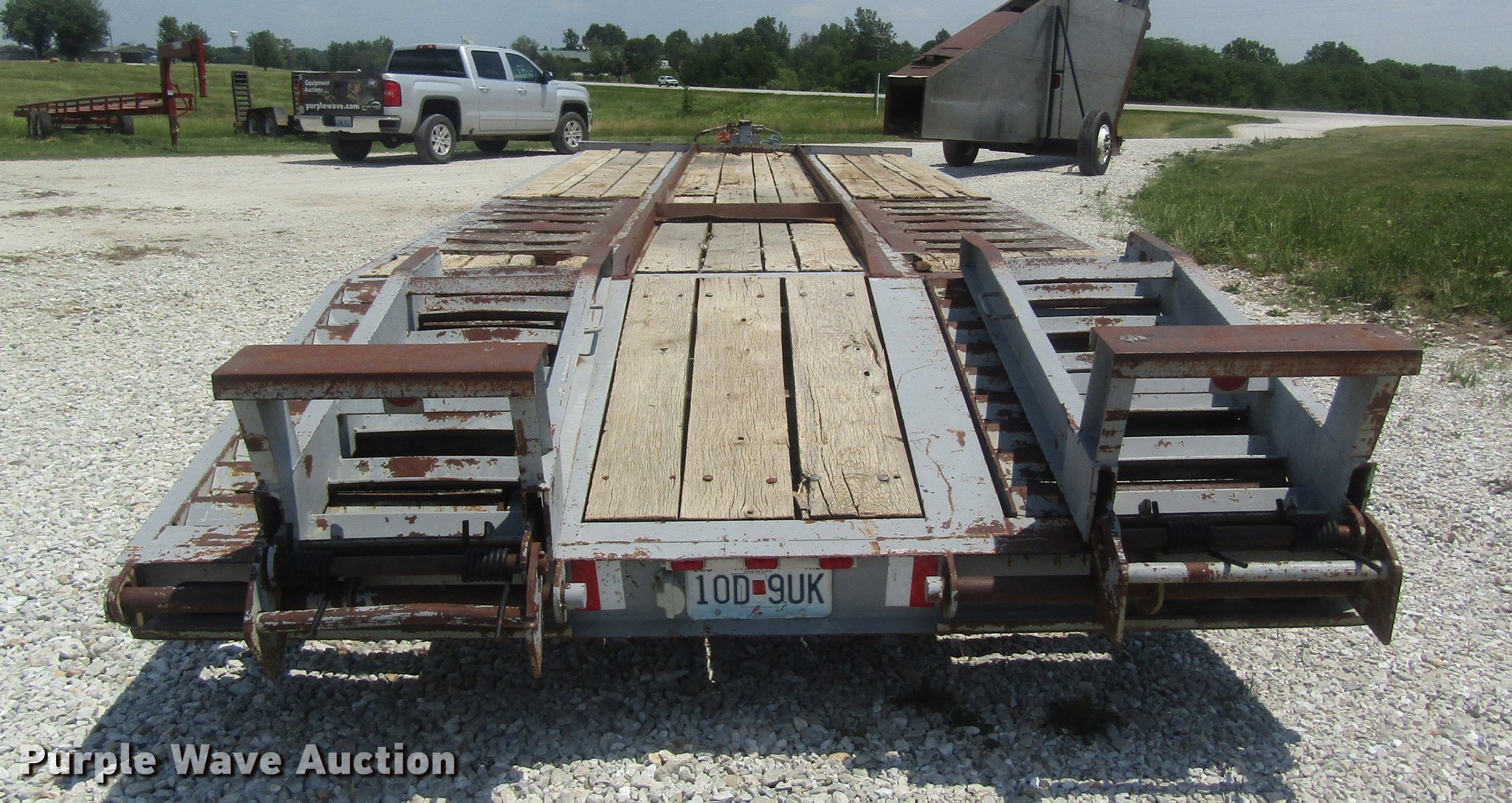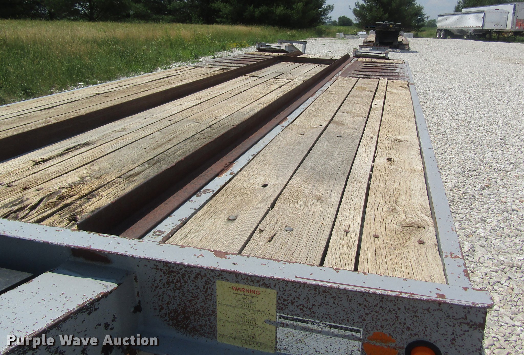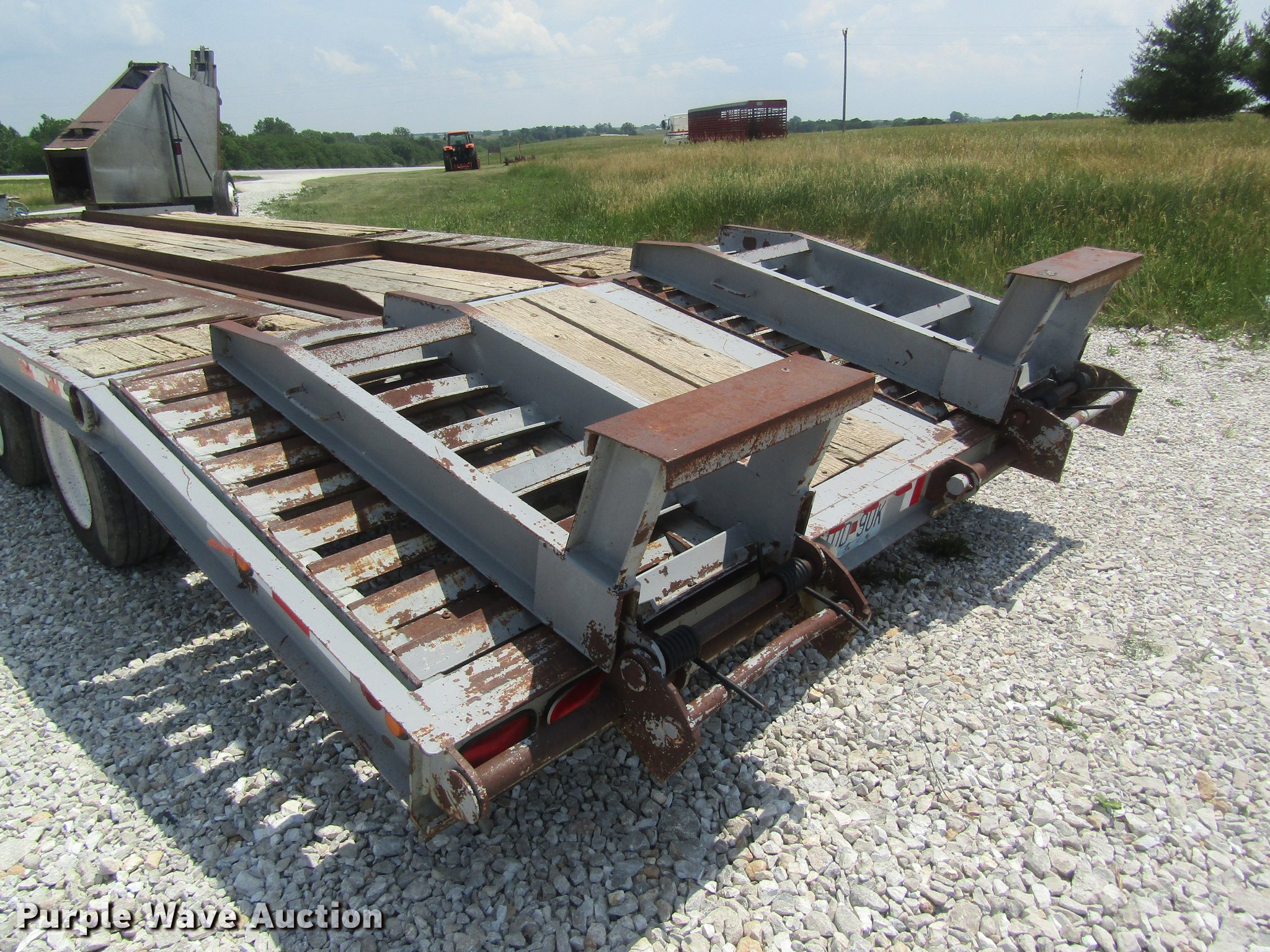Purple Wave is selling a used Equip. Trailer in Missouri. This item is a 2002 American equipment trailer with the following: 30' overall length, 20'L x 102"W deck, 5'L beavertail, 5'L ramps, Pintle hitch, Single leg landing gear, Spring suspension, Air brakes, Tandem axle, Steel wheels, 215/75R17.5 tires