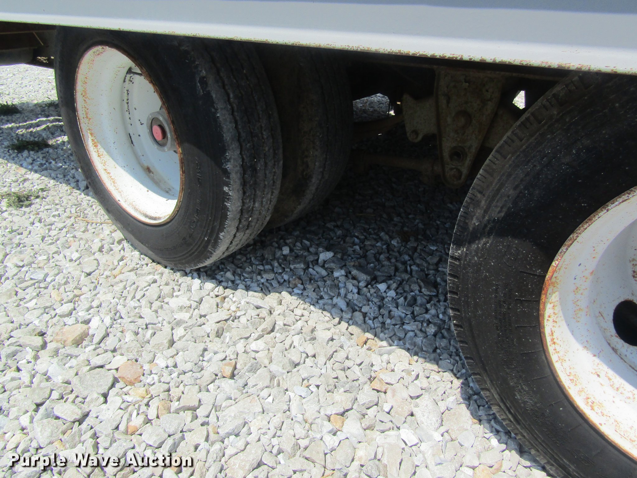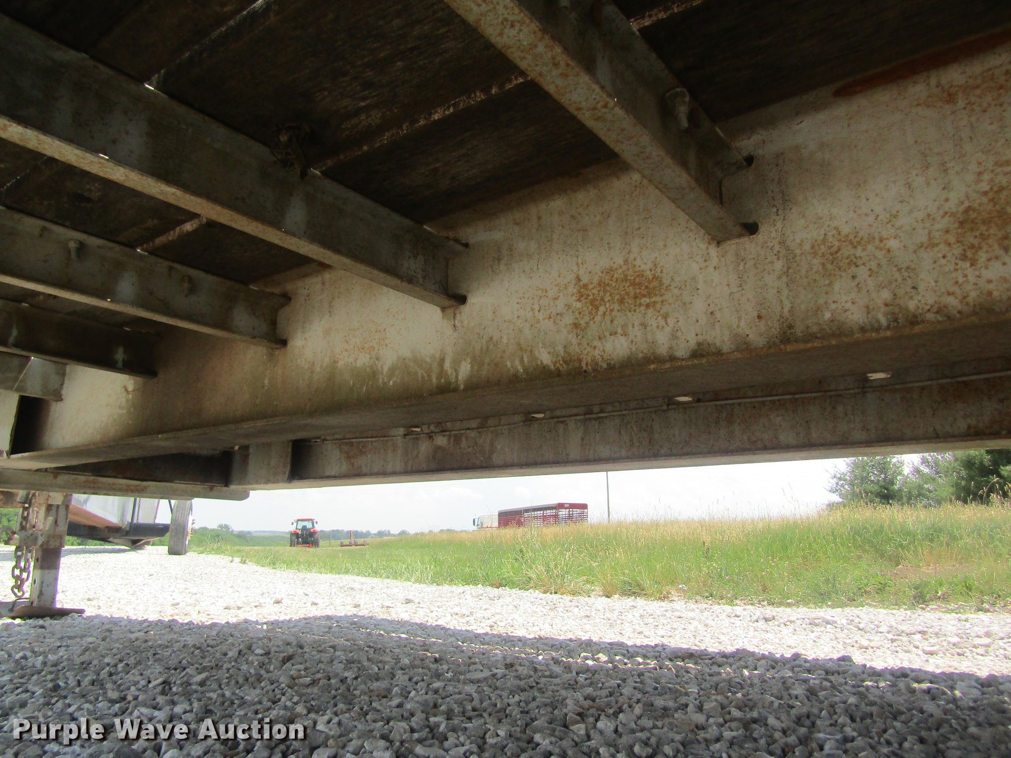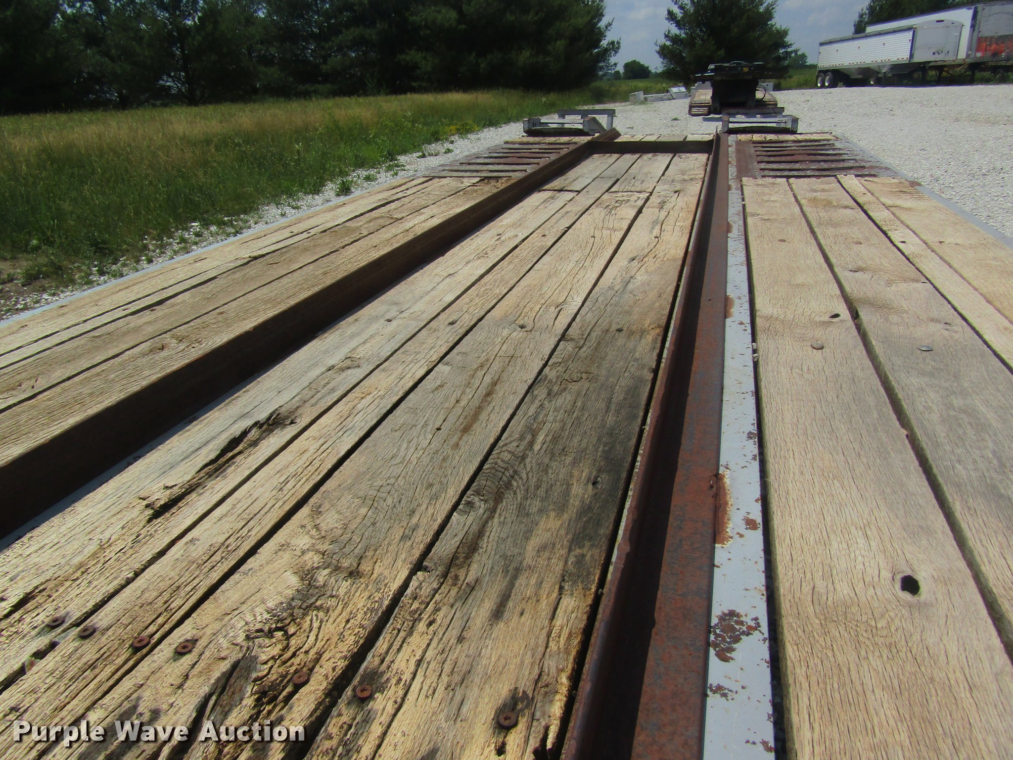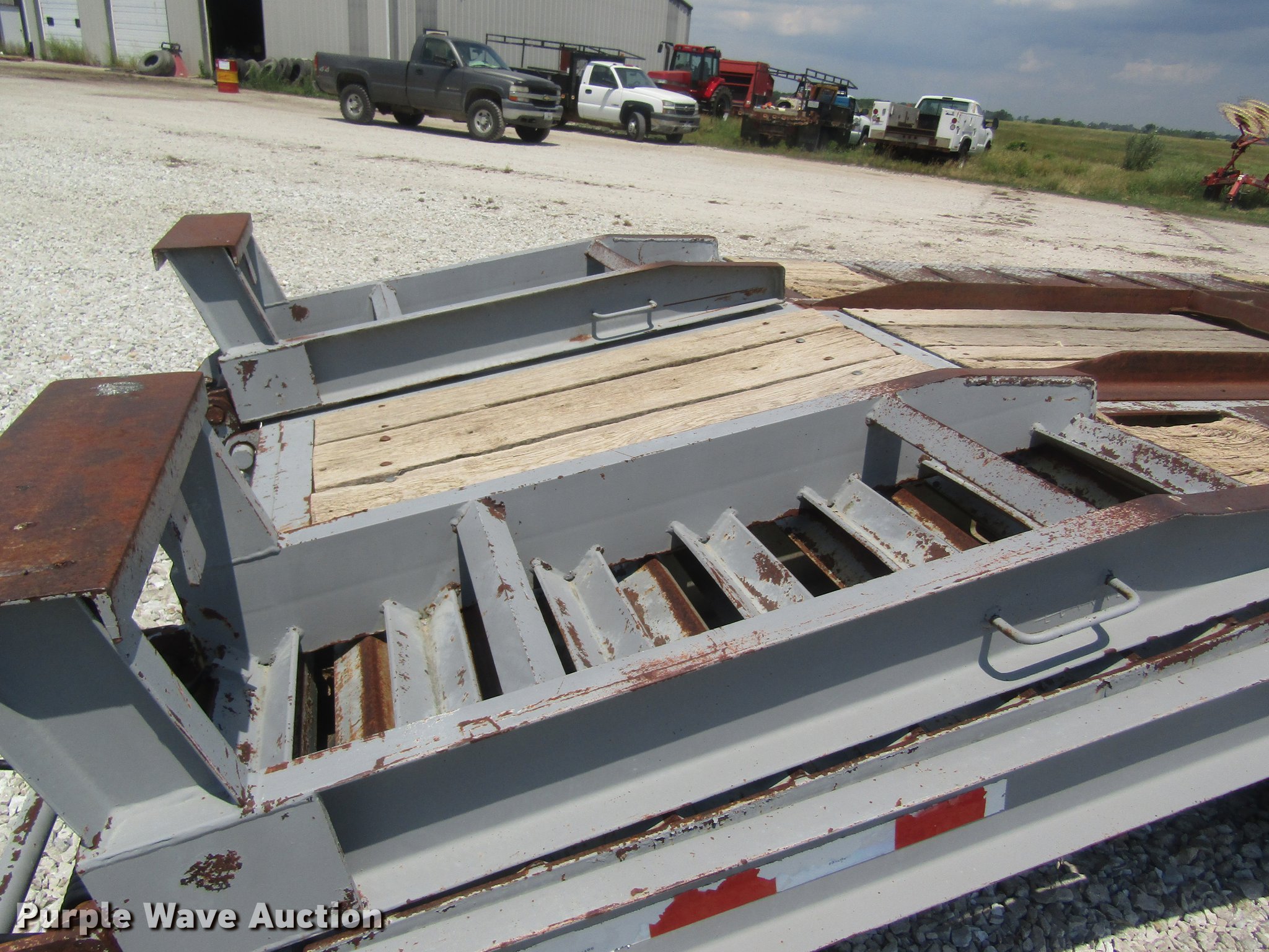 Purple Wave is selling a used Equip. Trailer in Missouri. This item is a 2002 American equipment trailer with the following: 30' overall length, 20'L x 102"W deck, 5'L beavertail, 5'L ramps, Pintle hitch, Single leg landing gear, Spring suspension, Air brakes, Tandem axle, Steel wheels, 215/75R17.5 tires