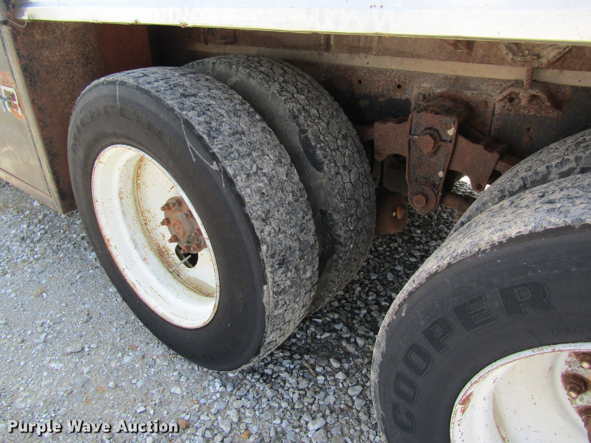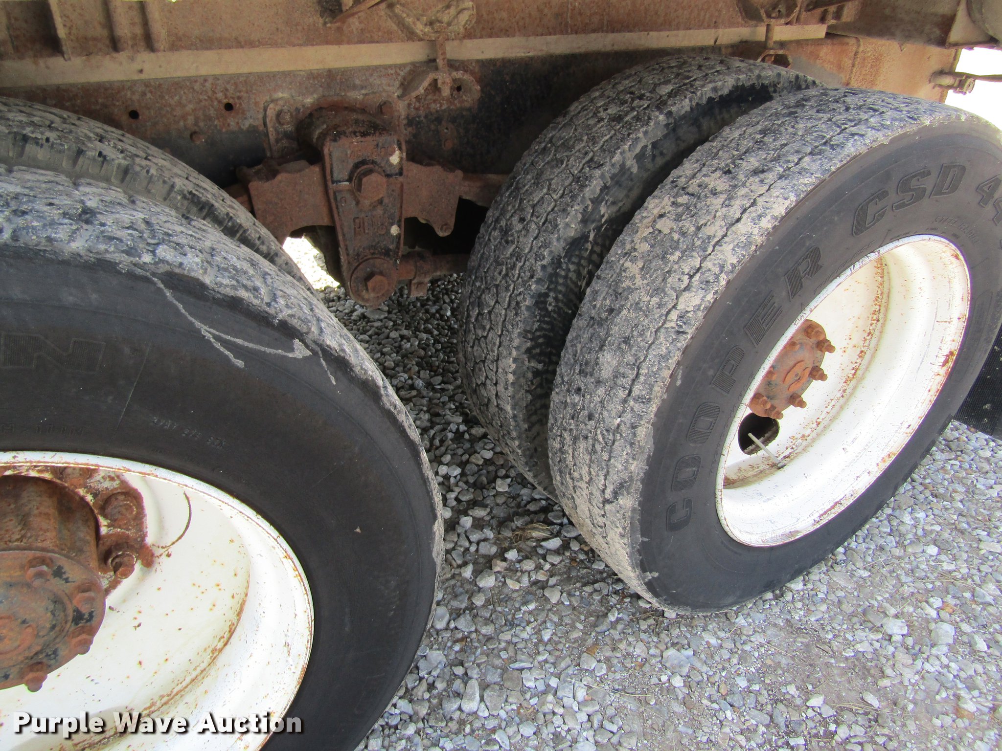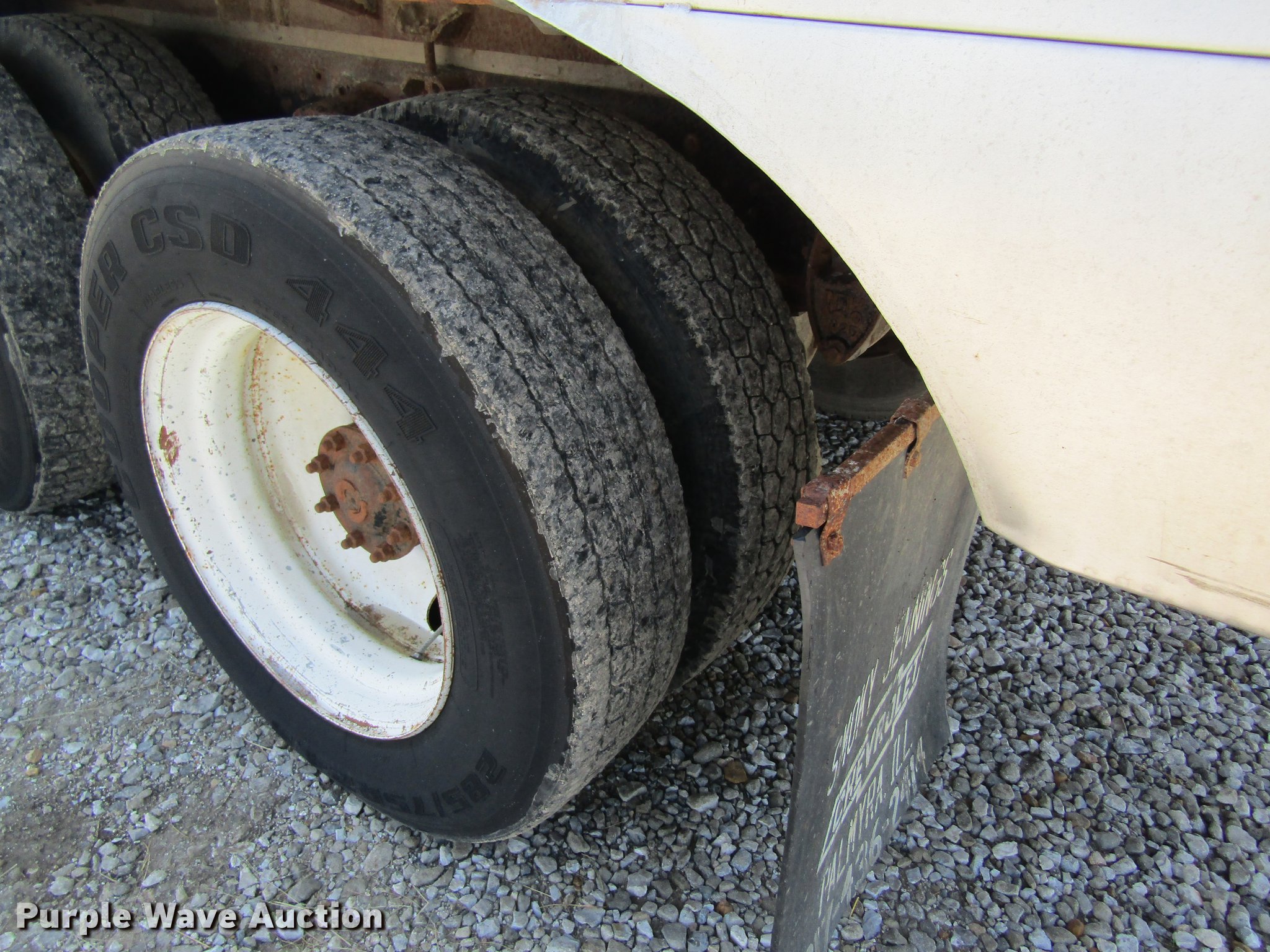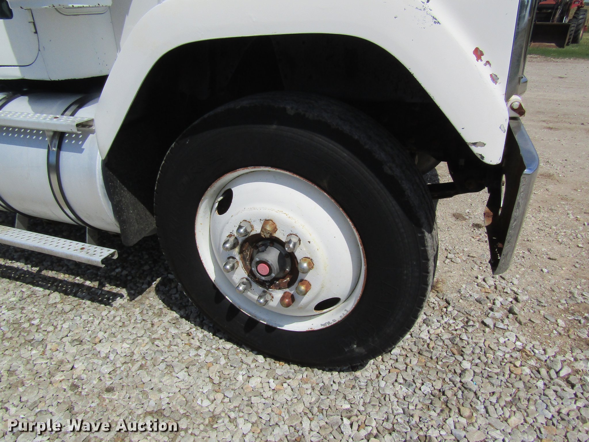 1986 GMC General tank truck. 352,487 miles on odometer, Cummins NTC 14.0L L6 turbo diesel engine, Eaton Fuller nine manual transmission, Tandem axle, Heat, Air suspension, 15'L tank 2,200 gallon capacity, Rear hose reel, Rear discharge, Top fill, Toolbox, Ladder, Dual fuel tanks, Single exhaust stack, Pintle hitch, Trailer wiring, Spring suspension, Air brakes, 285/75R24.5 tires, GVWR 49,000 lbs. Missouri title. 1GDT9F4C7GV510316. C & M Contractors. 15790 State Hwy 63. Lancaster, MO 63548