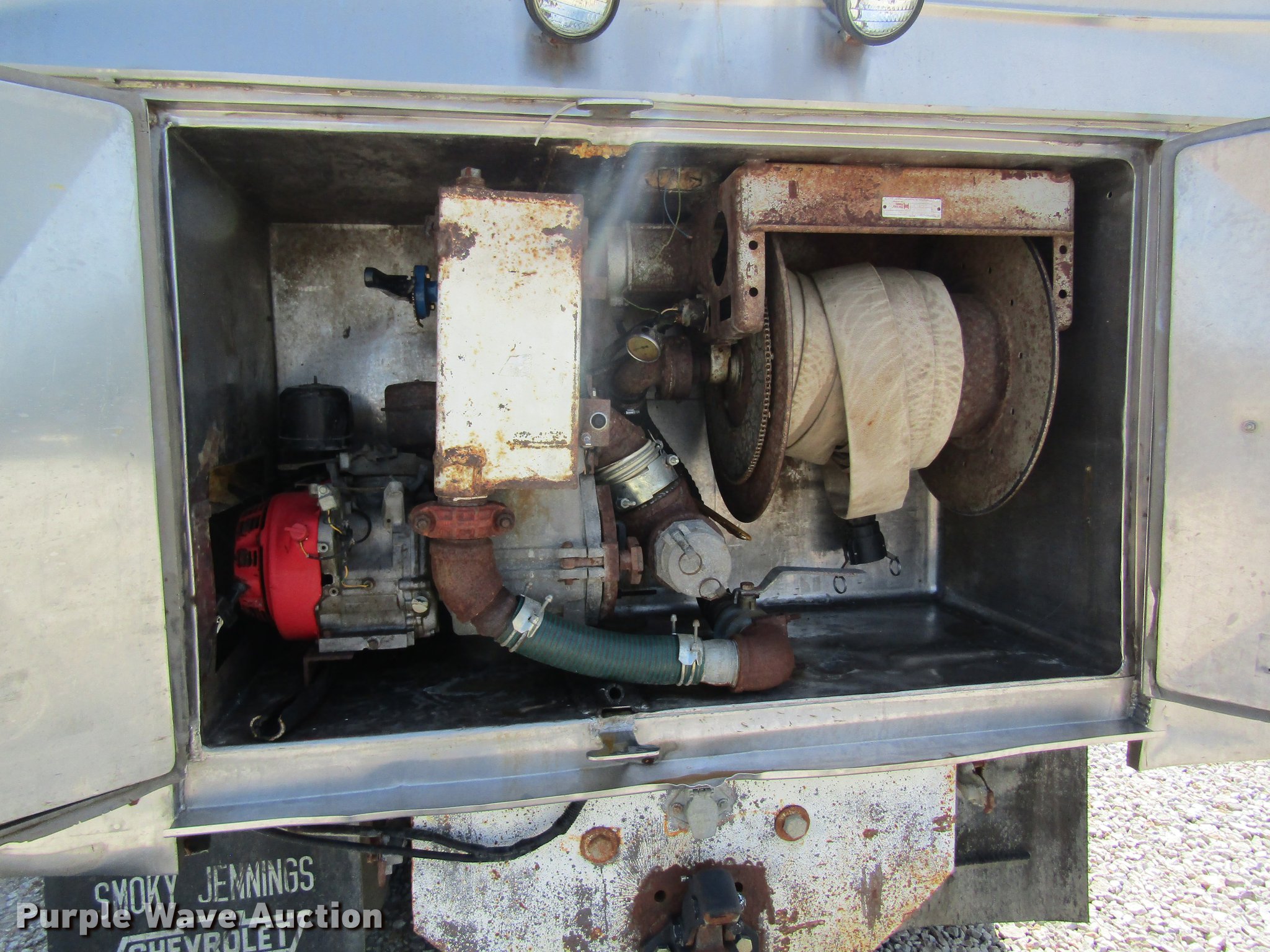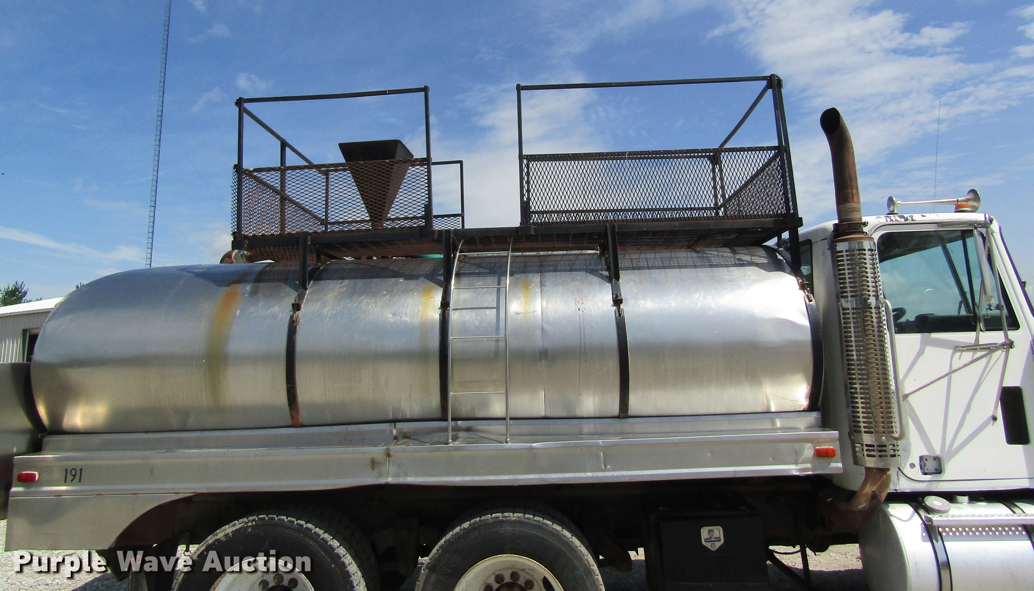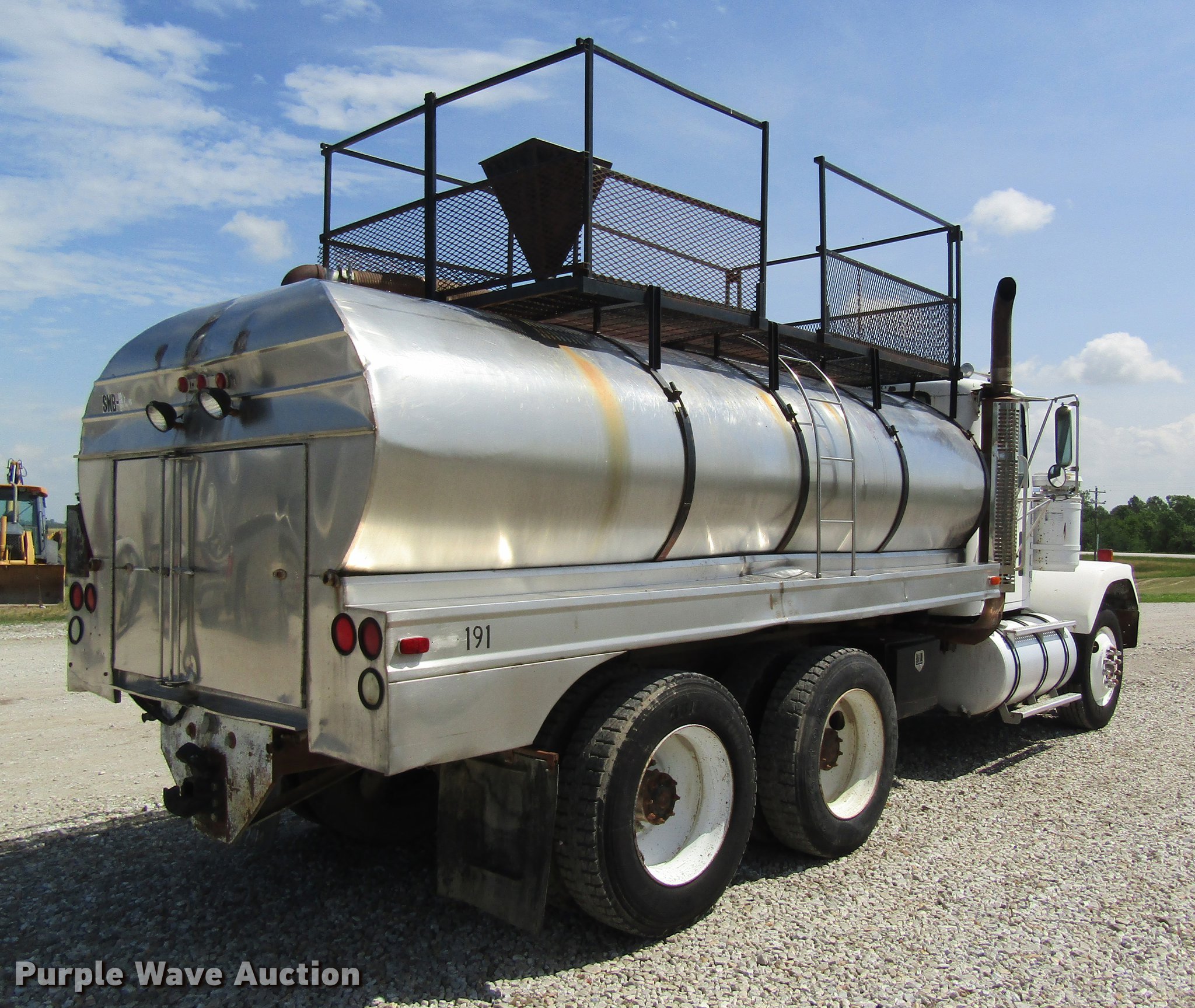 Purple Wave is selling a used Tank Truck or Water Truck in Missouri. This item is a 1986 GMC General tank truck with the following: 352,487 miles on odometer, Cummins NTC 14.0L L6 turbo diesel engine, Eaton Fuller nine manual transmission, Tandem axle, Heat, Air suspension, 15'L tank, 2,200 gallon capacity, Rear hose reel, Rear discharge, Top fill, Toolbox, Ladder, Dual fuel tanks, Single exhaust stack, Pintle hitch, Trailer wiring, Spring suspension, Air brakes, 285/75R24.5 tires, GVWR 49,000 lbs