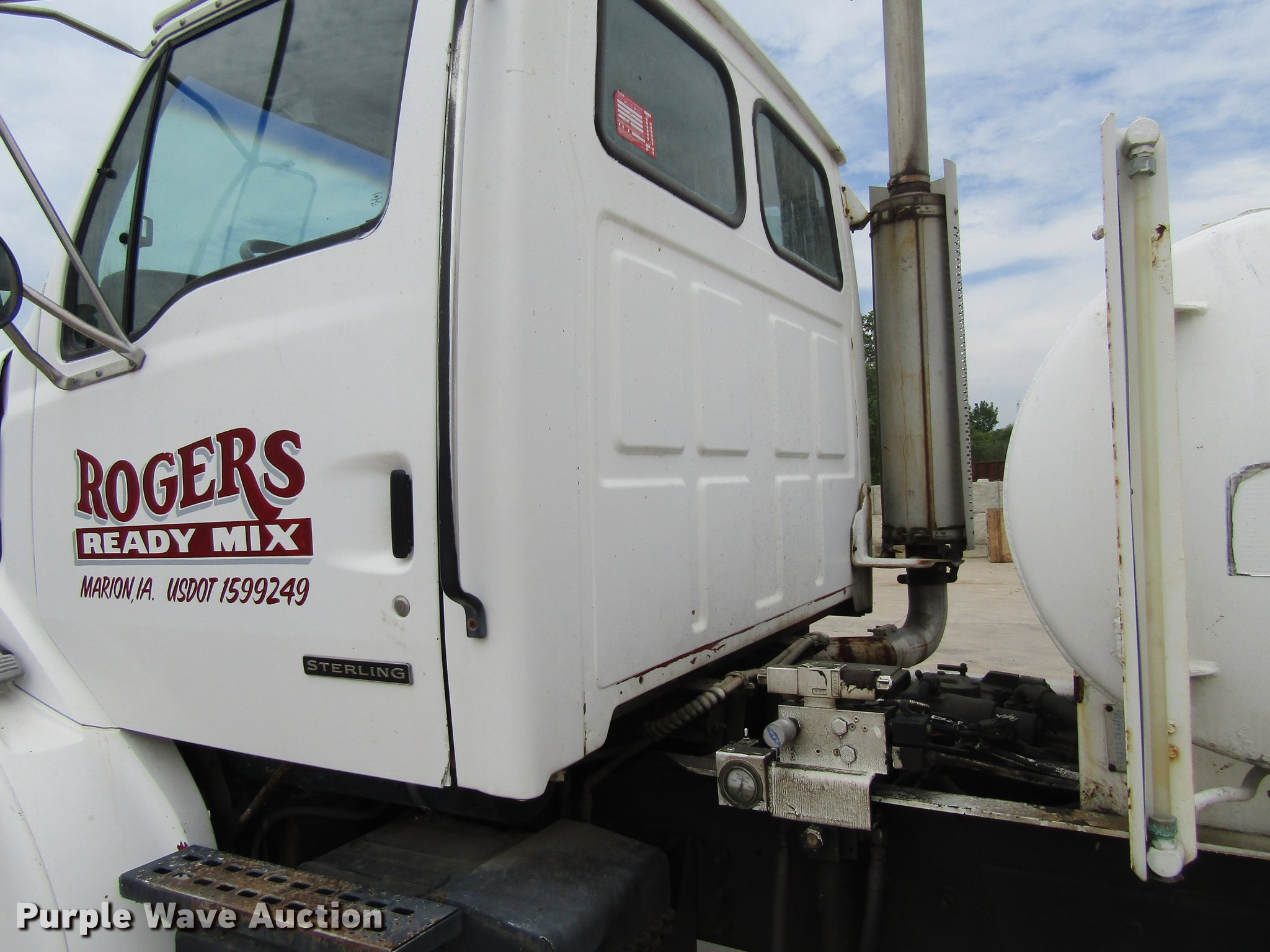 2000 Sterling L9500 ready mix truck. 182,917 miles on odometer, Cummins ISM 10.8L L6 diesel engine, Eight speed manual transmission, Tandem axle, Heat, Air suspension seat, 11 cu. yd. mixer Chute extension, 150 gallon water tank, Ladder, Rear discharge, Air suspension, Air brakes, 425/65R22.5 front tires, 11R22.5 rear tires, GVWR 80,000 lbs. Iowa title. 2FZNEMCB4YAF60444. Rogers Concrete. 3790 3rd Ave. Marion, IA 52302