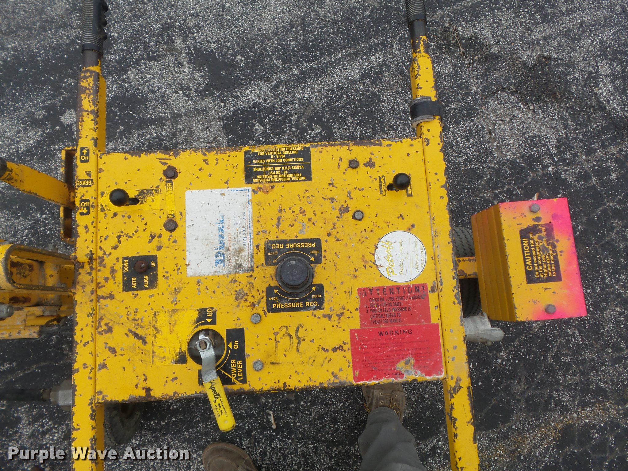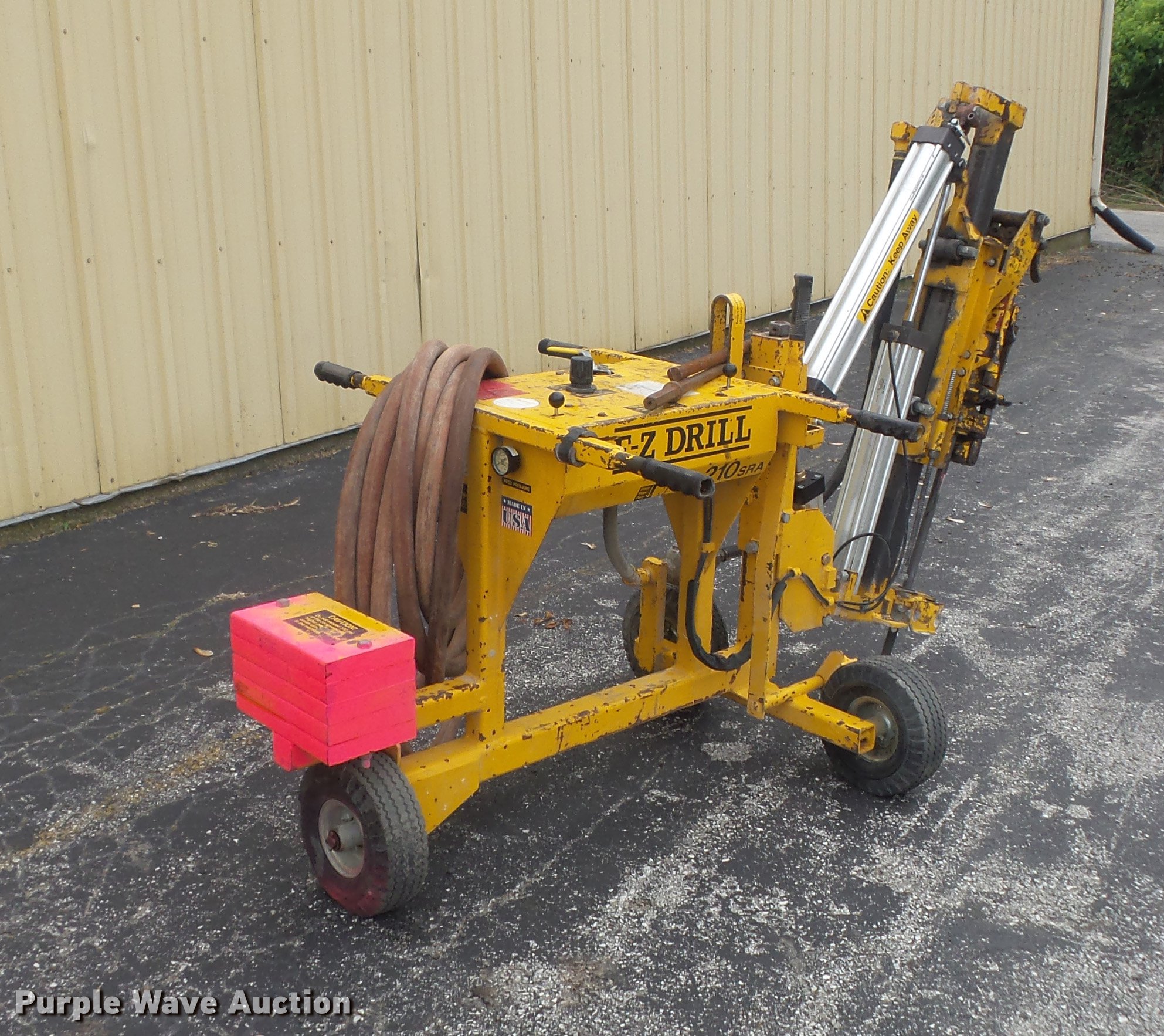 Purple Wave is selling a used Core Drill in Illinois. This item is a E-Z Drill 210 SRA core drill with the following: Pneumatic operation, (3) bits, 7/8" to 3 1/4" chuck, Air line, Fittings, (3) 4.10/3.50-1 tires, Serial K1396