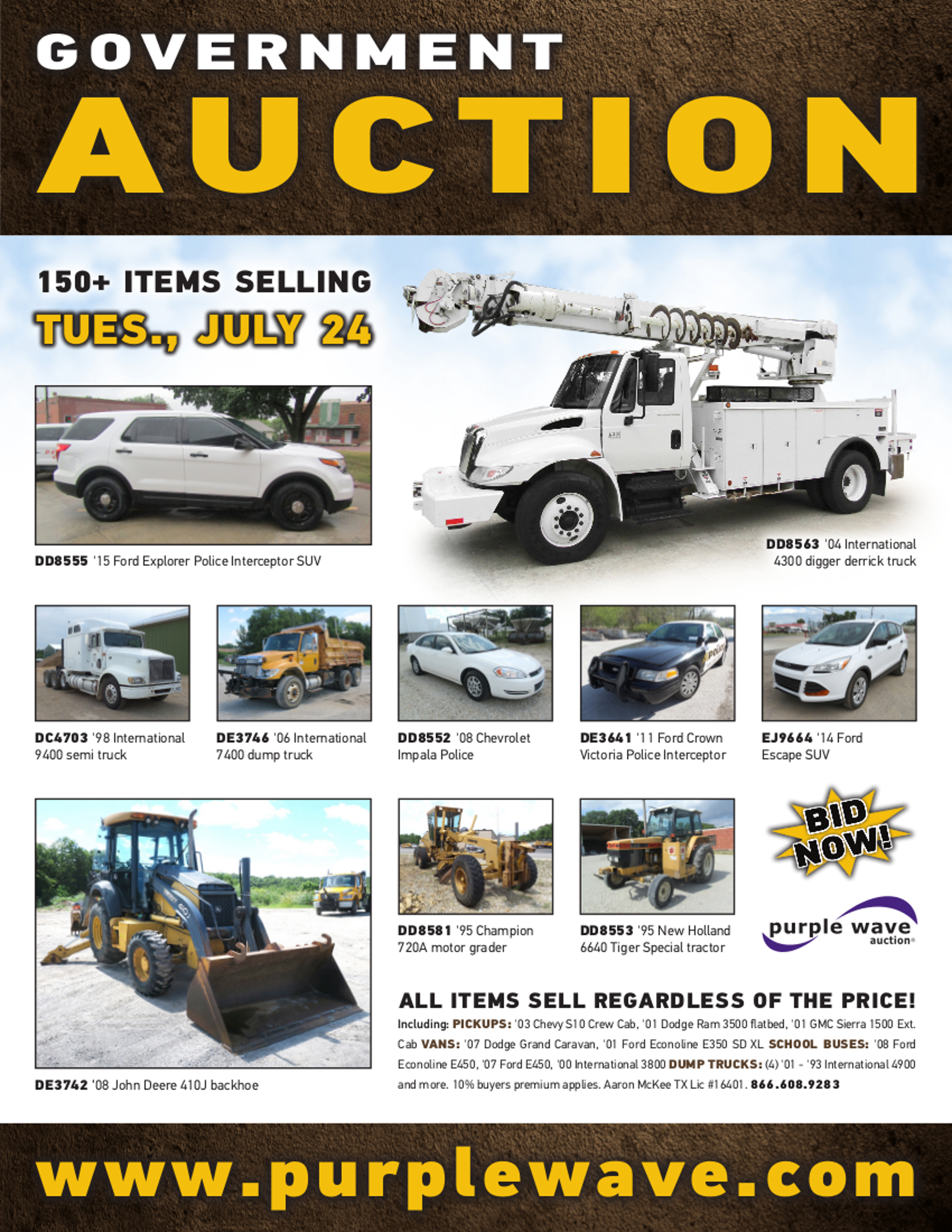 72 hour auction transport permits are available for assets sold from Kansas locations. Buyers must provide proof of insurance and $3 prior to issuing. Purple Wave will only provide one permit per asset. Buyers purchasing titled assets outside of Kansas should contact their local DMV for state specific information on transporting vehicles.