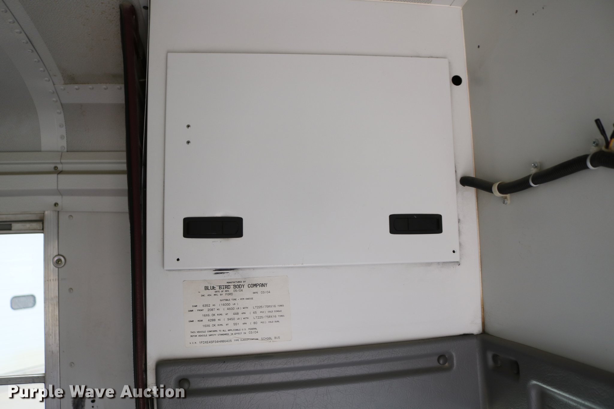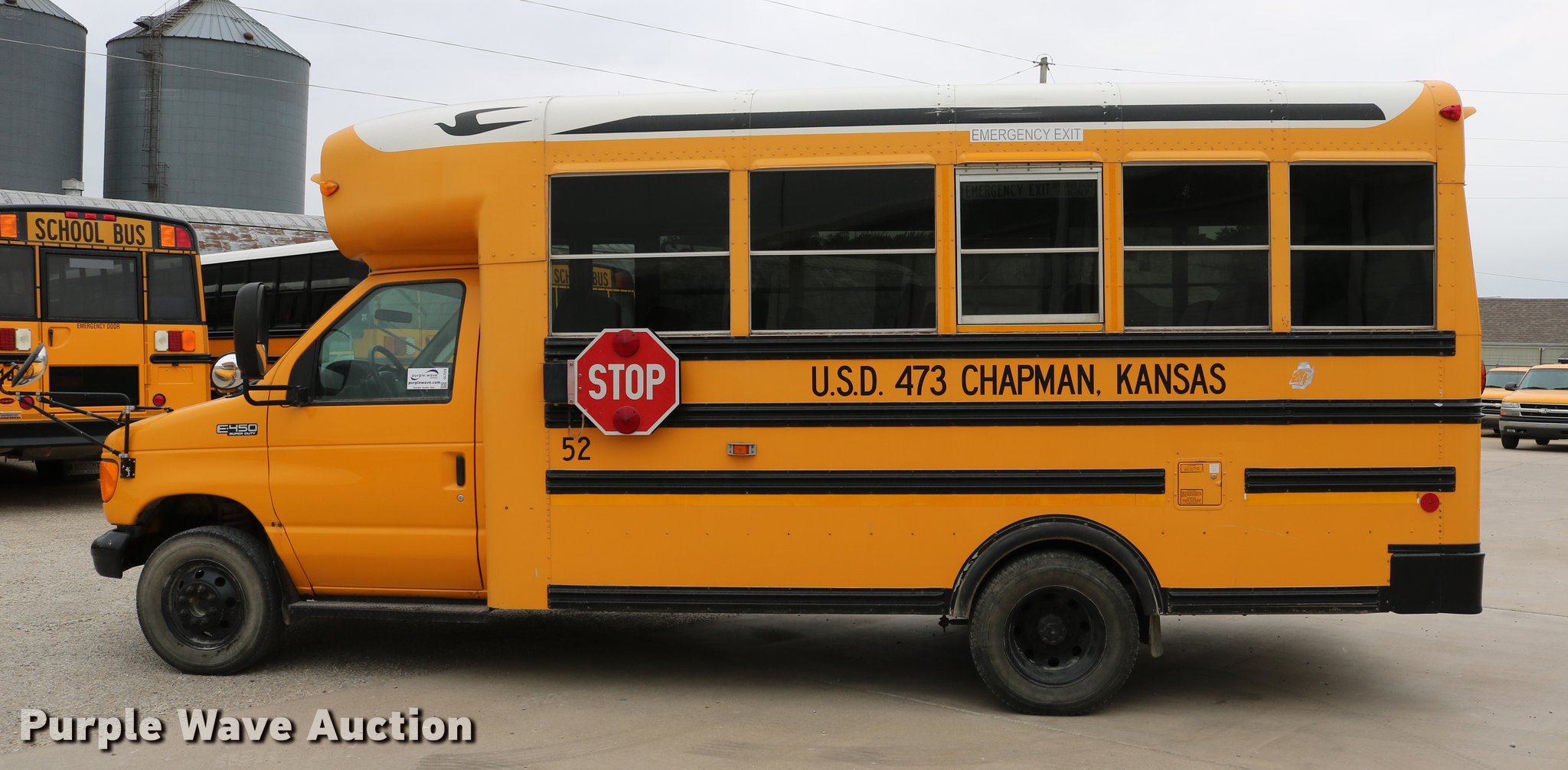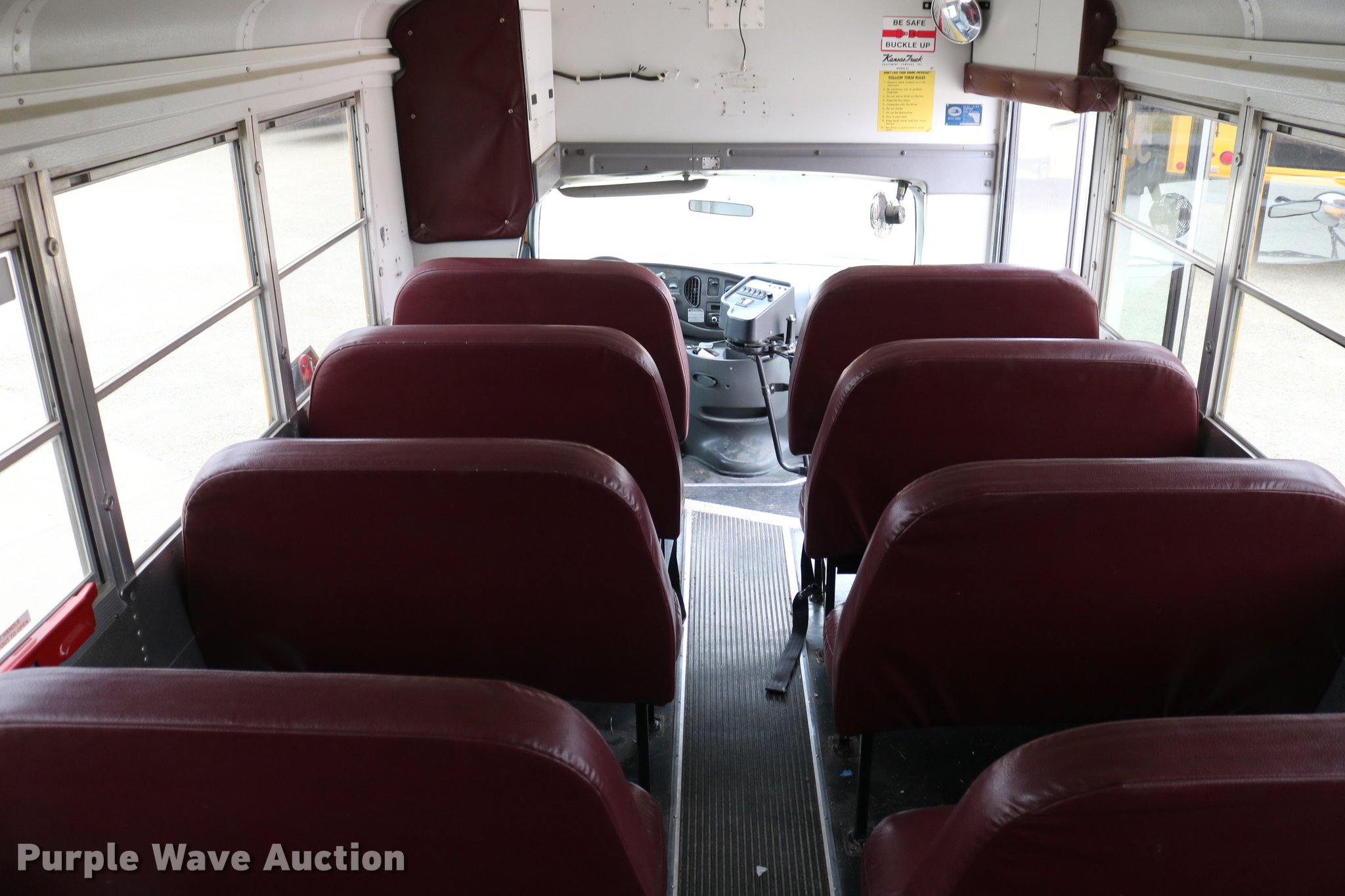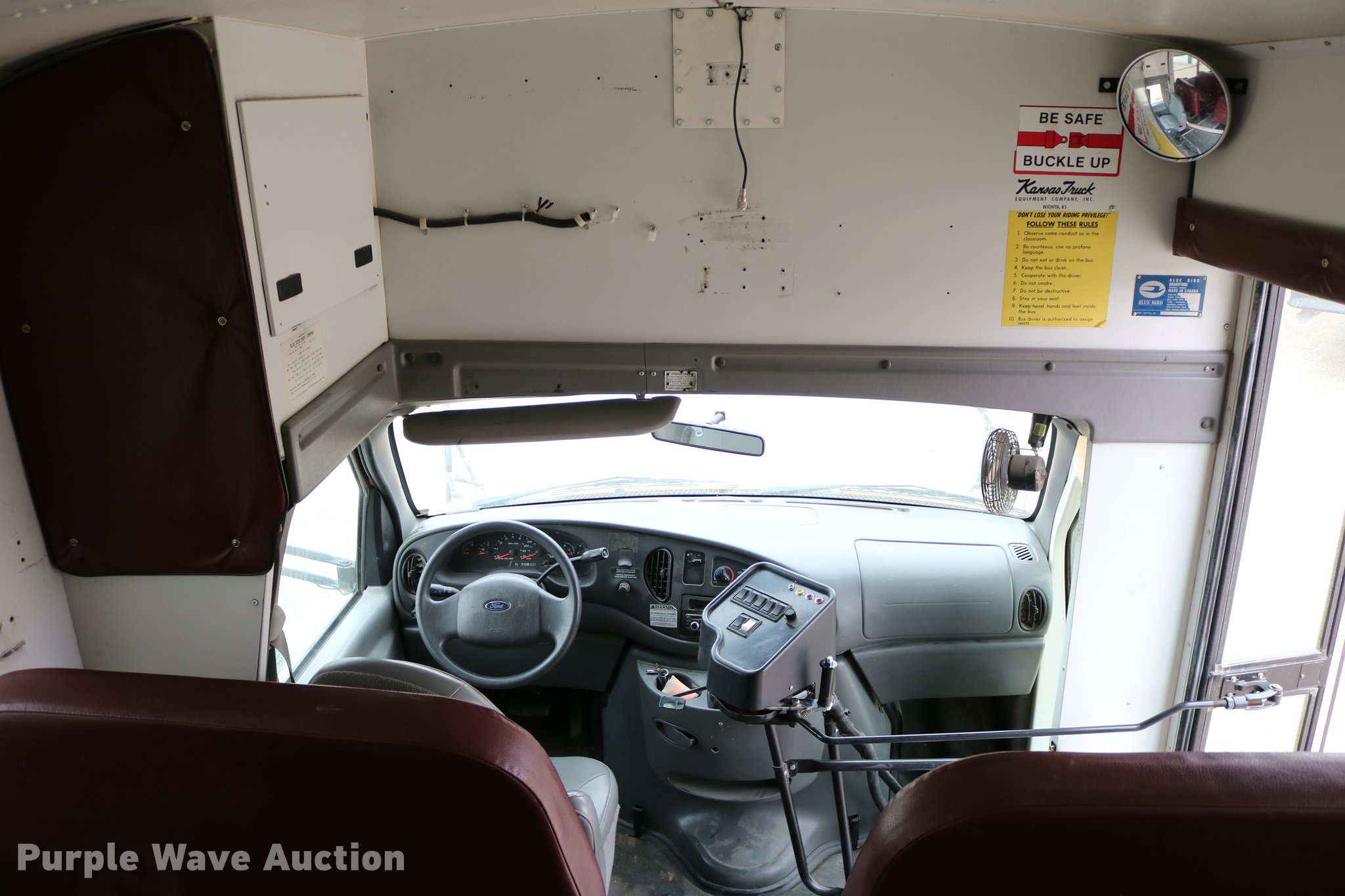 Purple Wave is selling a used Bus in Kansas. This item is a 2004 Ford E450 Blue Bird school bus with the following: 238,270 miles on odometer, 6.0L V8 OHV 32V turbo diesel engine, Automatic transmission, Single axle, AC and heat, Heated mirrors, Auxiliary controls, 29 passenger capacity, Seat belts in front row seats, Ceiling, rear, and side emergency exits, Emergency door alarms, Lighted stop sign, Block heater, Spring suspension, Hydraulic brakes, 158" wheelbase, 225/75R16 tires, Engine issues