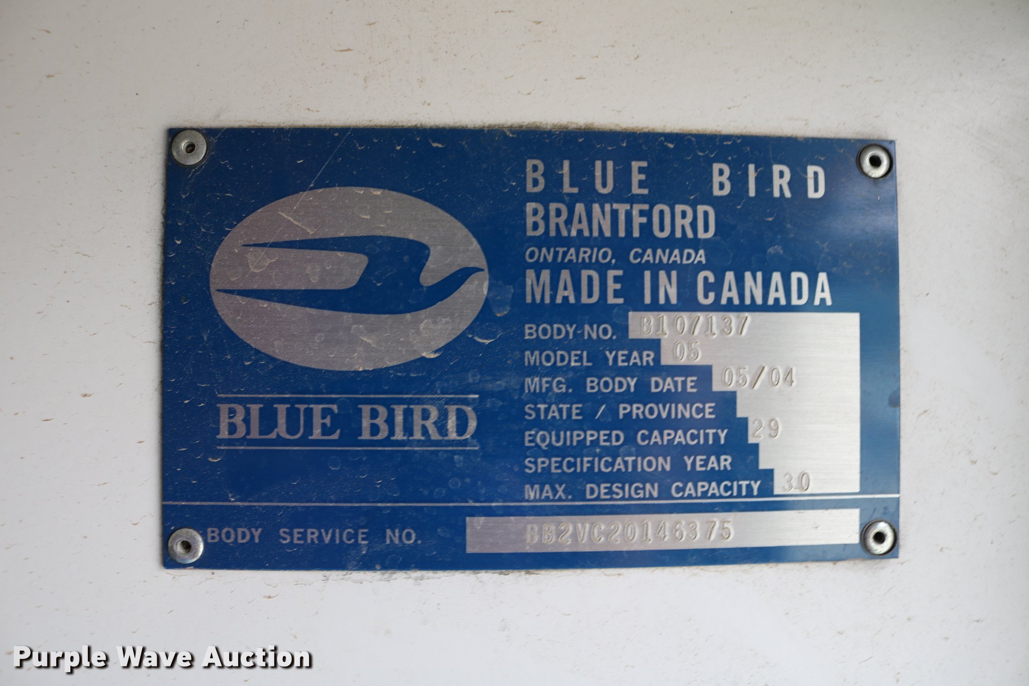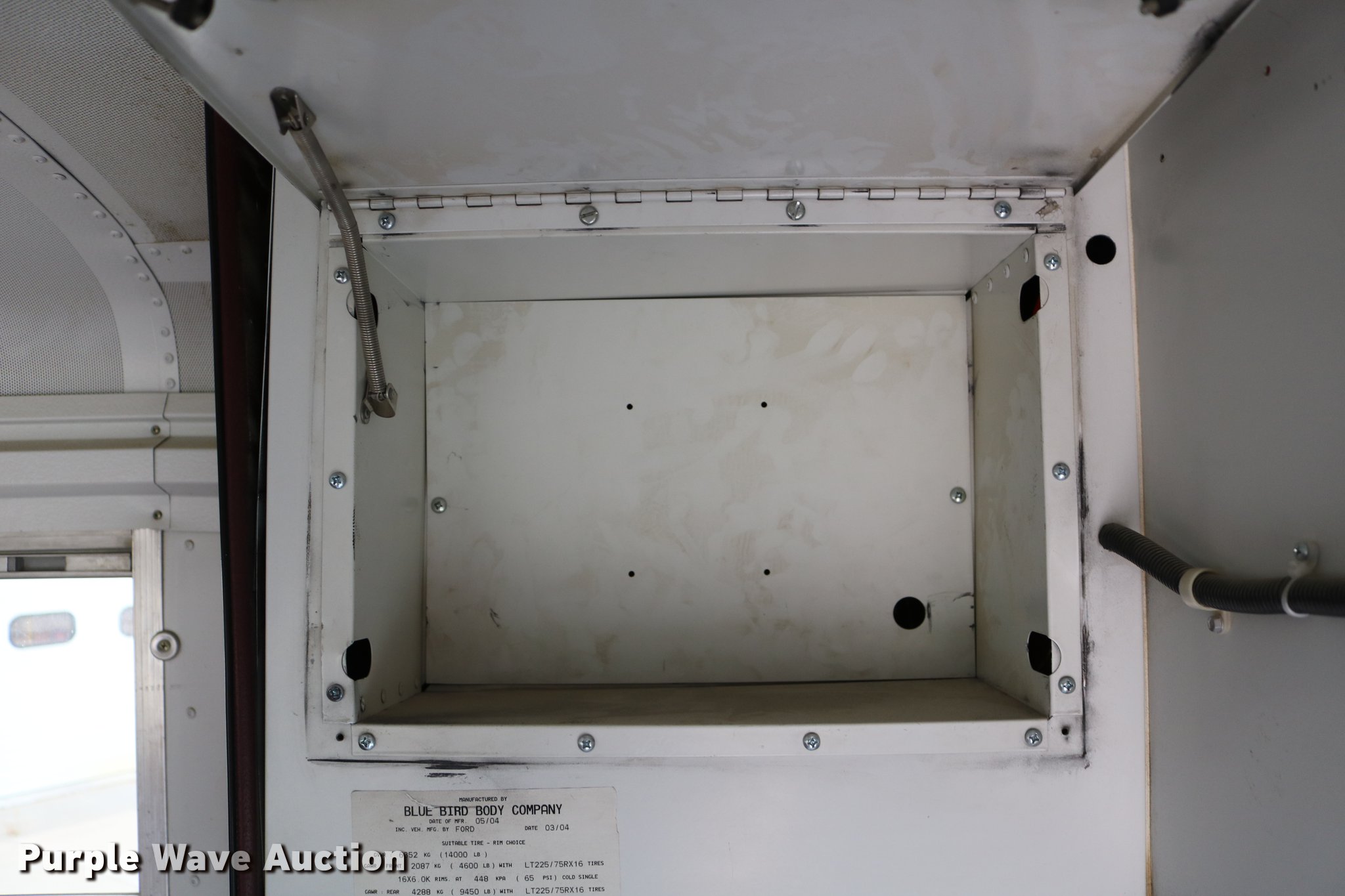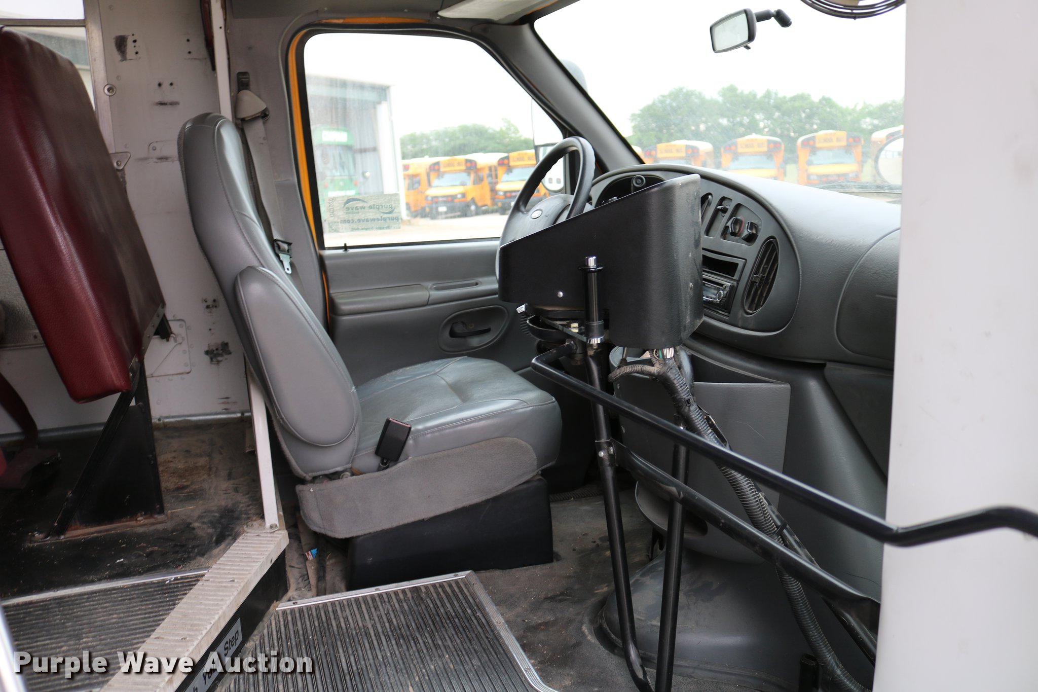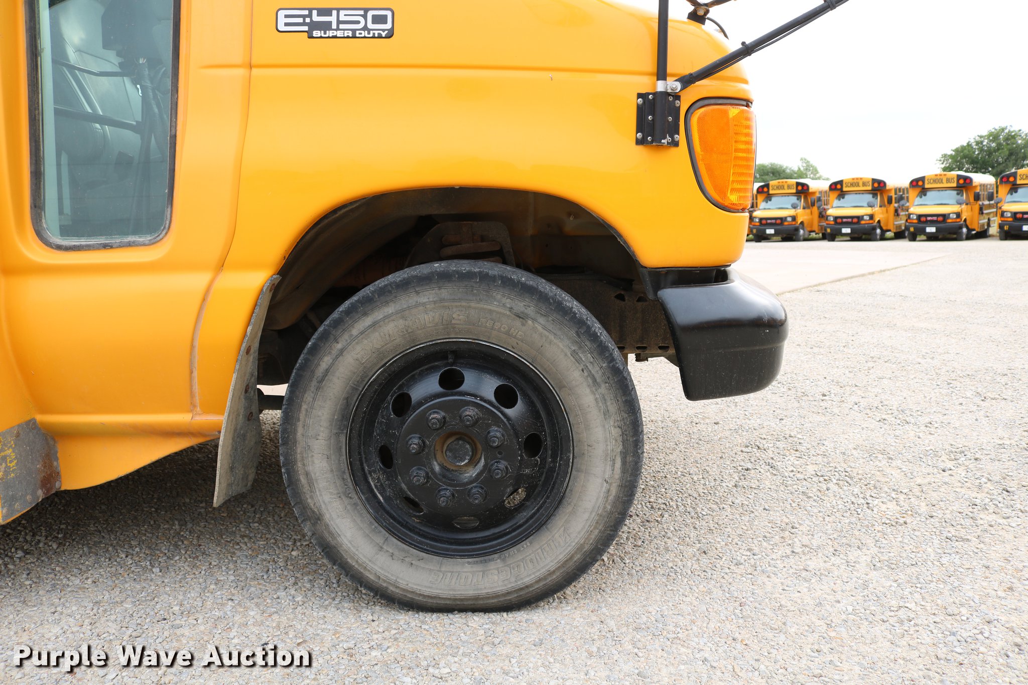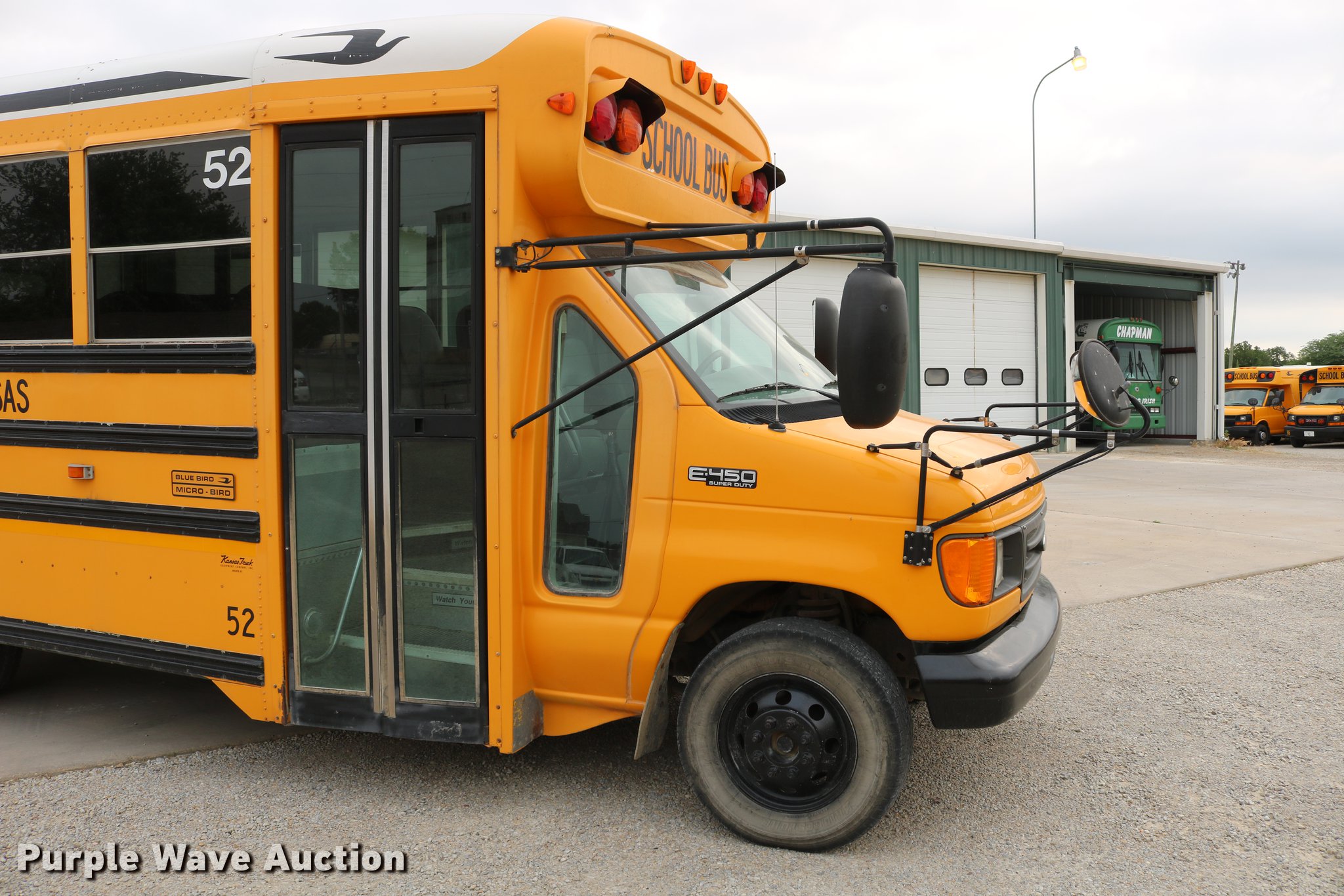 Purple Wave is selling a used Bus in Kansas. This item is a 2004 Ford E450 Blue Bird school bus with the following: 238,270 miles on odometer, 6.0L V8 OHV 32V turbo diesel engine, Automatic transmission, Single axle, AC and heat, Heated mirrors, Auxiliary controls, 29 passenger capacity, Seat belts in front row seats, Ceiling, rear, and side emergency exits, Emergency door alarms, Lighted stop sign, Block heater, Spring suspension, Hydraulic brakes, 158" wheelbase, 225/75R16 tires, Engine issues