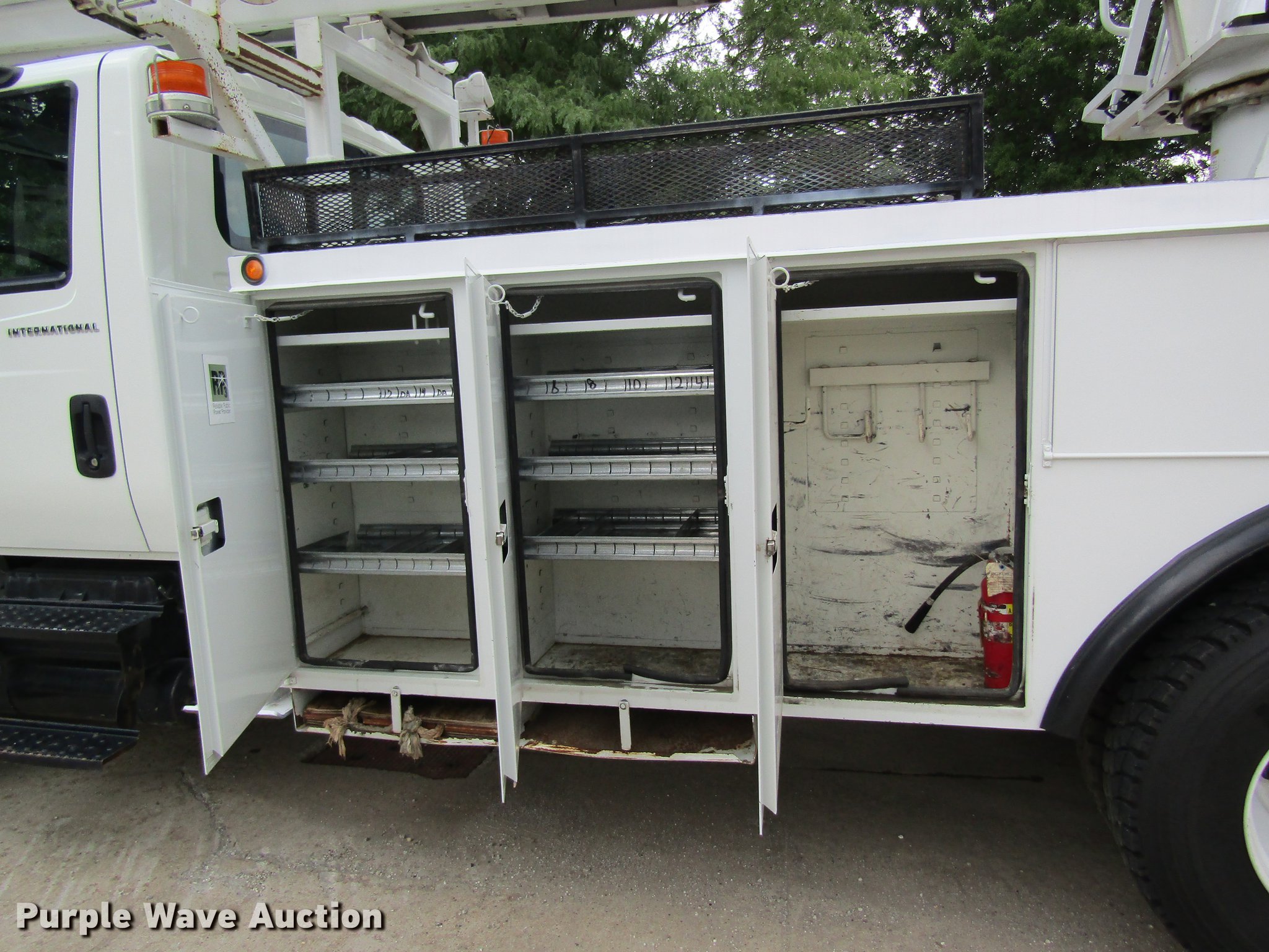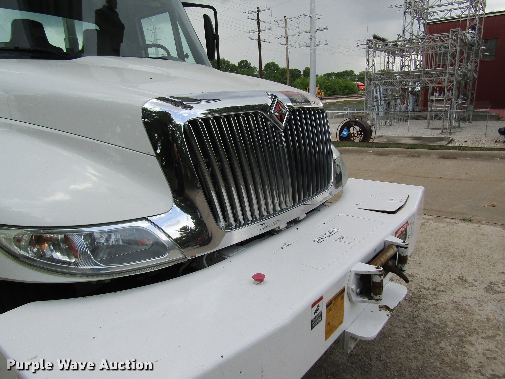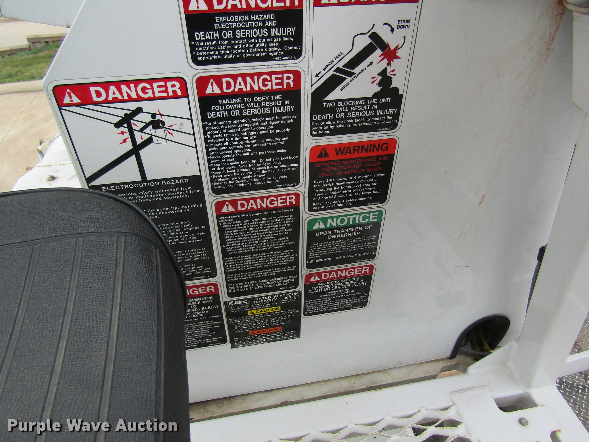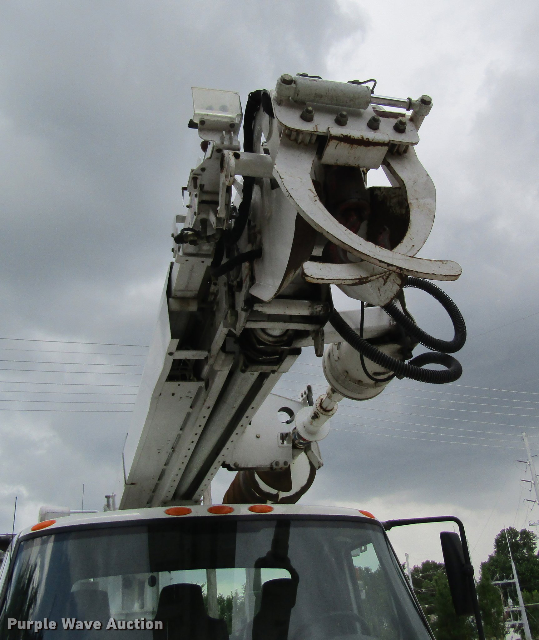 Purple Wave is selling a used Digger Derrick Truck in Missouri. This item is a 2004 International 4300 digger derrick truck with the following: 34,506 miles on odometer, 4,043 hours on meter, International DT466 7.6L L6 turbo diesel engine, Automatic transmission, Single axle, AC and heat, Cruise, AM/FM, Suspension seat, Beacon light, PTO, Altec service bed, 15'L, Shelving, Braden winch, Serial 372164228, Altec DM47 digger derrick, 12,000 lbs max lift capacity, 47' max lift height, Platform boom controls, Boom rotation, Pole guide, Telescopic boom, 18" diameter auger, Rope material handler, (4) outriggers, Serial 1203DV02631, Single fuel tank, Spring suspension, Air brakes, 11R22.5 tires