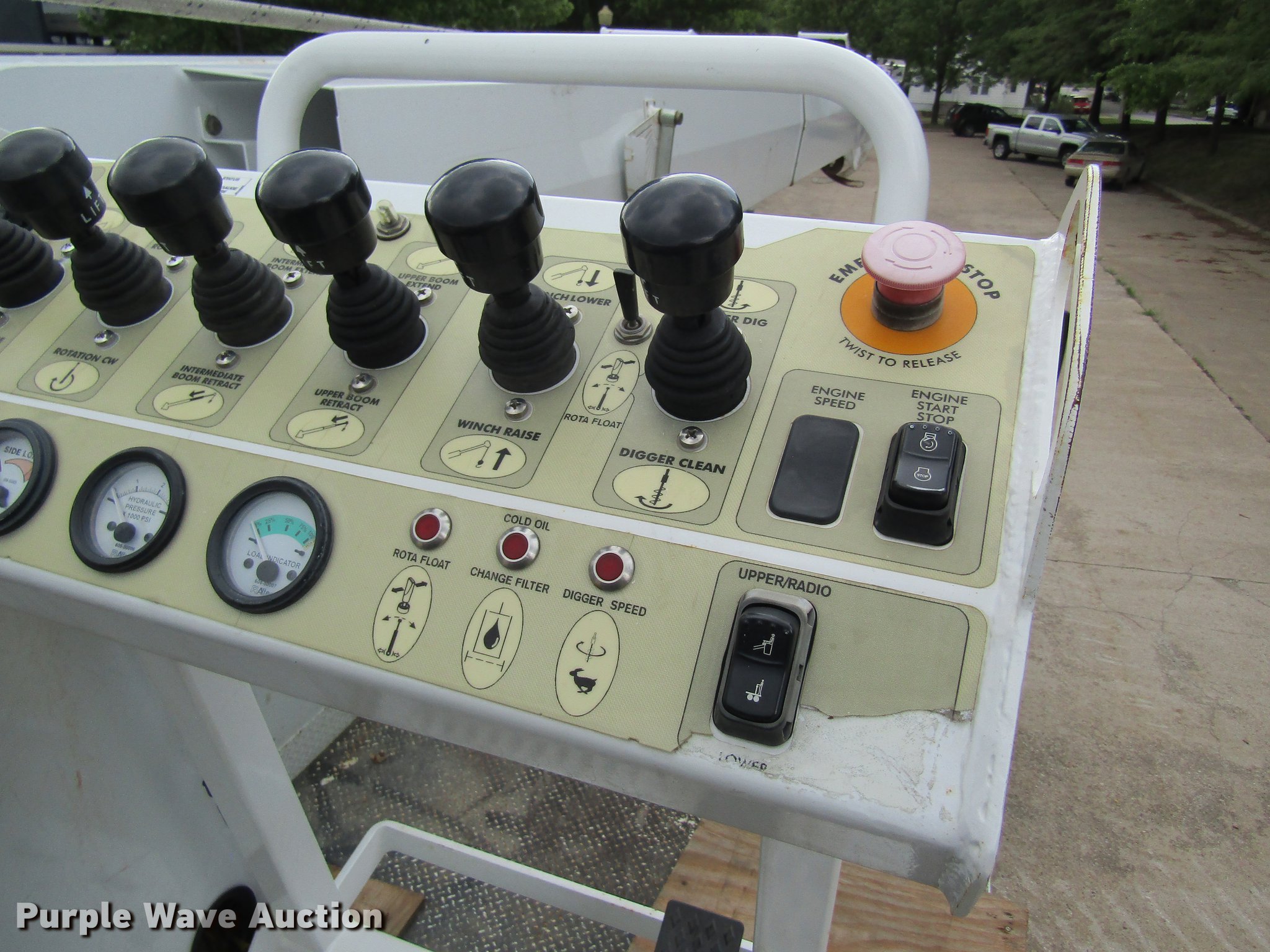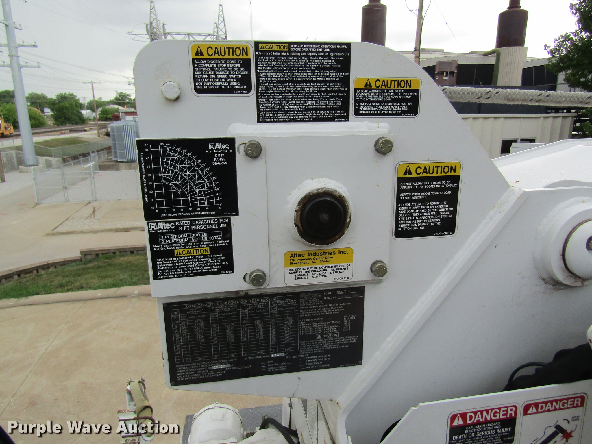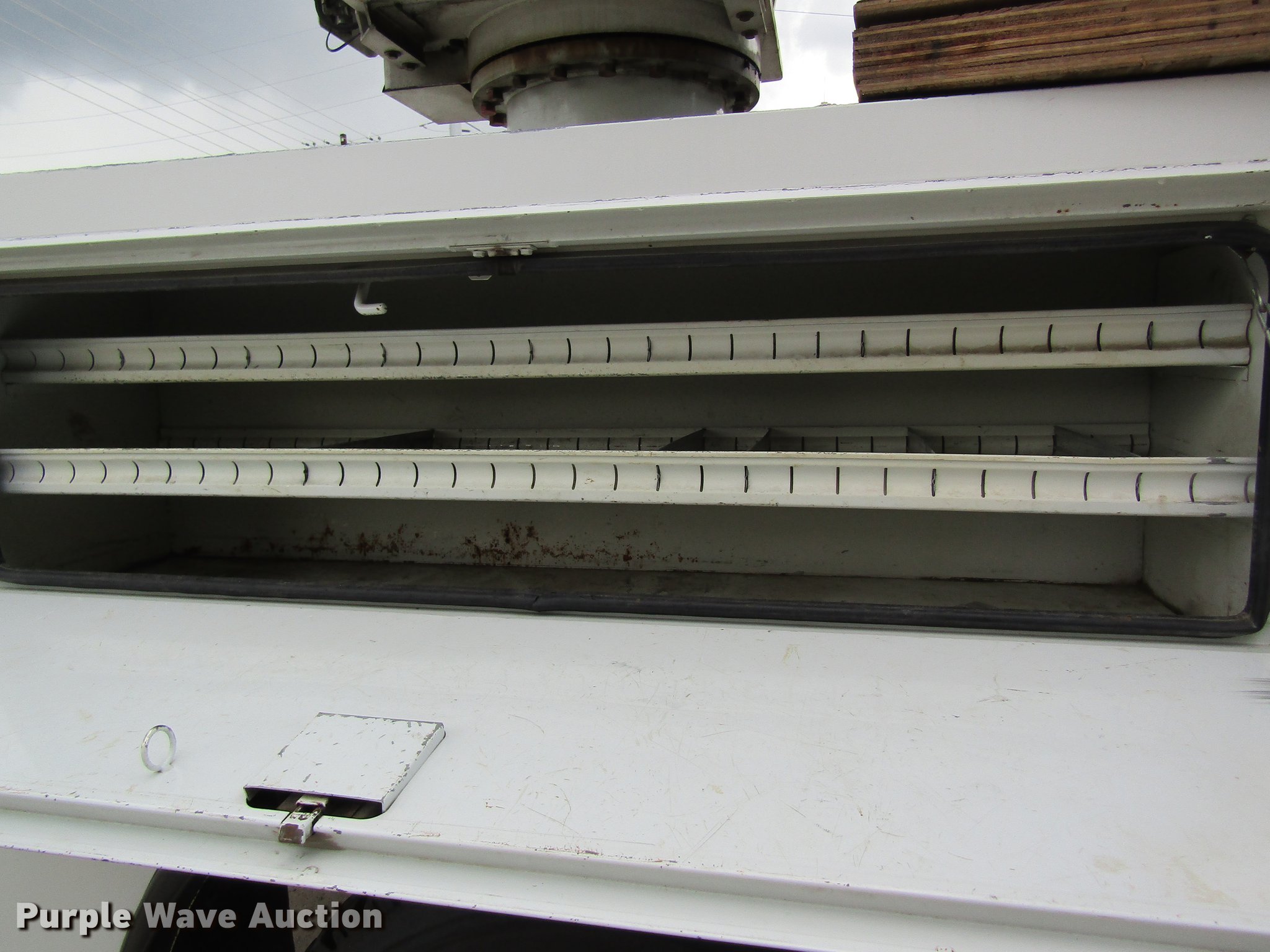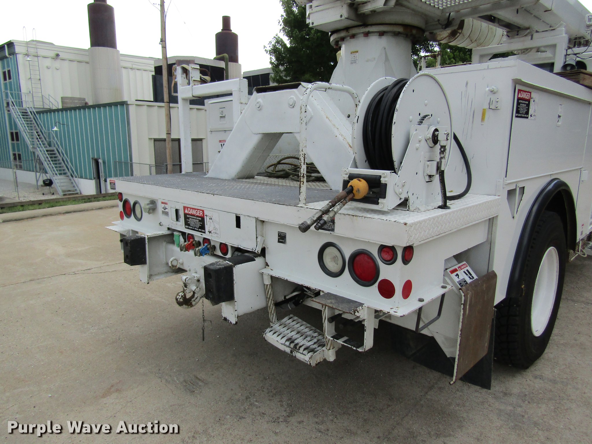 Purple Wave is selling a used Digger Derrick Truck in Missouri. This item is a 2004 International 4300 digger derrick truck with the following: 34,506 miles on odometer, 4,043 hours on meter, International DT466 7.6L L6 turbo diesel engine, Automatic transmission, Single axle, AC and heat, Cruise, AM/FM, Suspension seat, Beacon light, PTO, Altec service bed, 15'L, Shelving, Braden winch, Serial 372164228, Altec DM47 digger derrick, 12,000 lbs max lift capacity, 47' max lift height, Platform boom controls, Boom rotation, Pole guide, Telescopic boom, 18" diameter auger, Rope material handler, (4) outriggers, Serial 1203DV02631, Single fuel tank, Spring suspension, Air brakes, 11R22.5 tires