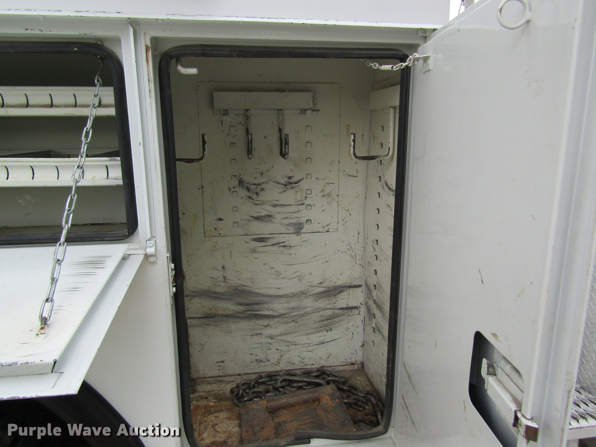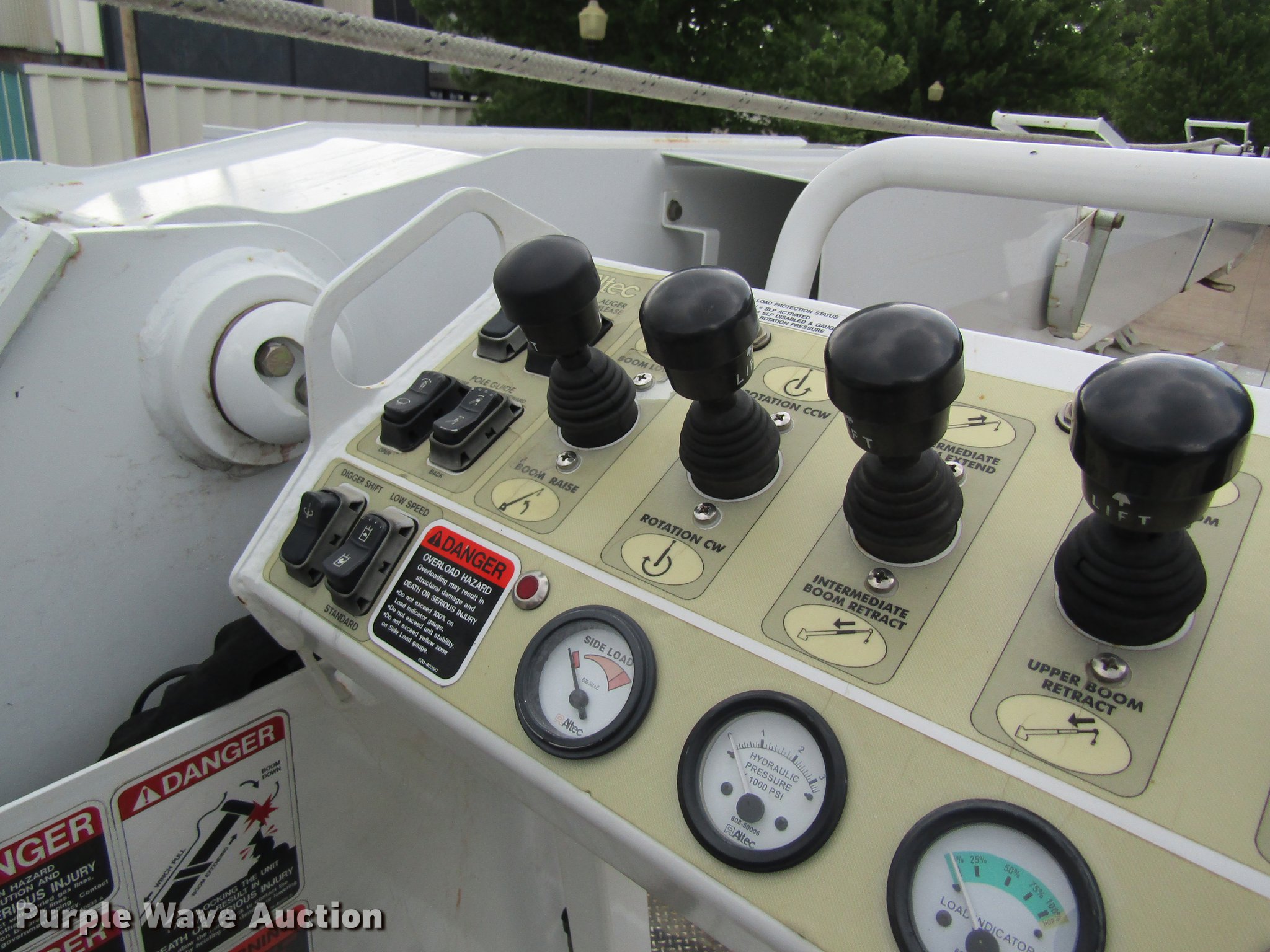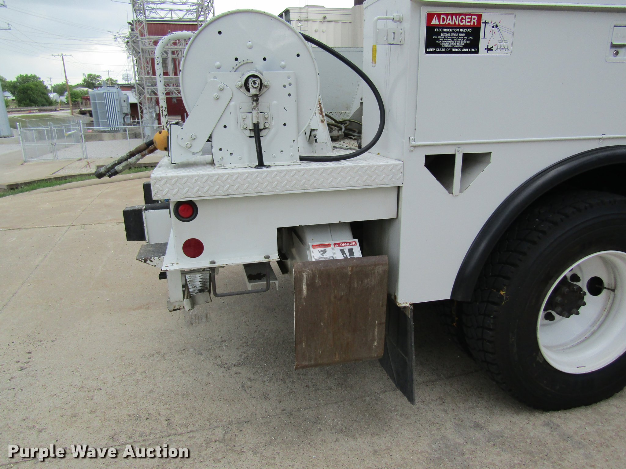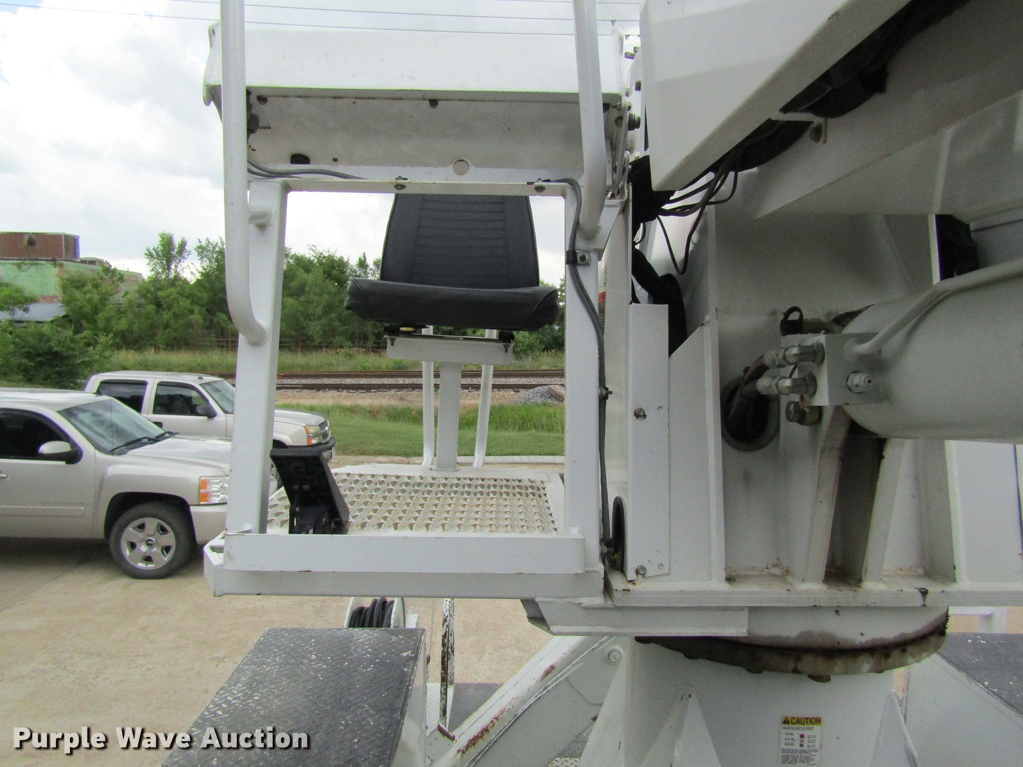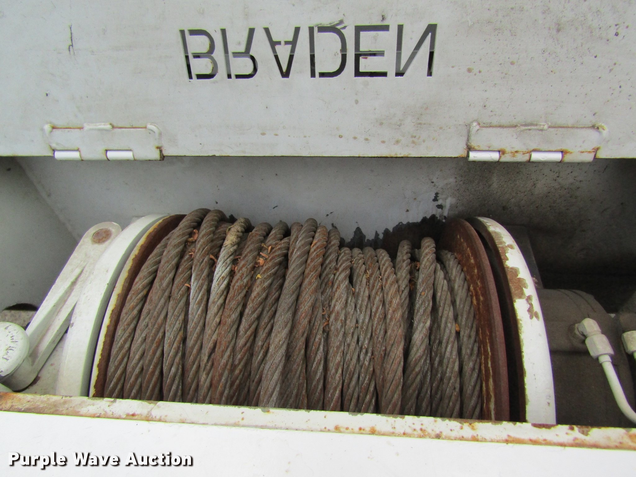 Purple Wave is selling a used Digger Derrick Truck in Missouri. This item is a 2004 International 4300 digger derrick truck with the following: 34,506 miles on odometer, 4,043 hours on meter, International DT466 7.6L L6 turbo diesel engine, Automatic transmission, Single axle, AC and heat, Cruise, AM/FM, Suspension seat, Beacon light, PTO, Altec service bed, 15'L, Shelving, Braden winch, Serial 372164228, Altec DM47 digger derrick, 12,000 lbs max lift capacity, 47' max lift height, Platform boom controls, Boom rotation, Pole guide, Telescopic boom, 18" diameter auger, Rope material handler, (4) outriggers, Serial 1203DV02631, Single fuel tank, Spring suspension, Air brakes, 11R22.5 tires