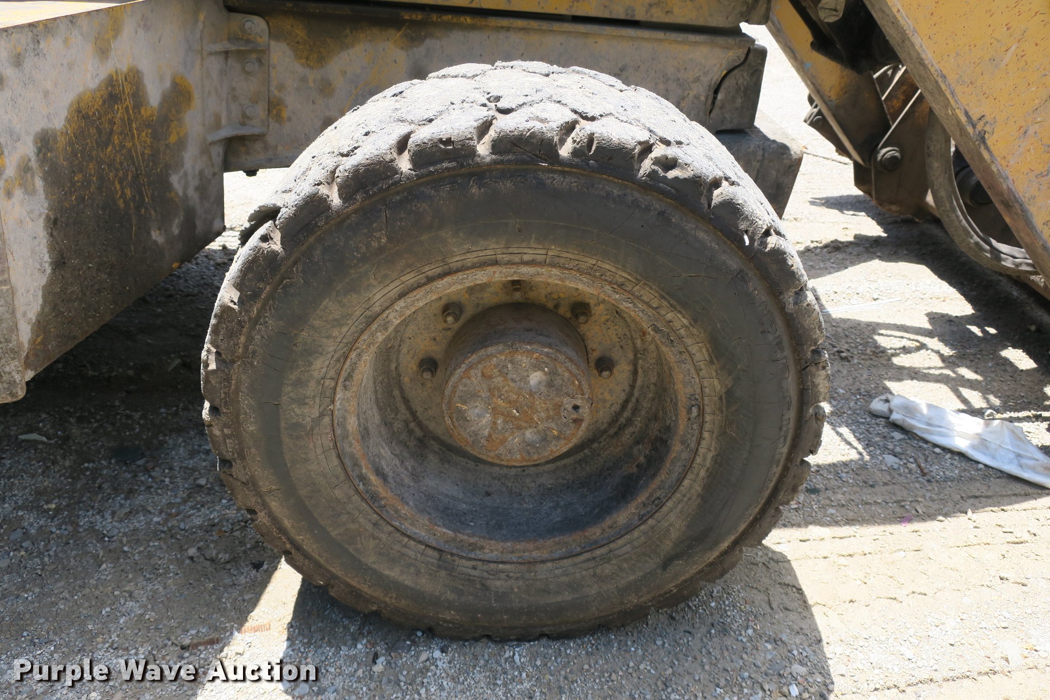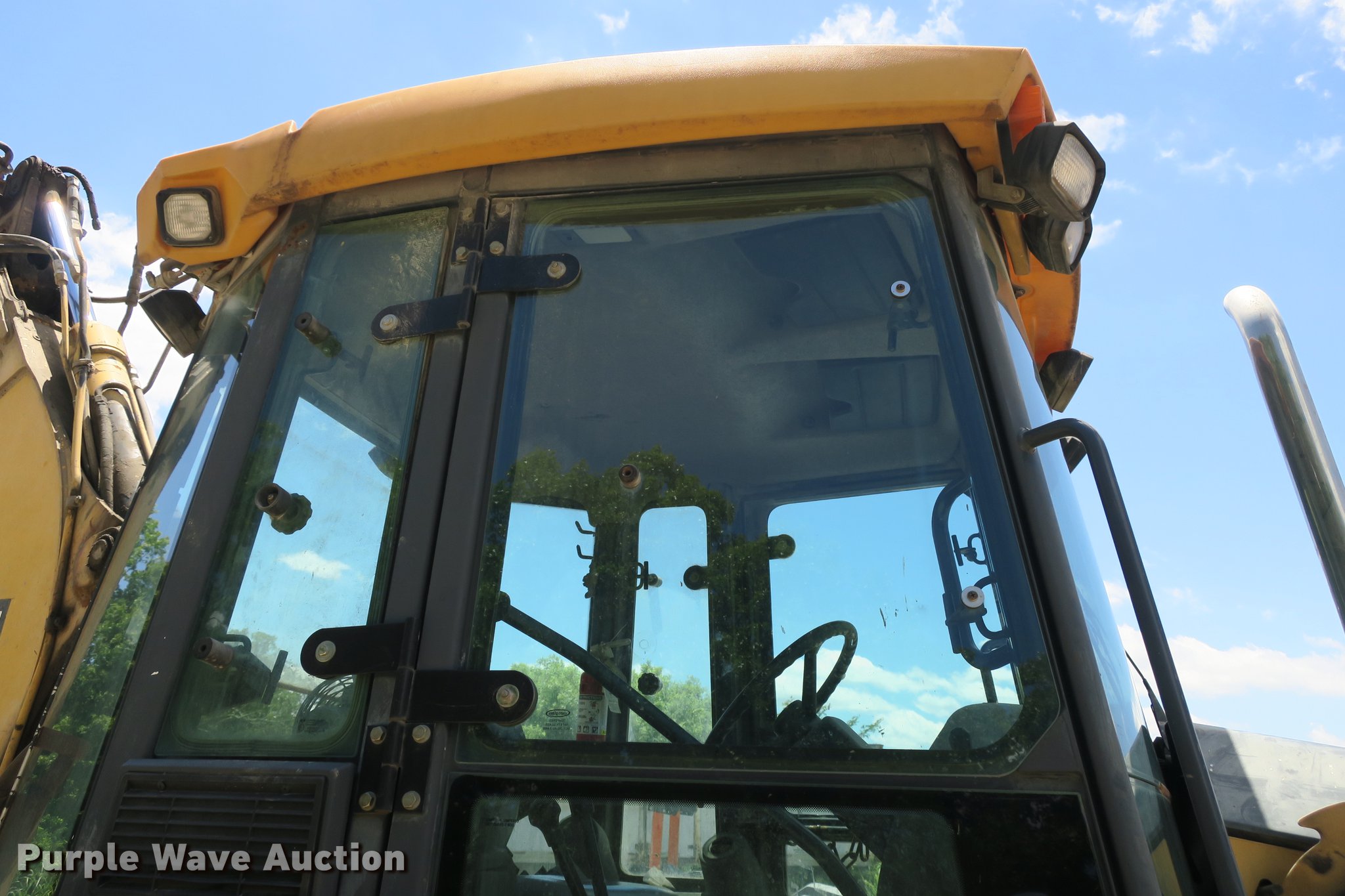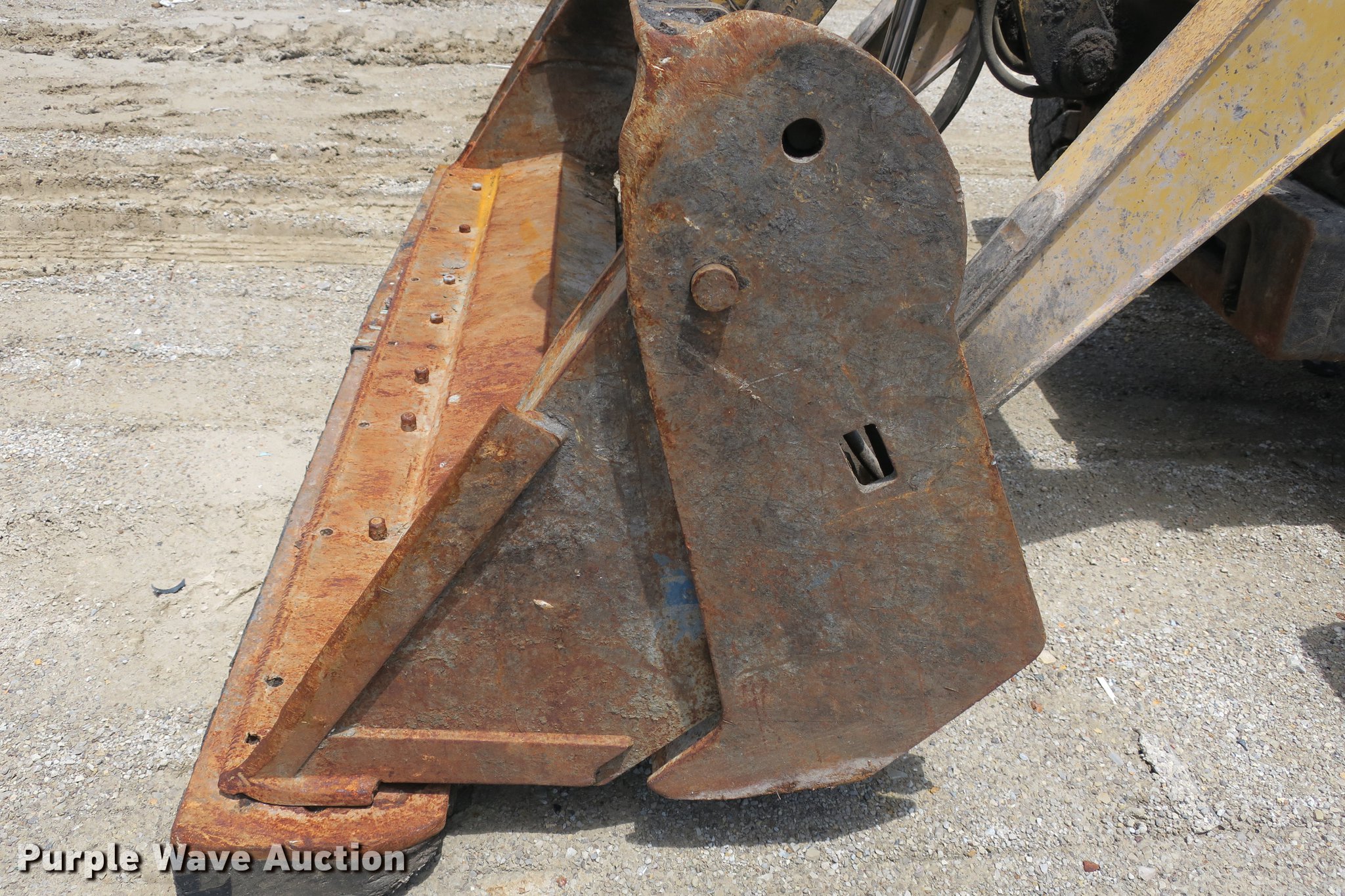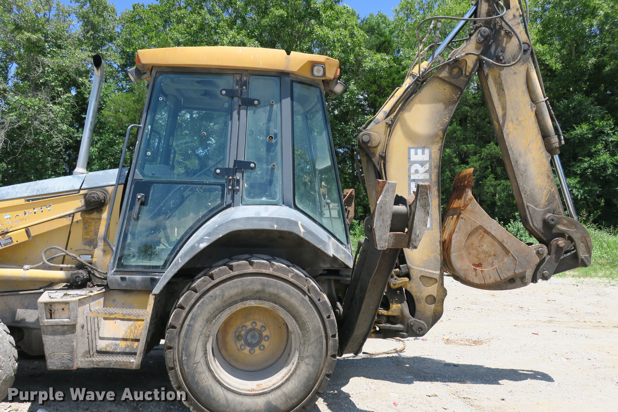 Purple Wave is selling a used Tractor Loader Backhoe in Missouri. This item is a 2003 John Deere 410G backhoe with the following: Unknown hours on meter, John Deere 4045TT082 4.5L four cylinder turbo diesel engine, Powershift transmission, 4F-4R gears, Four wheel drive, Differential lock, EROPS, Heat, AM/FM, Suspension seat, Wobble stick backhoe controls, Front and rear work lights, 84"W loader bucket, 1.25 cu. yd. capacity, Bolt-on cutting edge, Manual quick coupler, Four-in-one bucket, Extendable stick, 24"W backhoe bucket, Weld-on cutting edge, (5) teeth, Front counter weights, 12.5/80-18 front tires, 19.5-24 rear tires, Non-operational extendable stick, No hydraulic cylinder, Chain welded shut, Serial T0410GX913891
