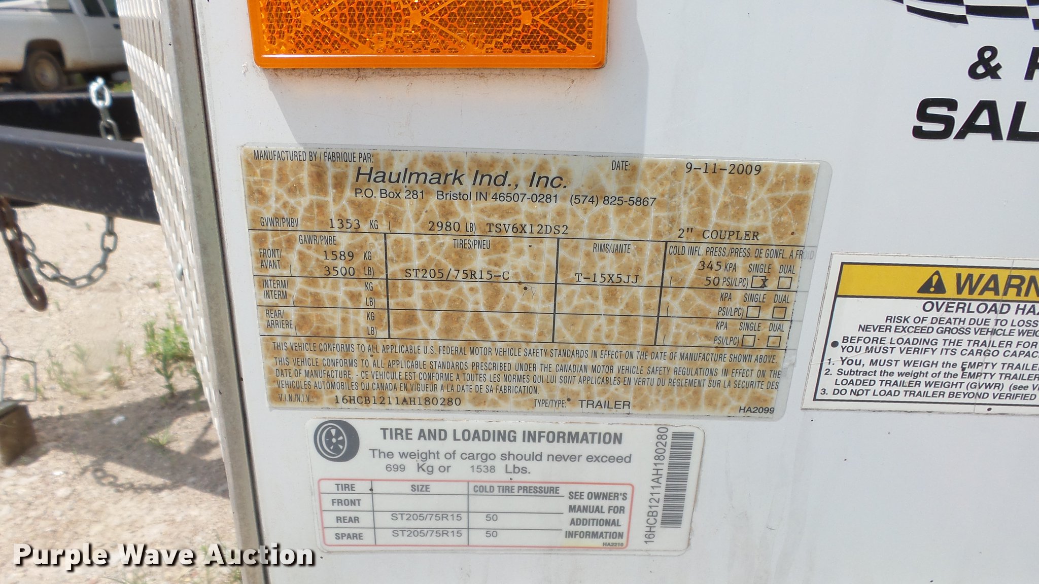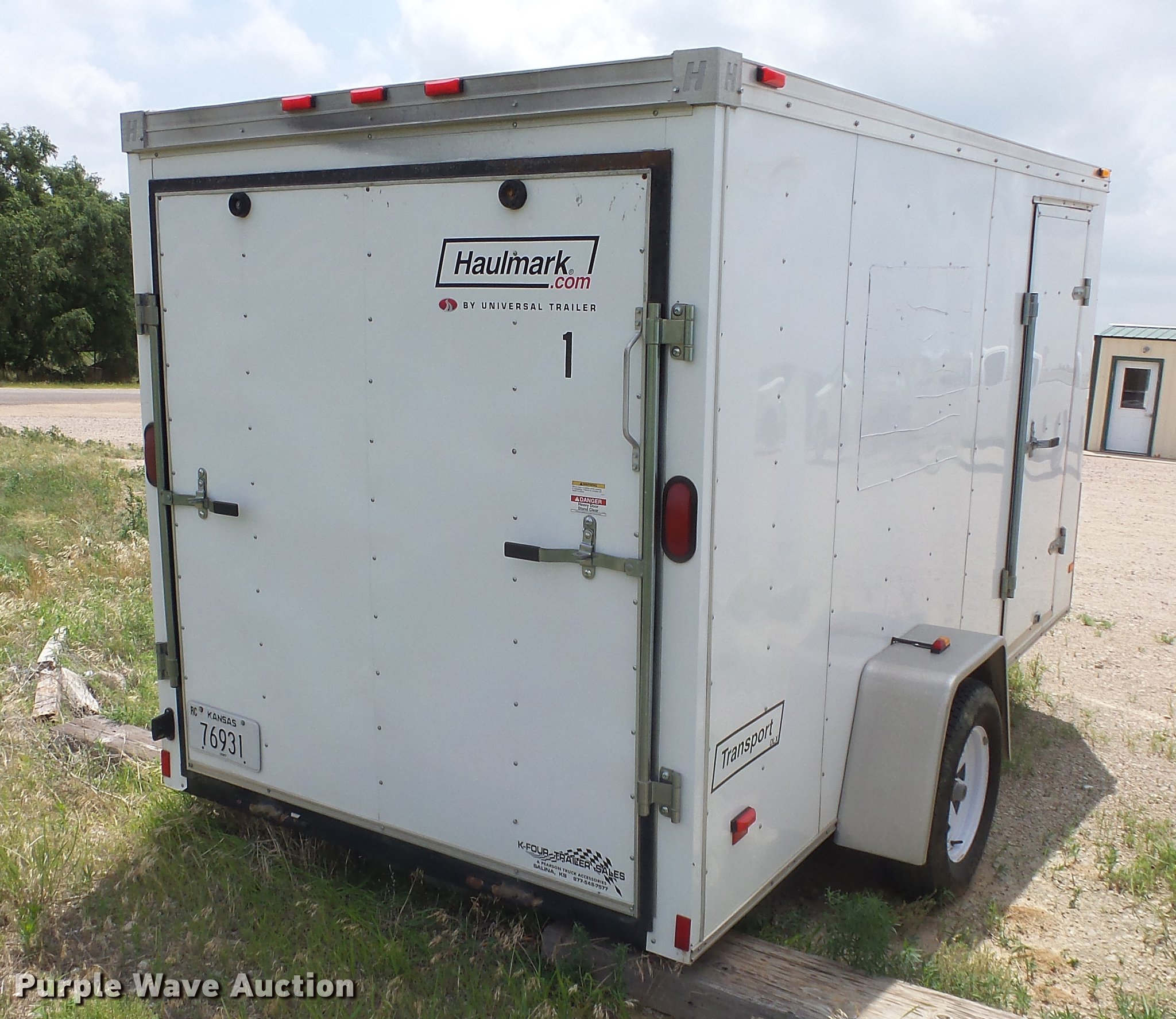 Purple Wave is selling a used Enclosed Cargo Trailer in Kansas. This item is a 2010 Haul Mark enclosed cargo trailer with the following: 13'L x 6'W, Wood floor, Side access door, Rear fold down door, Interior lights, Ball hitch, Spring suspension, Single axle, 205/75R15 tires, Contents not included