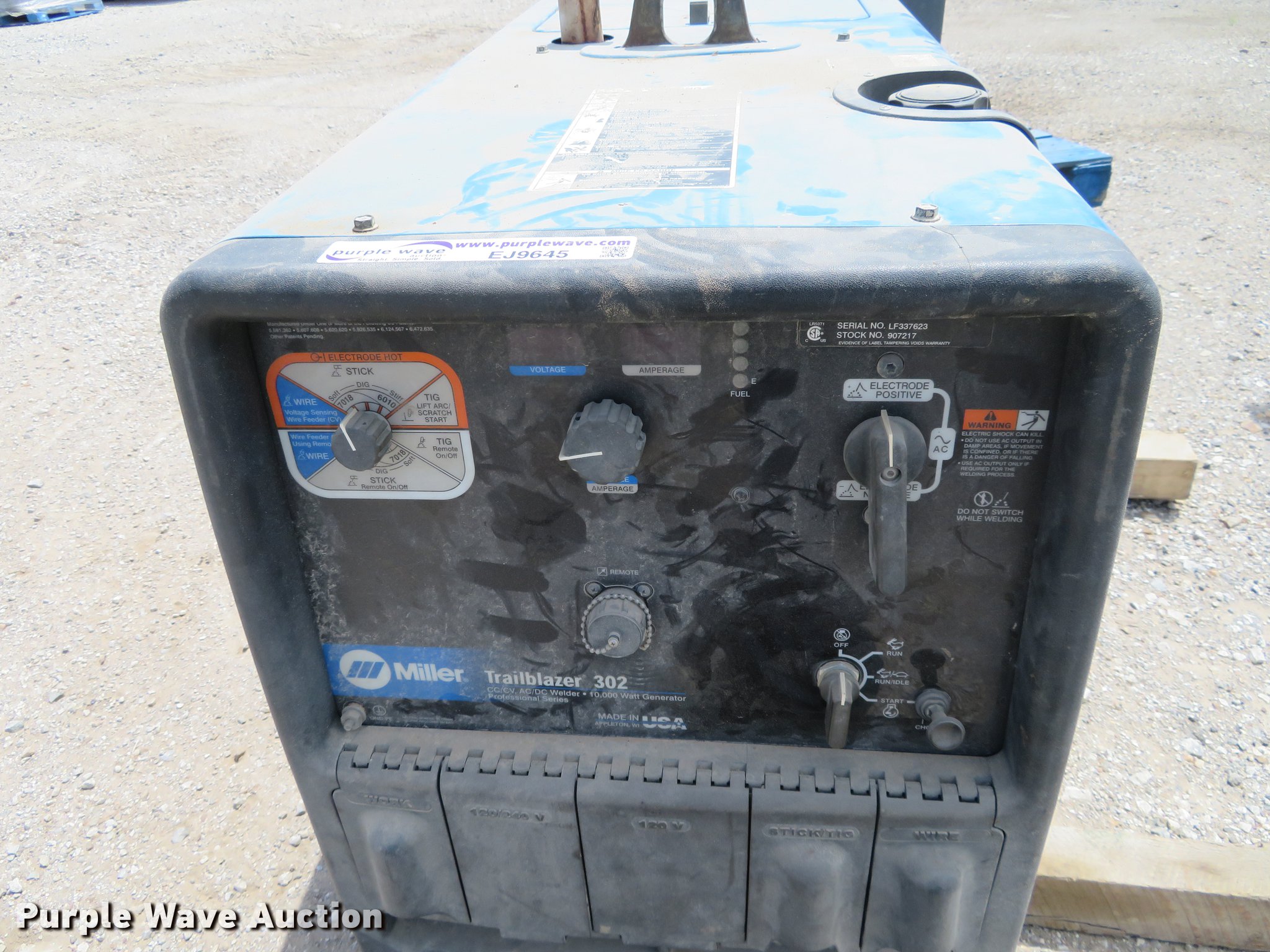 Purple Wave is selling a used Welder (Manual) in Kansas. This item is a Miller Trailblazer 302 welder/generator with the following: Stick, wire feed, and TIG welding, CC/CV, AC/DC, 10,000 watt generator, Serial LF337623